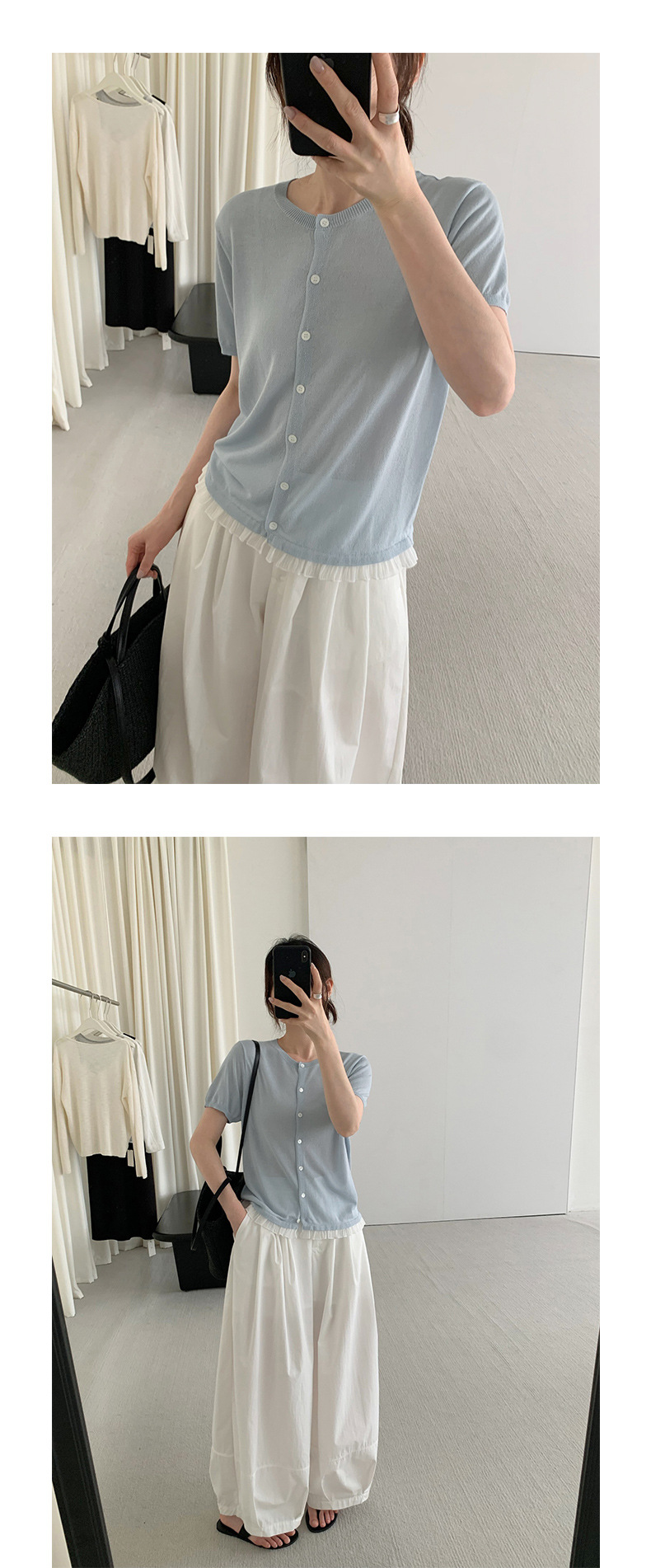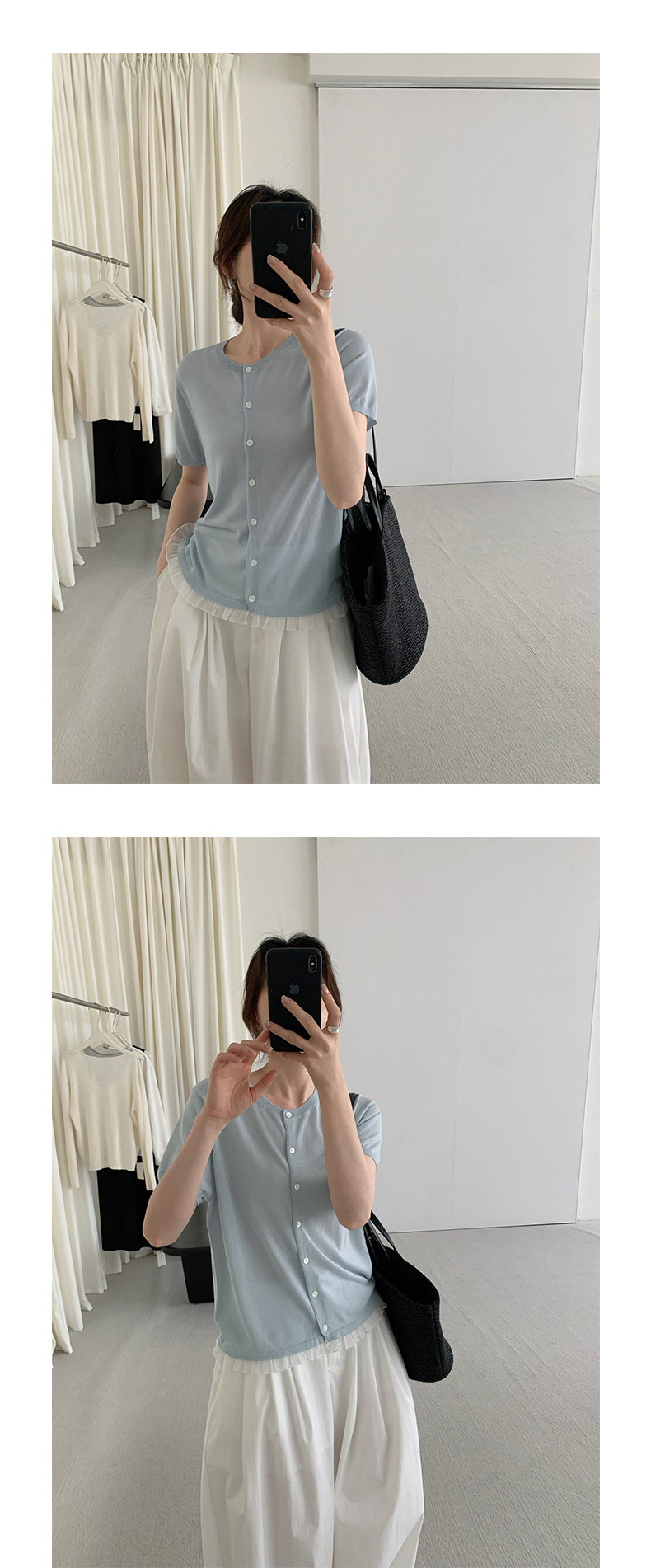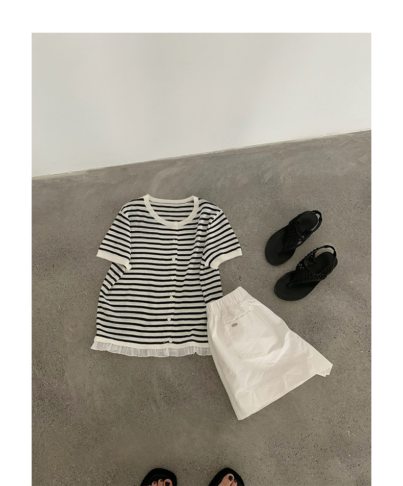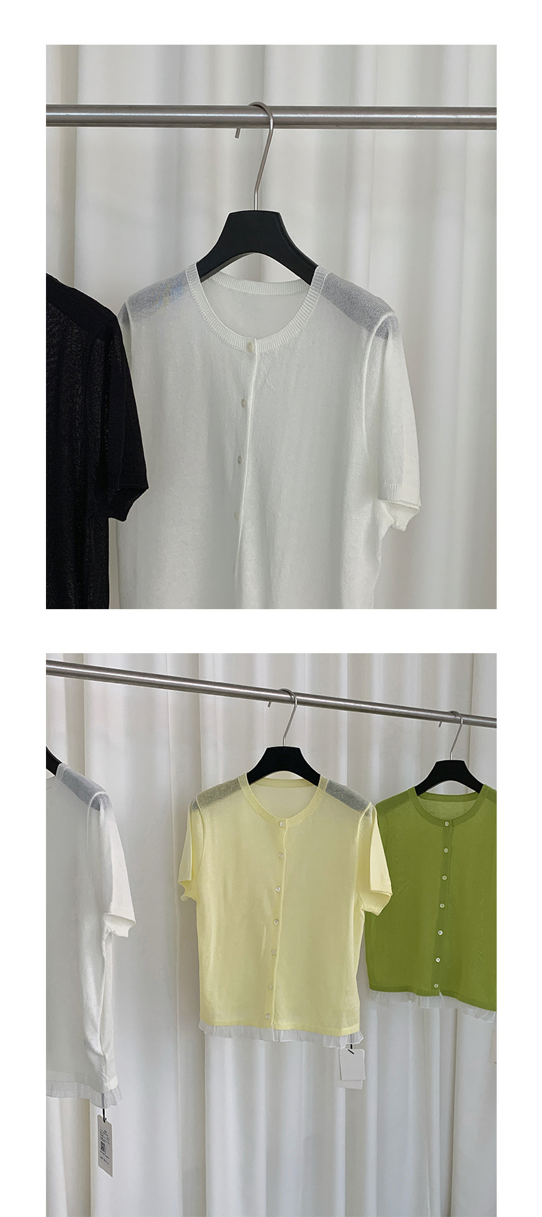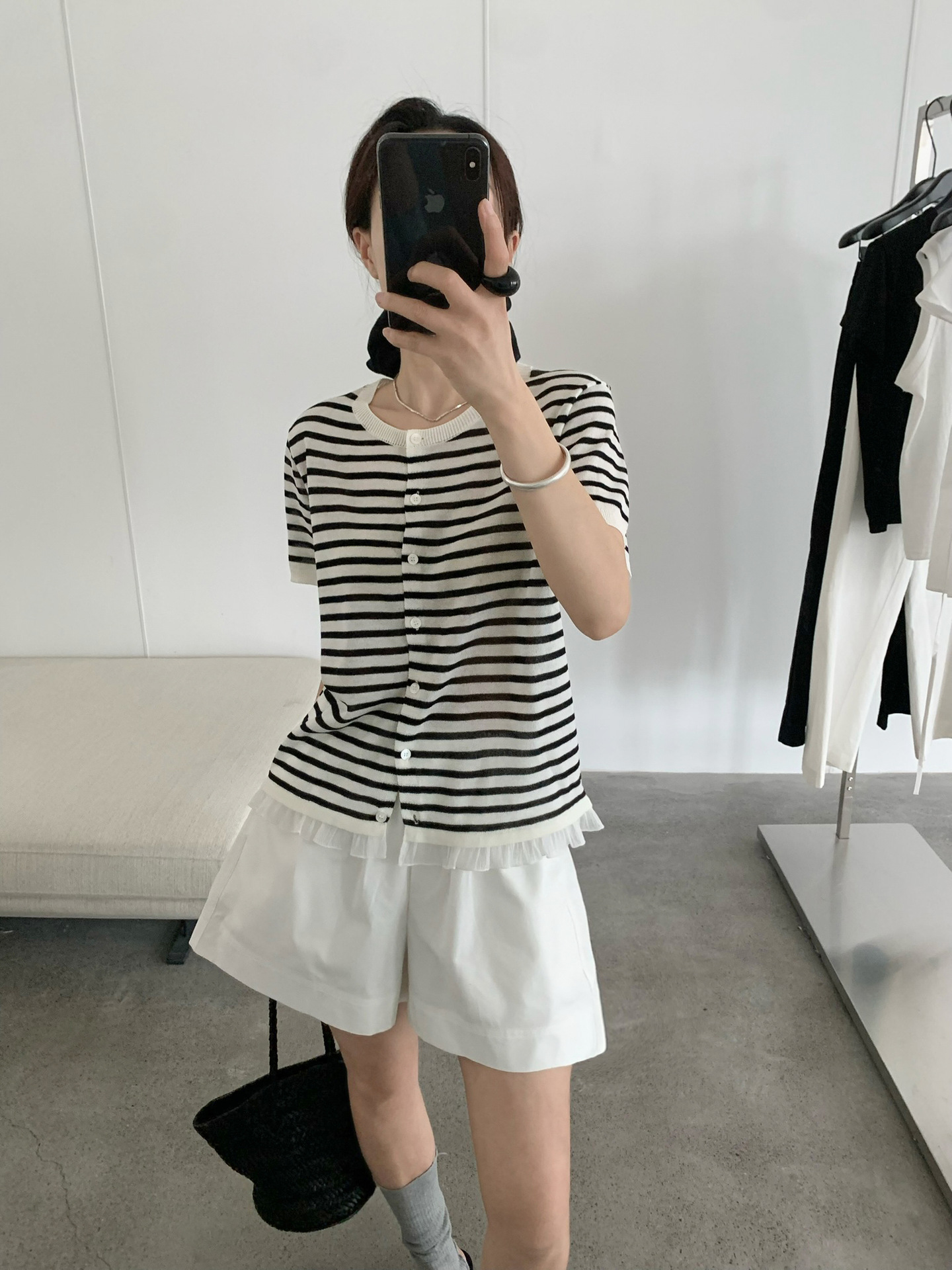 TG 작은 신선한 연꽃 잎 레이스 스티칭 싱글 브레스트 스웨터 여성의 2025 년 여름 새로운 짧은 소매 탑 24858스토어 가기