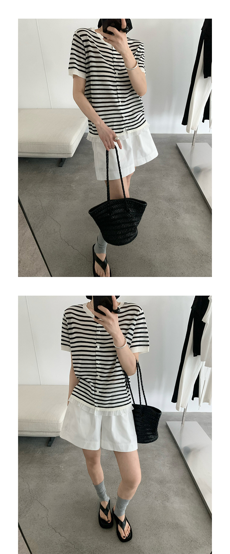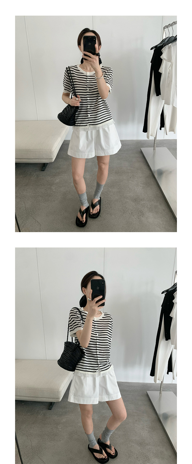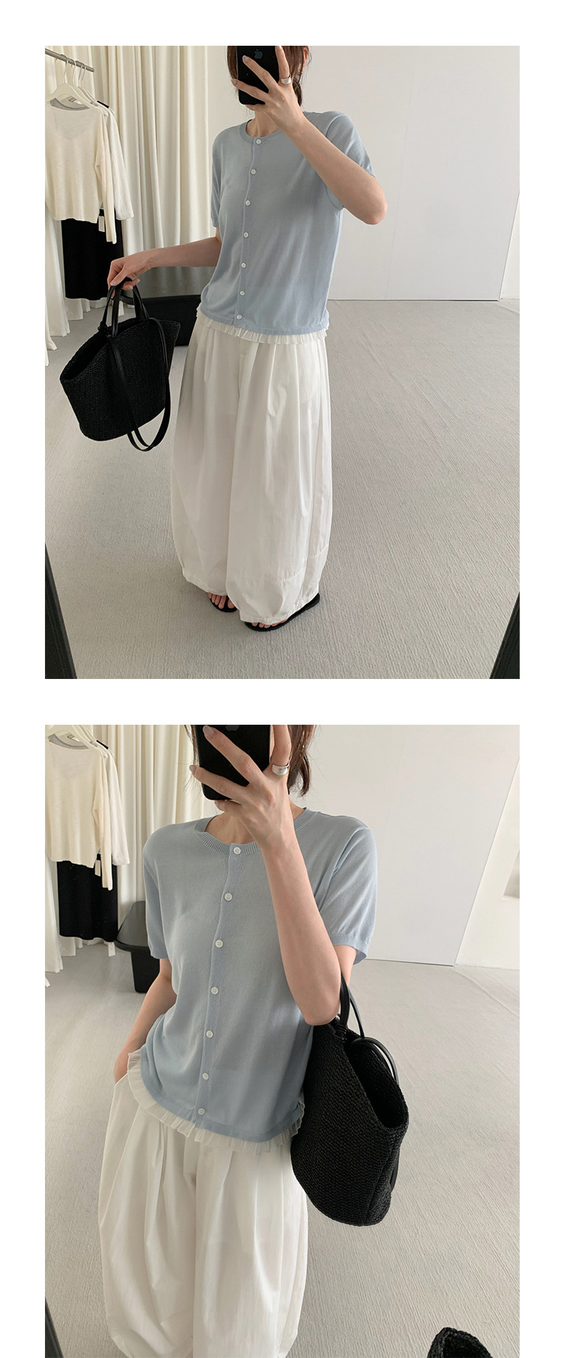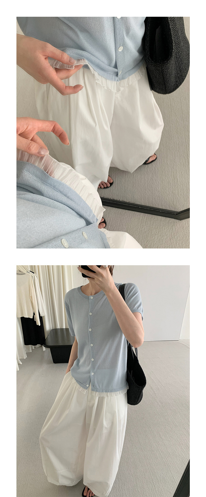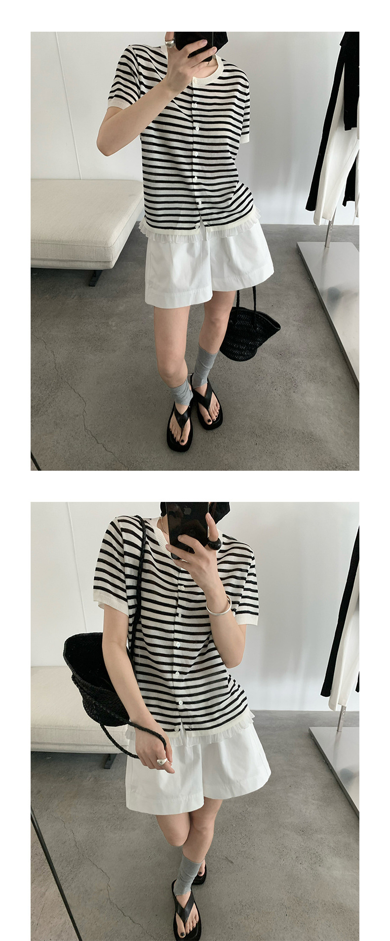 TG 작은 신선한 연꽃 잎 레이스 스티칭 싱글 브레스트 스웨터 여성의 2025 년 여름 새로운 짧은 소매 탑 24858스토어 가기