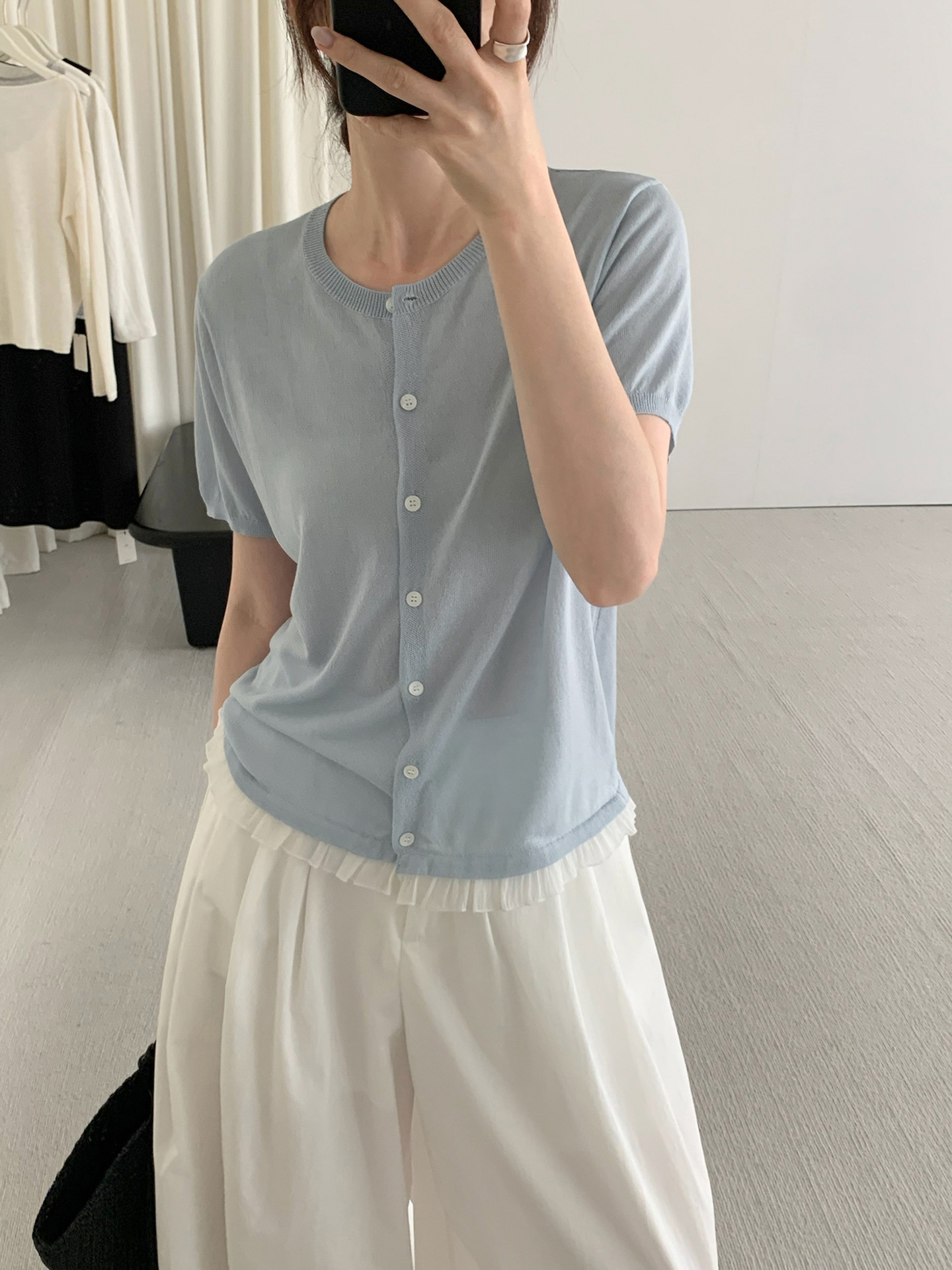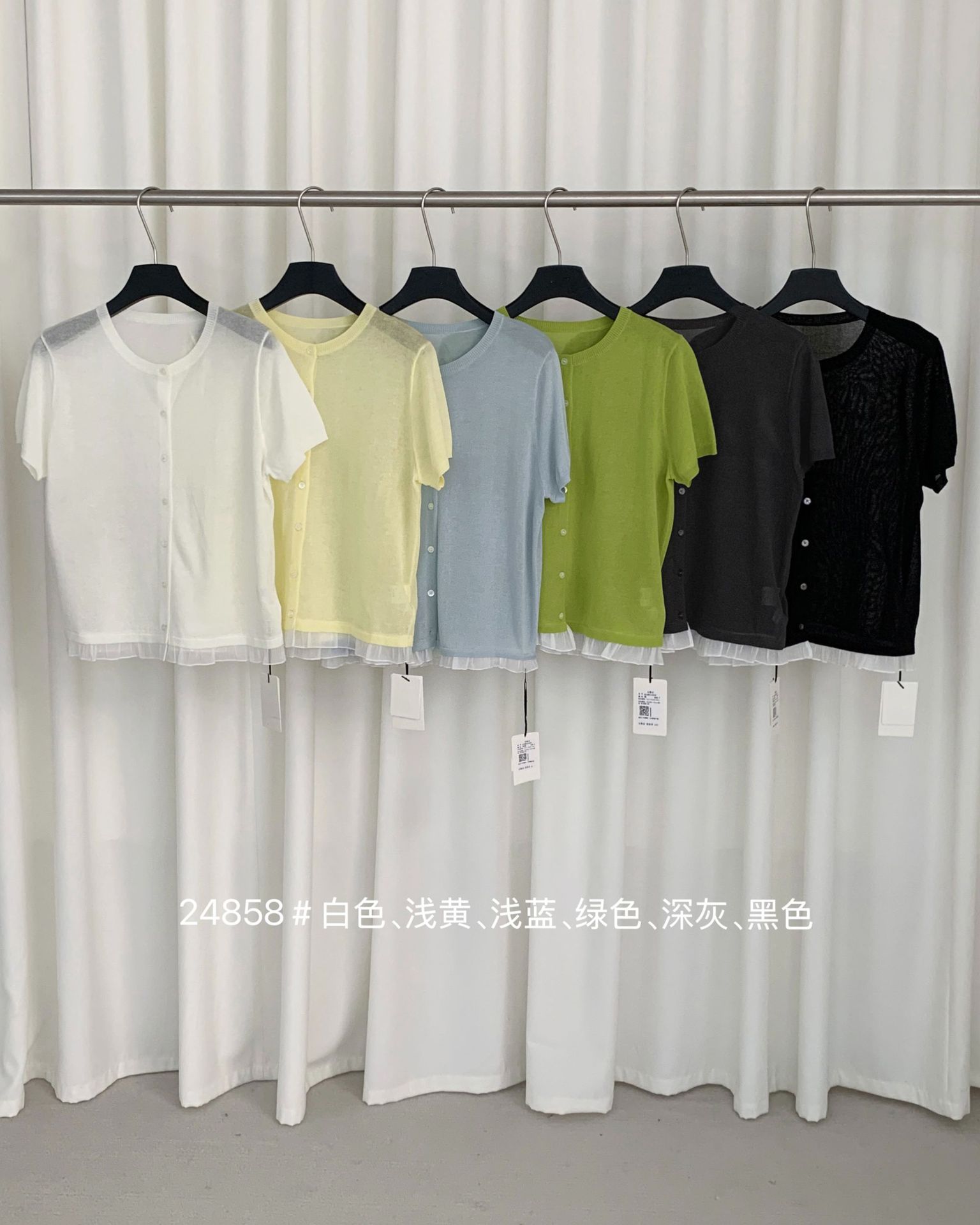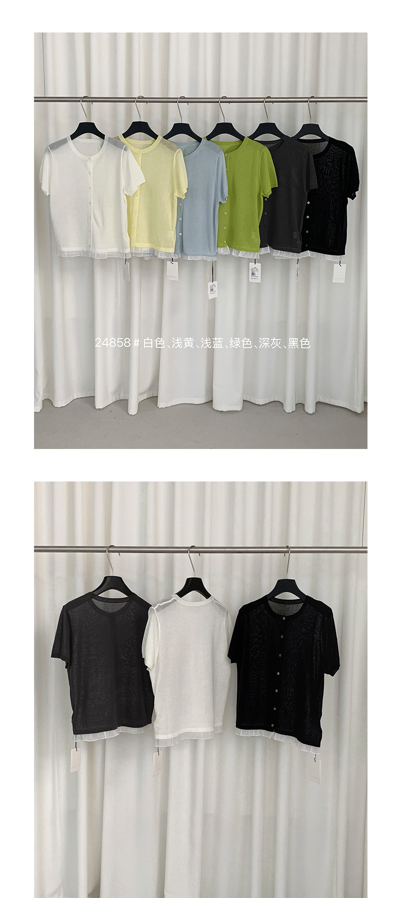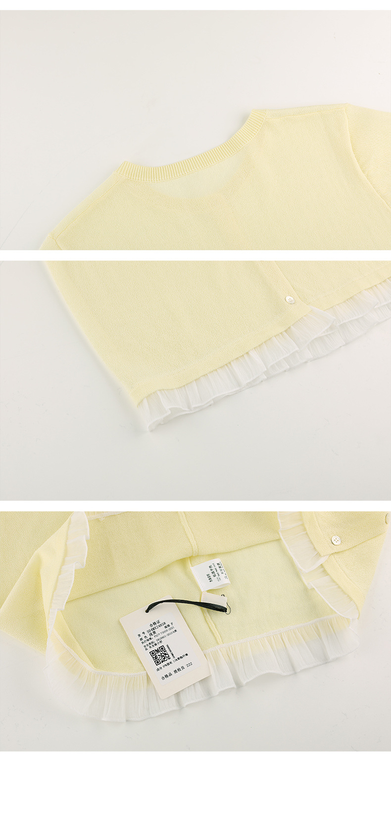 TG 작은 신선한 연꽃 잎 레이스 스티칭 싱글 브레스트 스웨터 여성의 2025 년 여름 새로운 짧은 소매 탑 24858