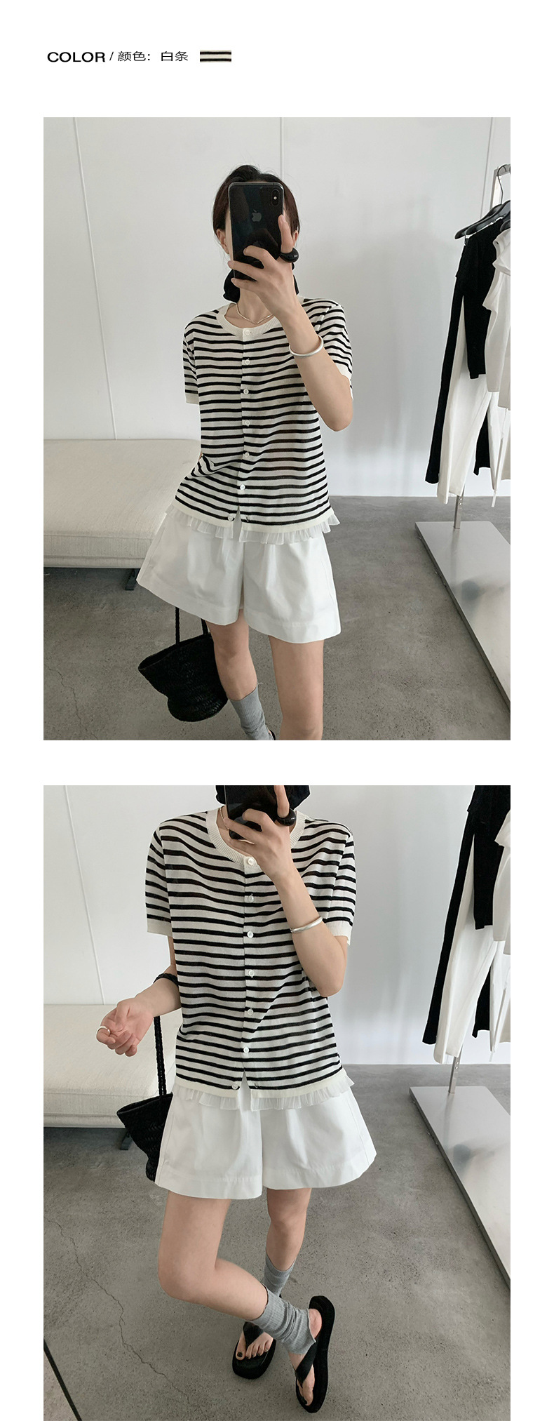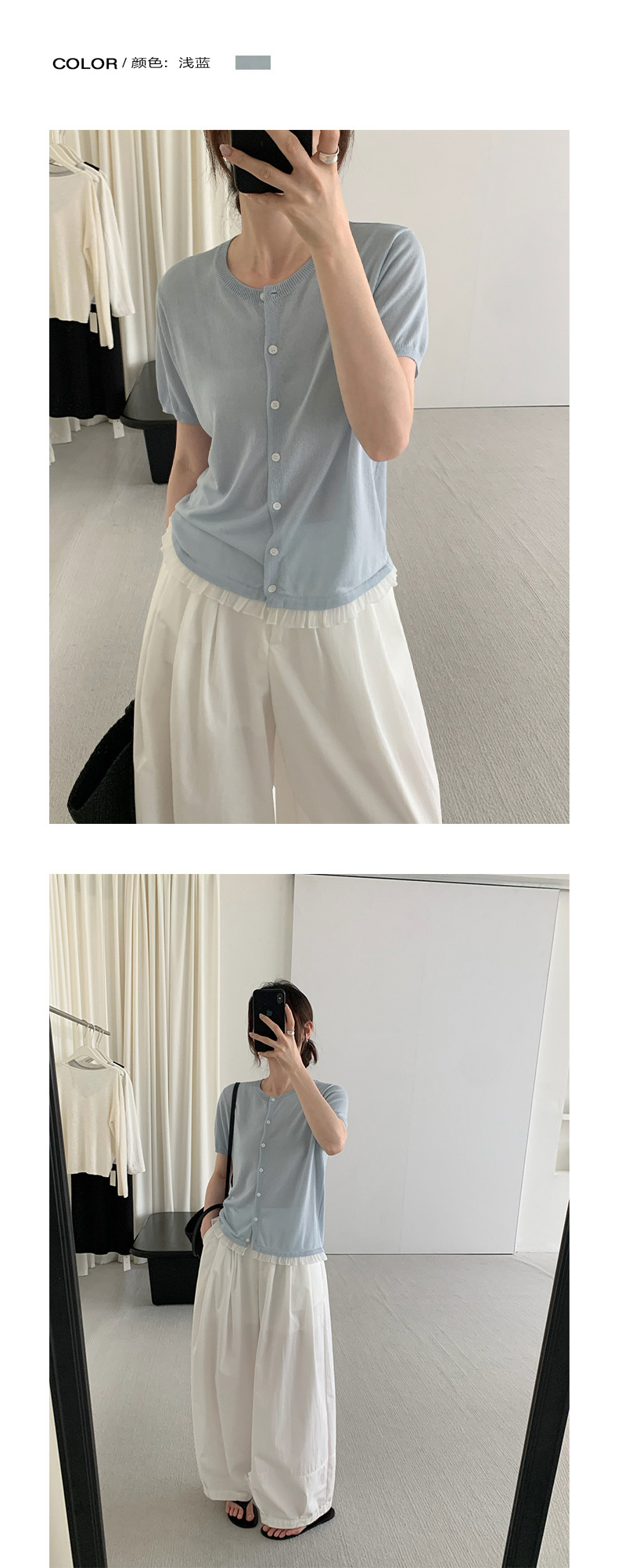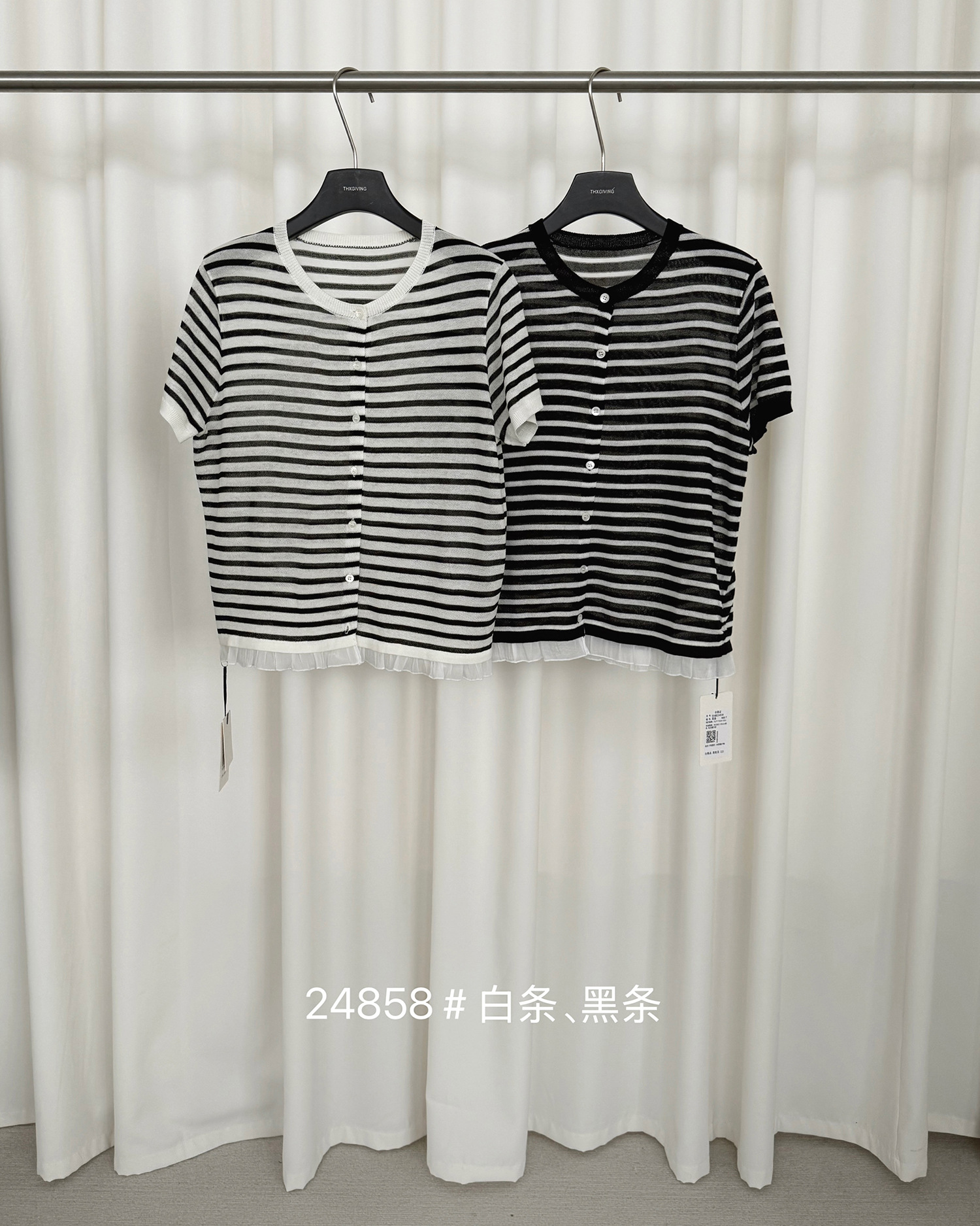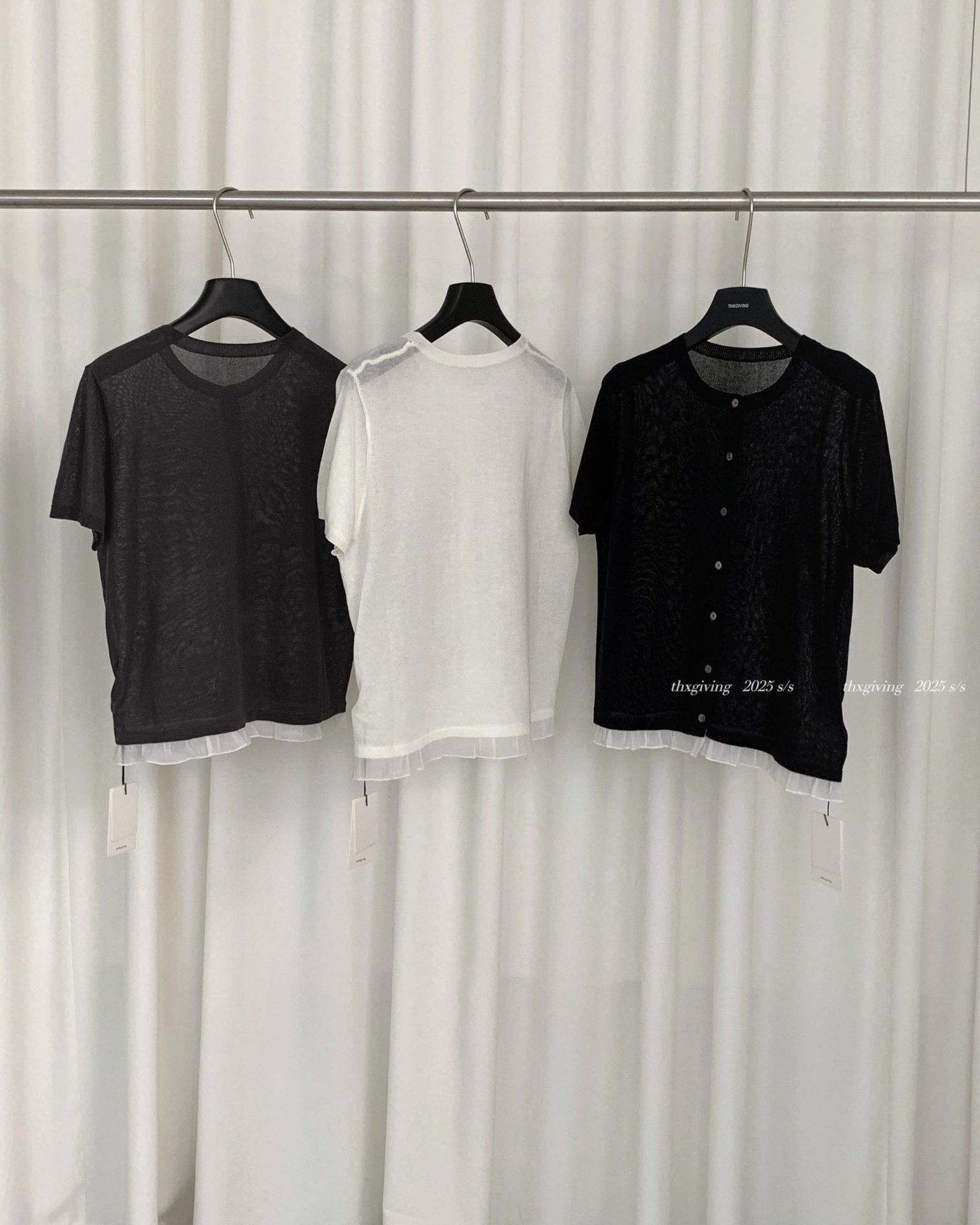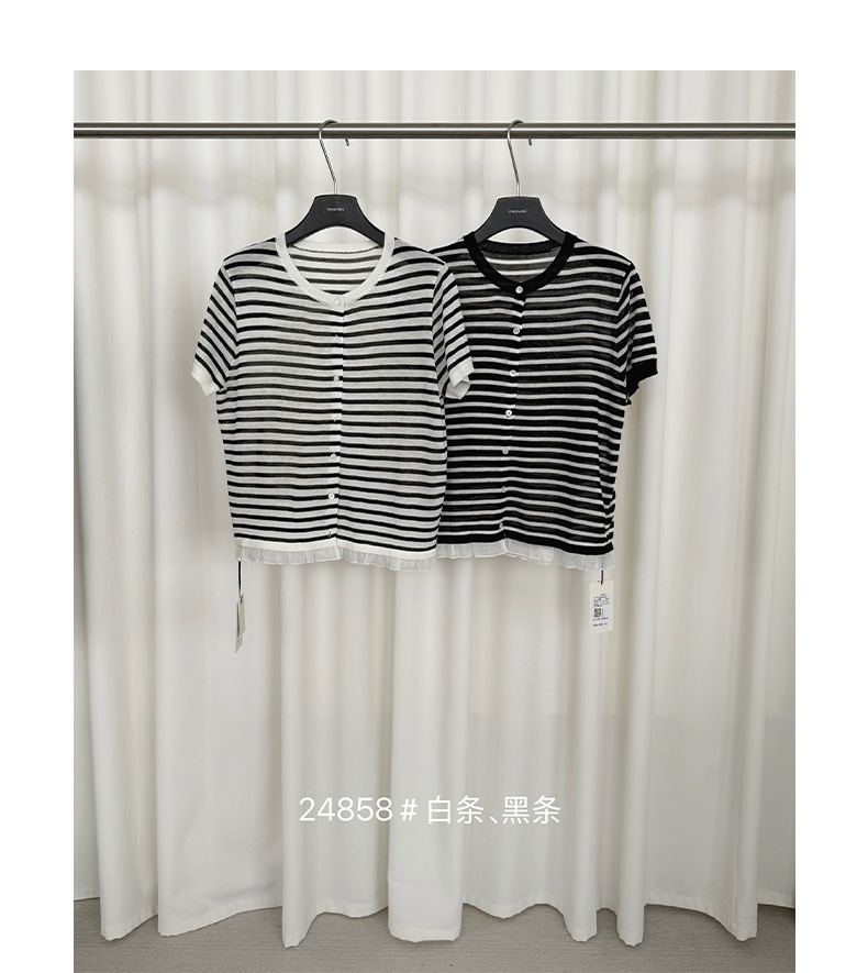 TG 작은 신선한 연꽃 잎 레이스 스티칭 싱글 브레스트 스웨터 여성의 2025 년 여름 새로운 짧은 소매 탑 24858