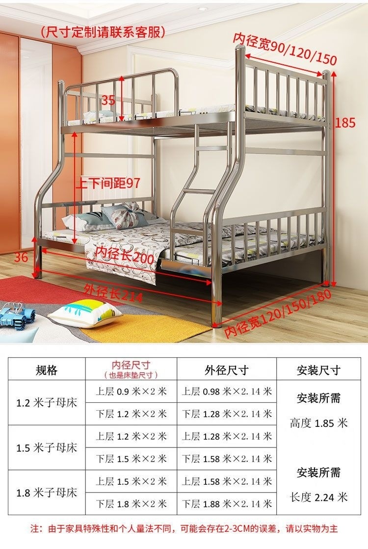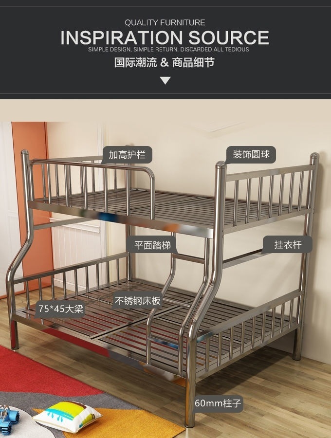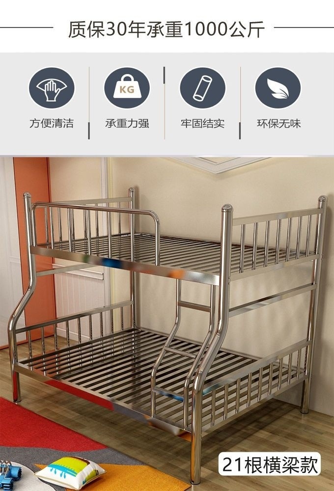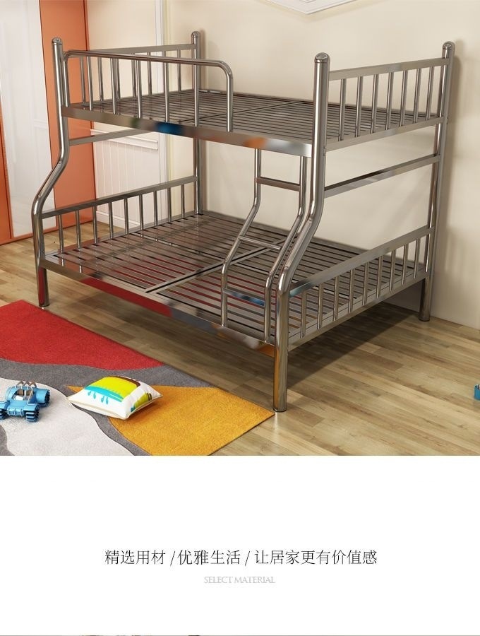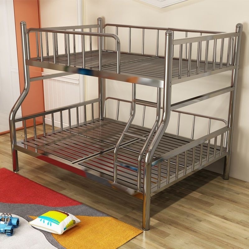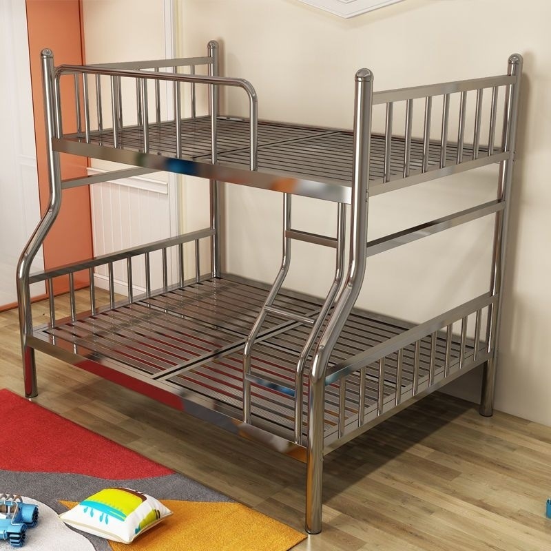 두꺼운 스테인레스 스틸 이층 침대, 높고 낮은 이층 침대, 철제 프레임 침대, 간단한 철제 침대, 성인용 더블 침대