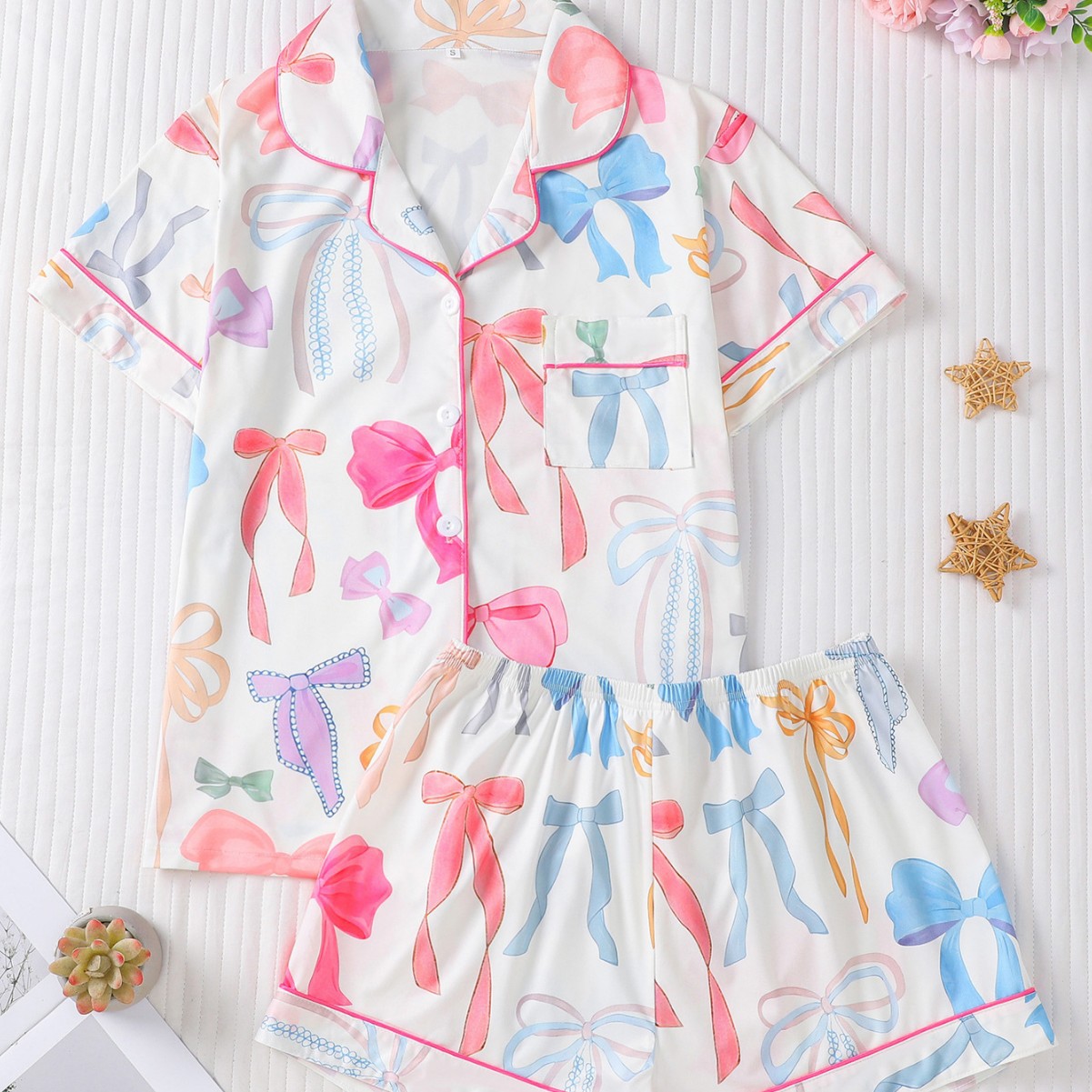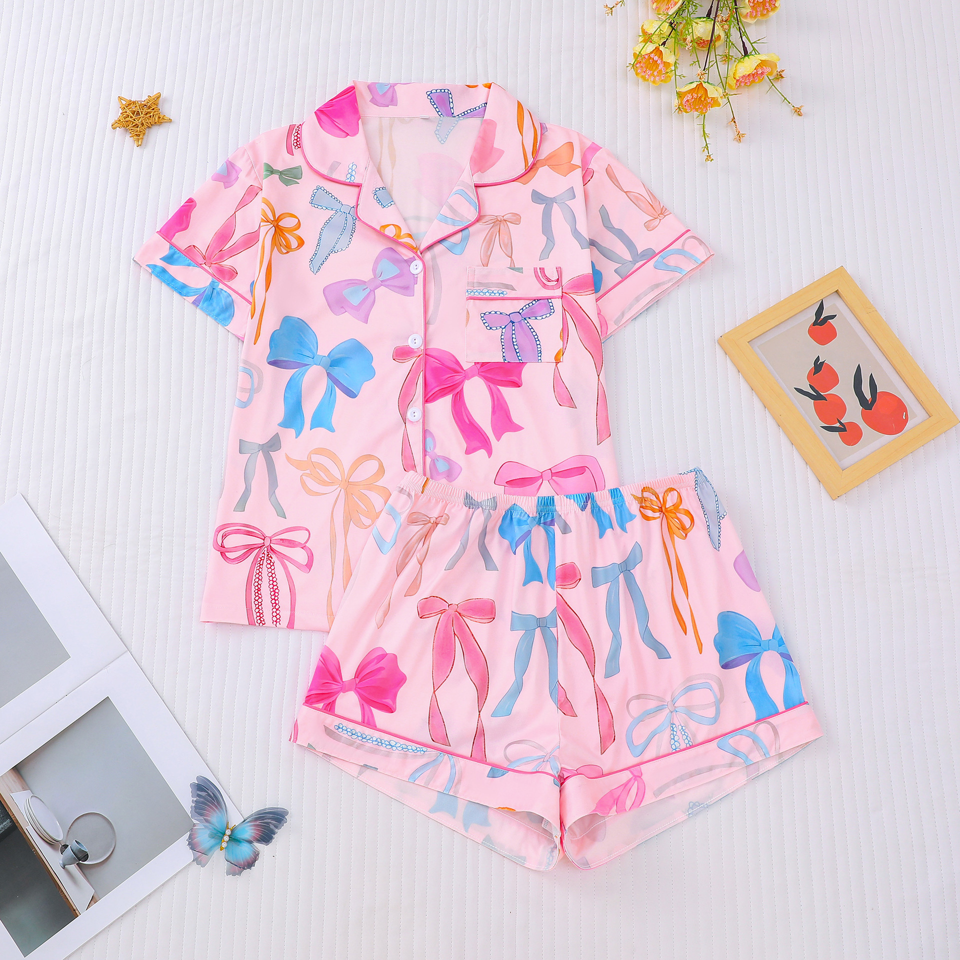 국경 간 대외 무역 새로운 잠옷 사계절 활 인쇄 옷깃 느슨한 짧은 소매 반바지 여성 홈 의류 세트