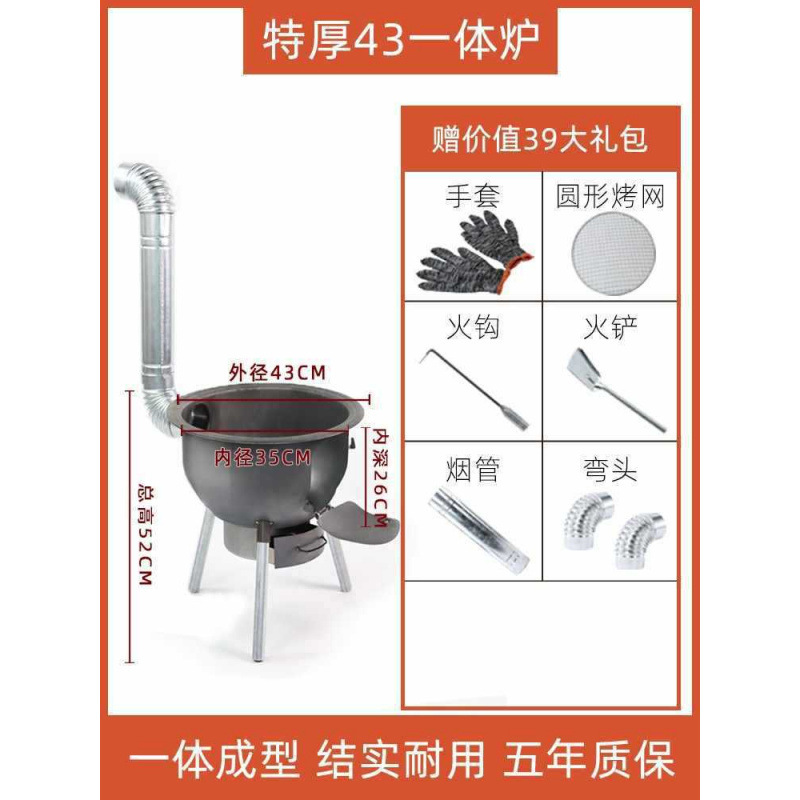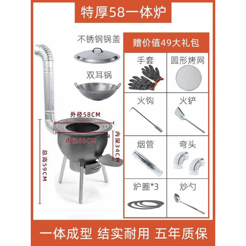 • [두꺼운 냄비] 일체형 난로 58CM + 난로링 3개 + 이중귀 냄비 + 뚜껑 + 튀김숟가락 + 난로