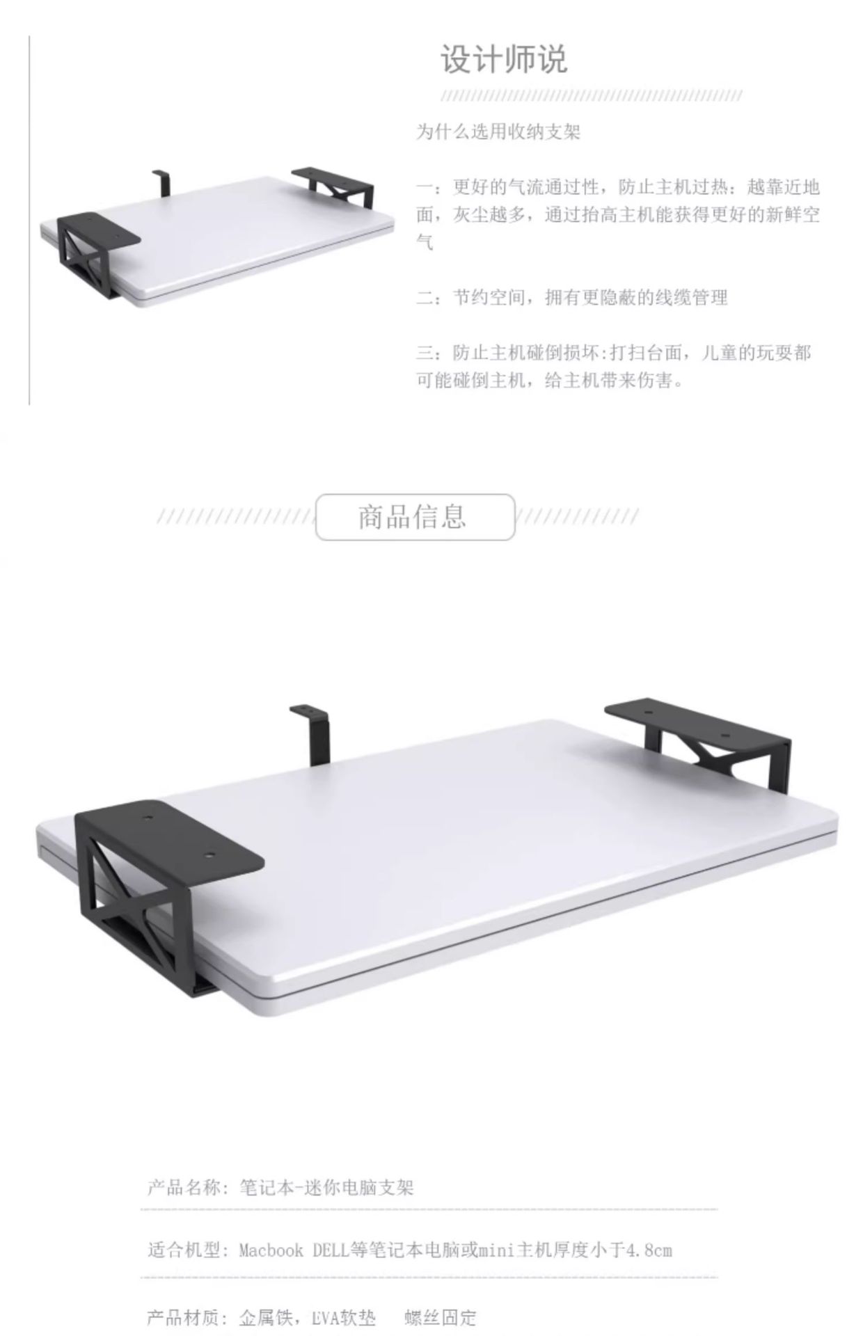 작은 노트북 미니 호스트 책상 아래 금속 보관 홀더 공간 절약