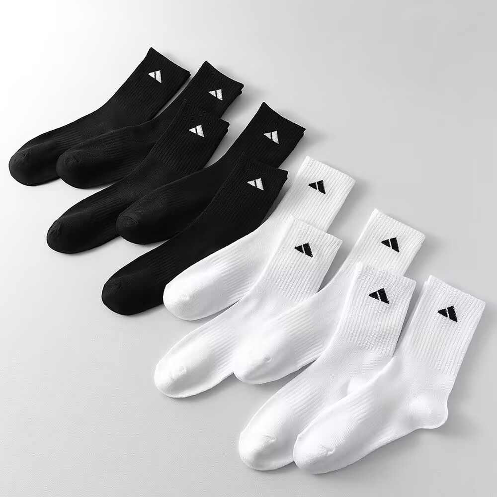 크로스보더 폴리에스터 면 혼방 양말 캐주얼 스포츠 농구 스트리트 삼각형 롱삭스 사계절용 흑백 해외 수출용스토어 가기