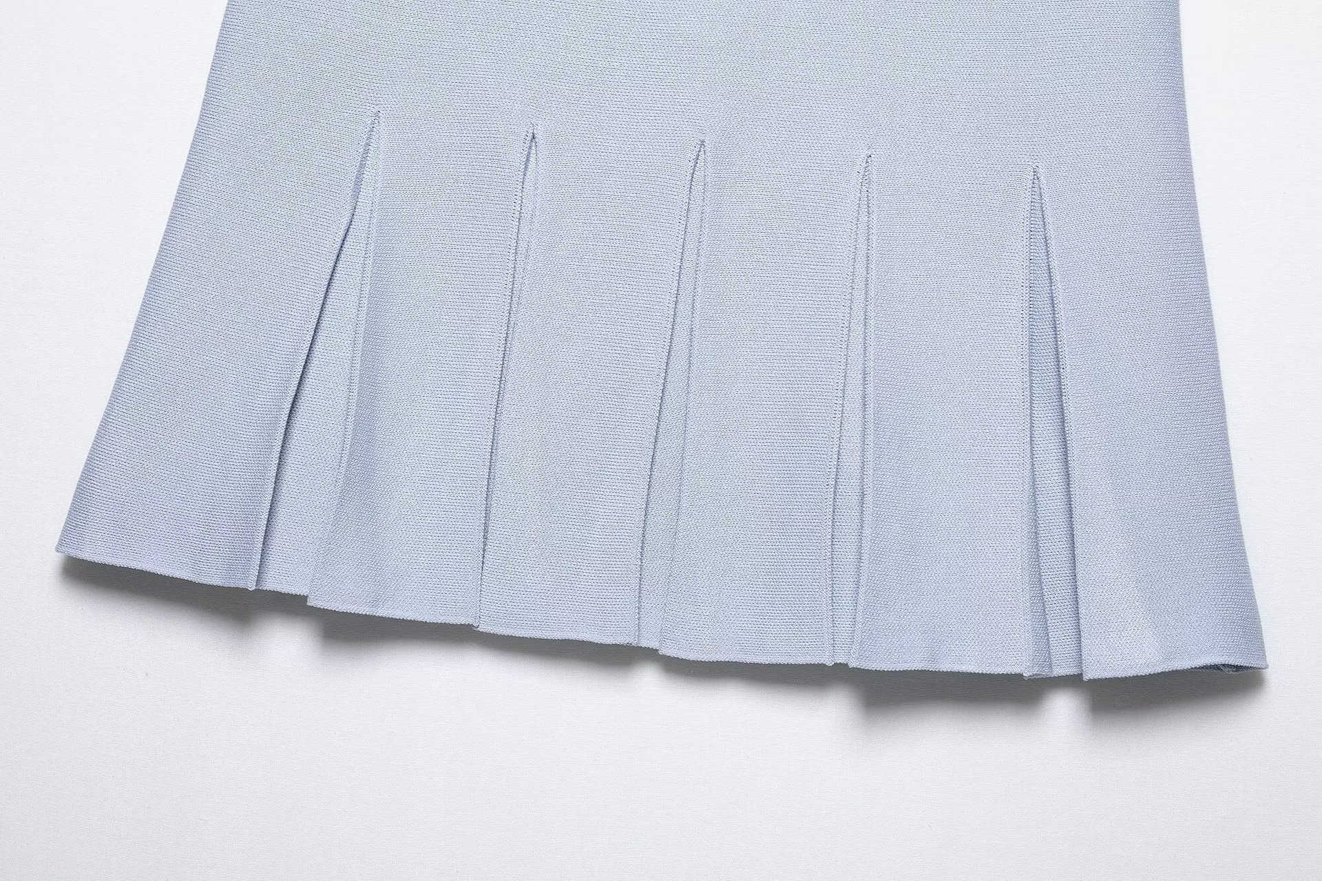 6311-2025 새로운 여성 유럽과 미국 스타일의 솔리드 컬러 다목적 와이드 플리츠 니트 미니 스커트 짧은 스커트스토어 가기