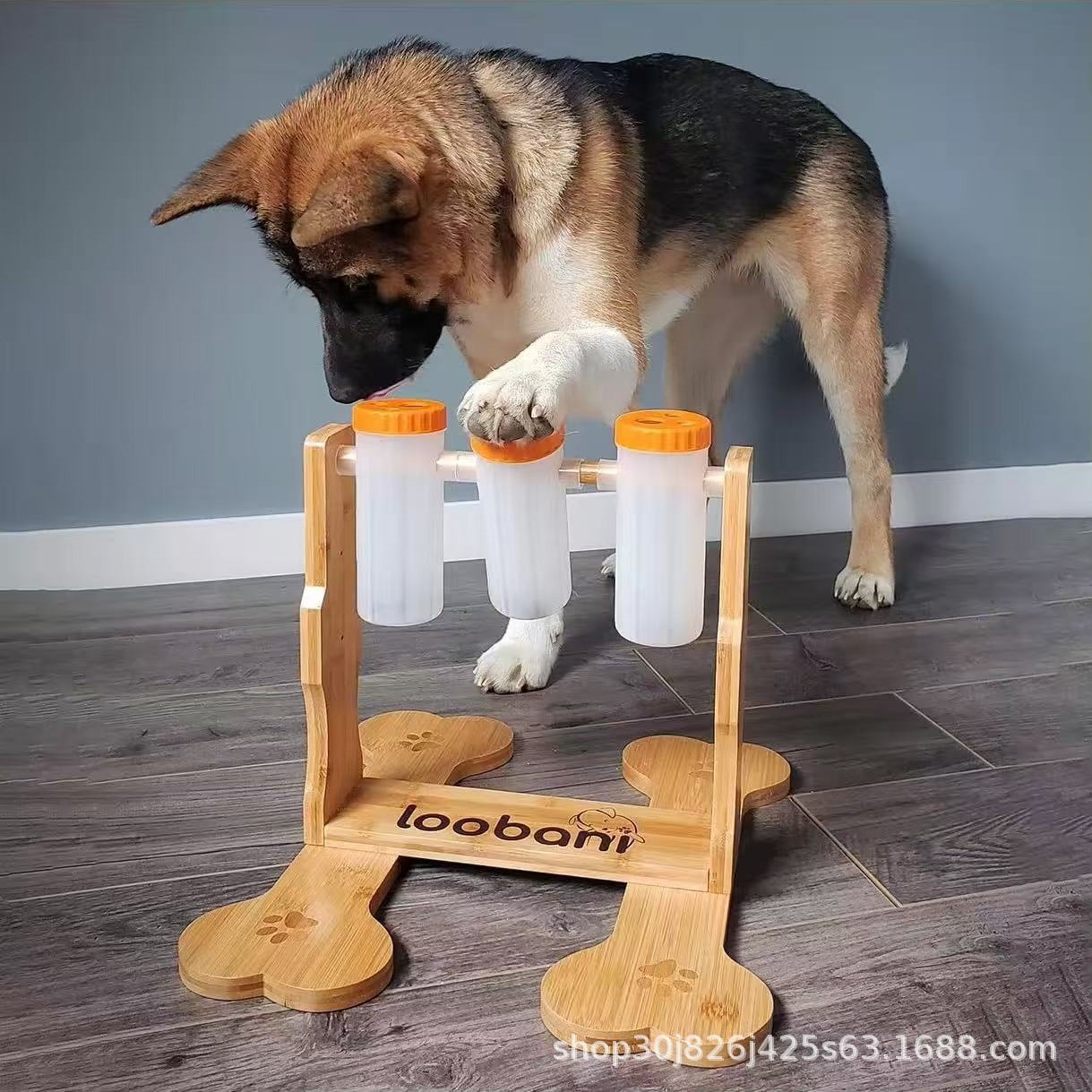 개 대화 형 교육 나무 피더 가정용 대나무 애완 동물 피더 바닥 스탠딩 나무 개밥 디스펜서스토어 가기