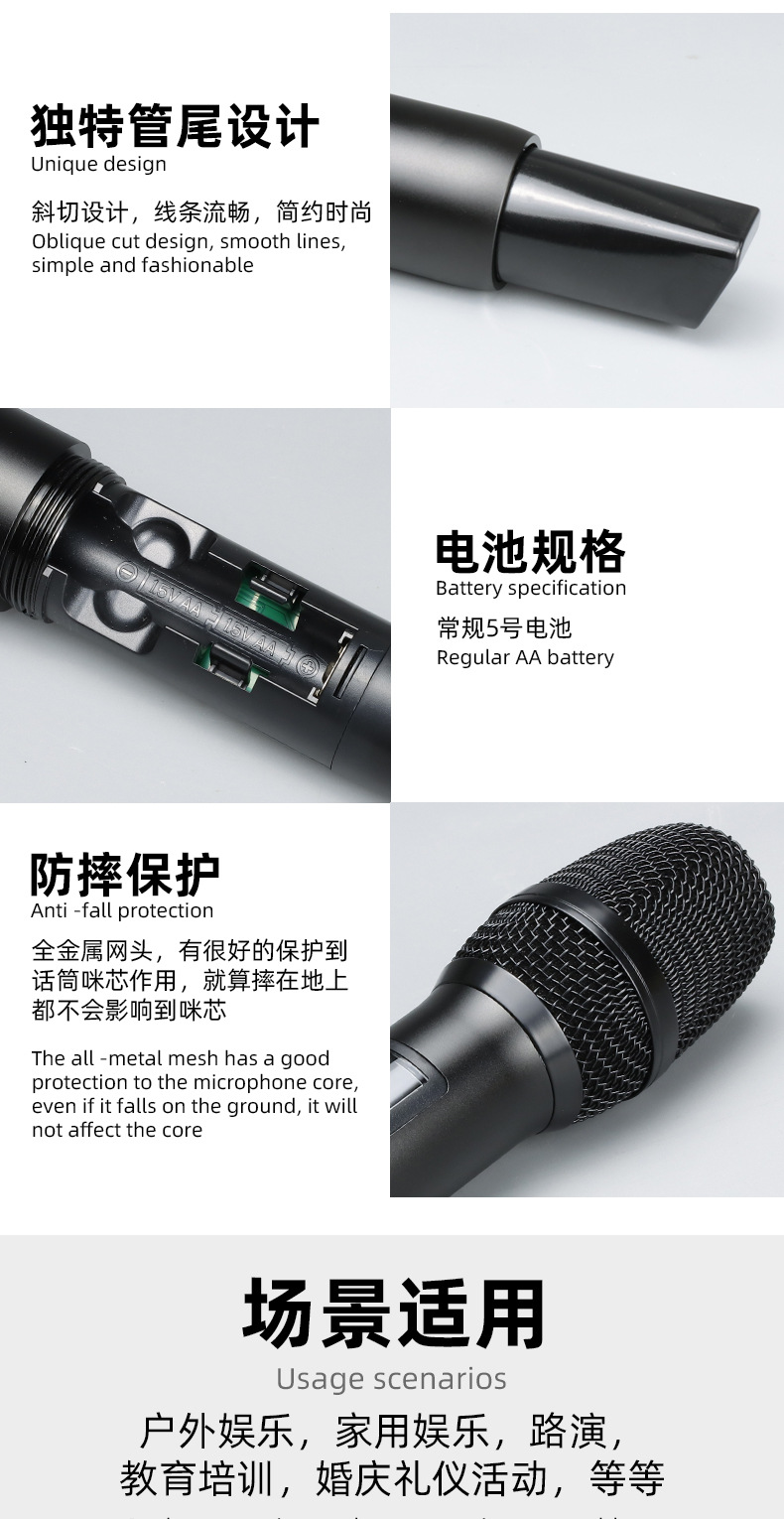 1 대 2 무선 마이크 라이브 방송 홈 노래 다이나믹 서클 유니버설 핸드 헬드 마이크 컨퍼런스 무대 공연 야외
