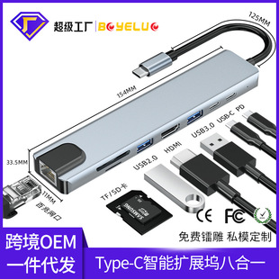 跨境拓展坞type-c八合一hub电脑集线器多接口HDMI转换器扩展坞