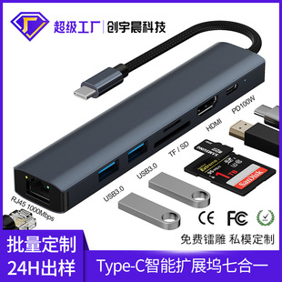 新品Typec拓展坞七合一hub适用macbook USB分线器HDMI网口扩展坞