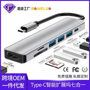 跨境type-c拓展坞USB3.0+USB2.0* 4+USB-C+PD 笔记本七合一扩展坞