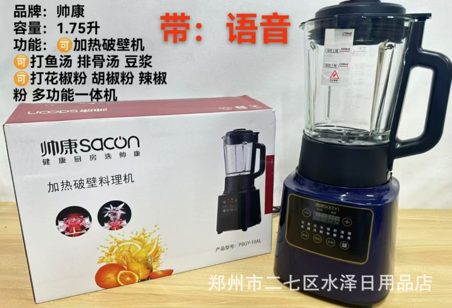 Sacon 1.75 리터 음성 지능형 가정용 다기능 가열 벽 파괴 조리 기계 두유 기계 PBGY-10AL스토어 가기