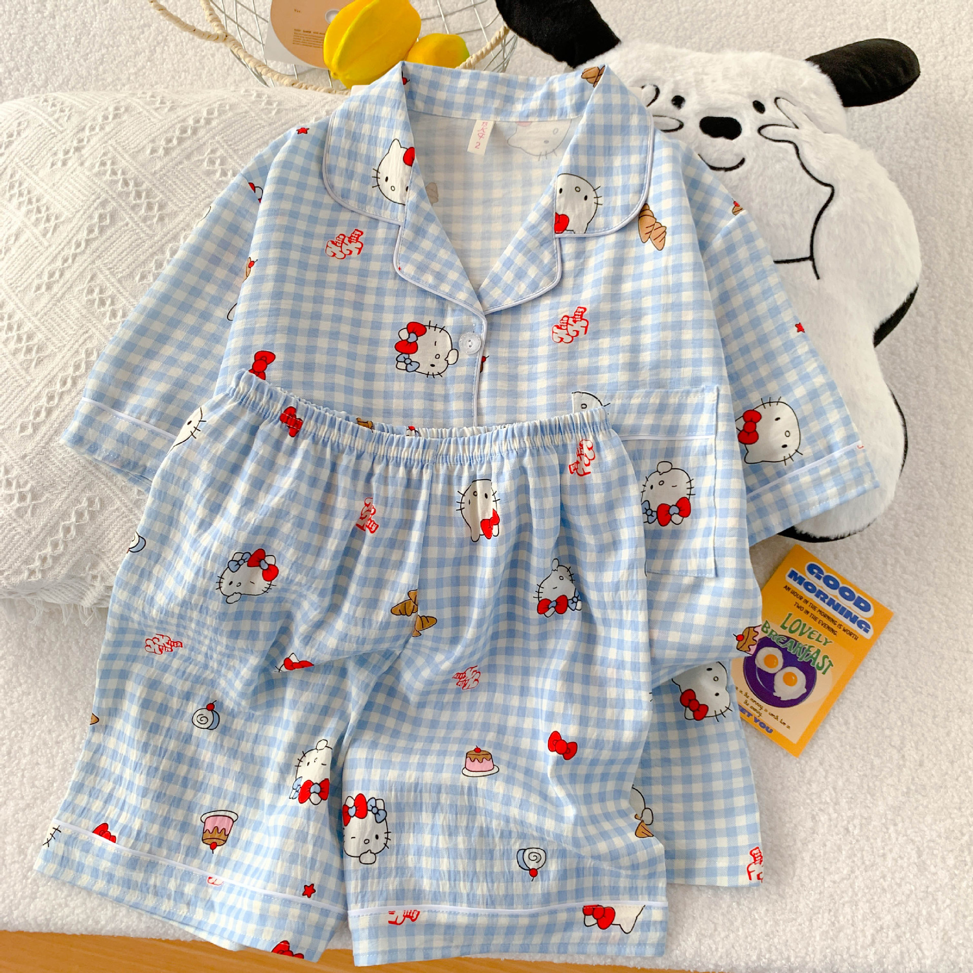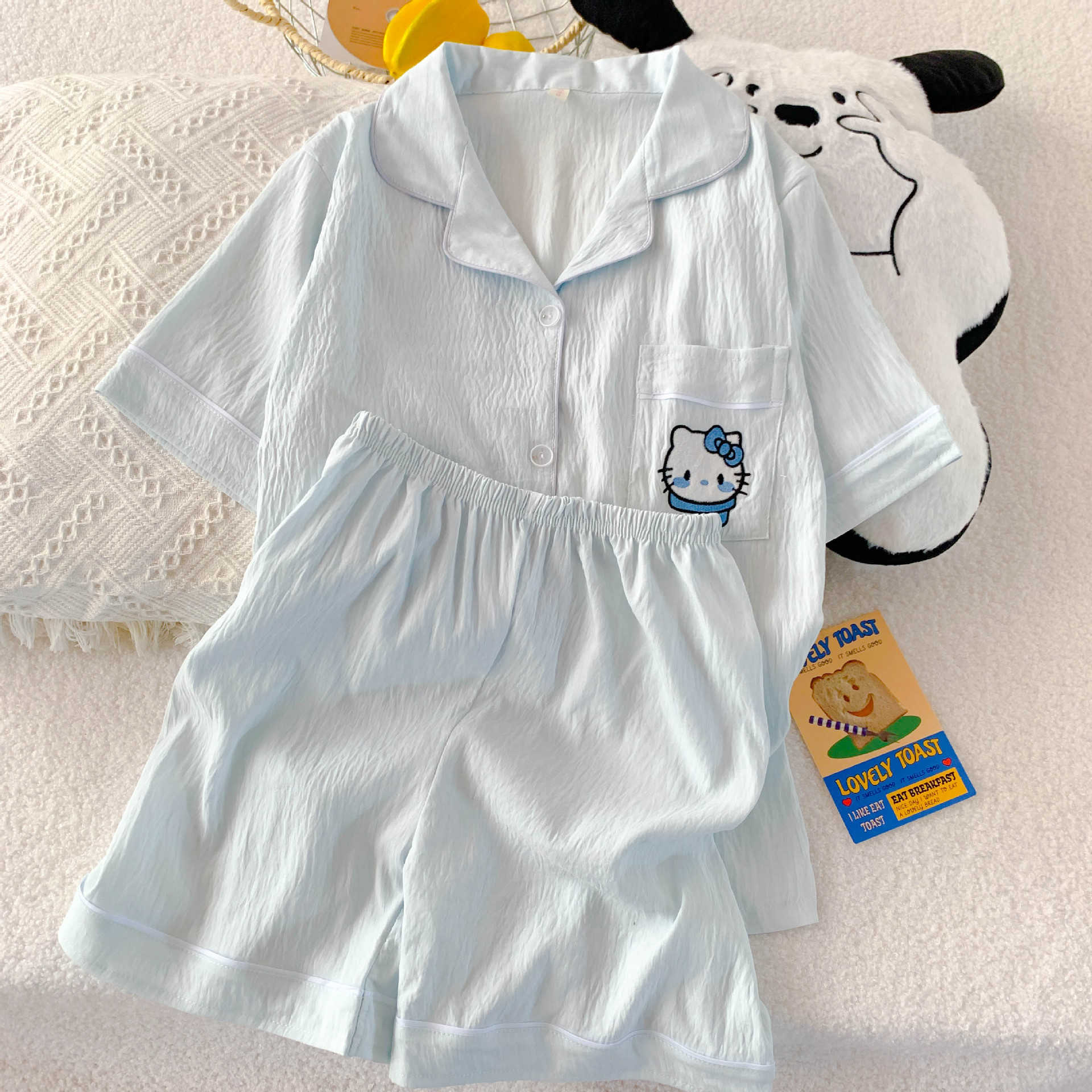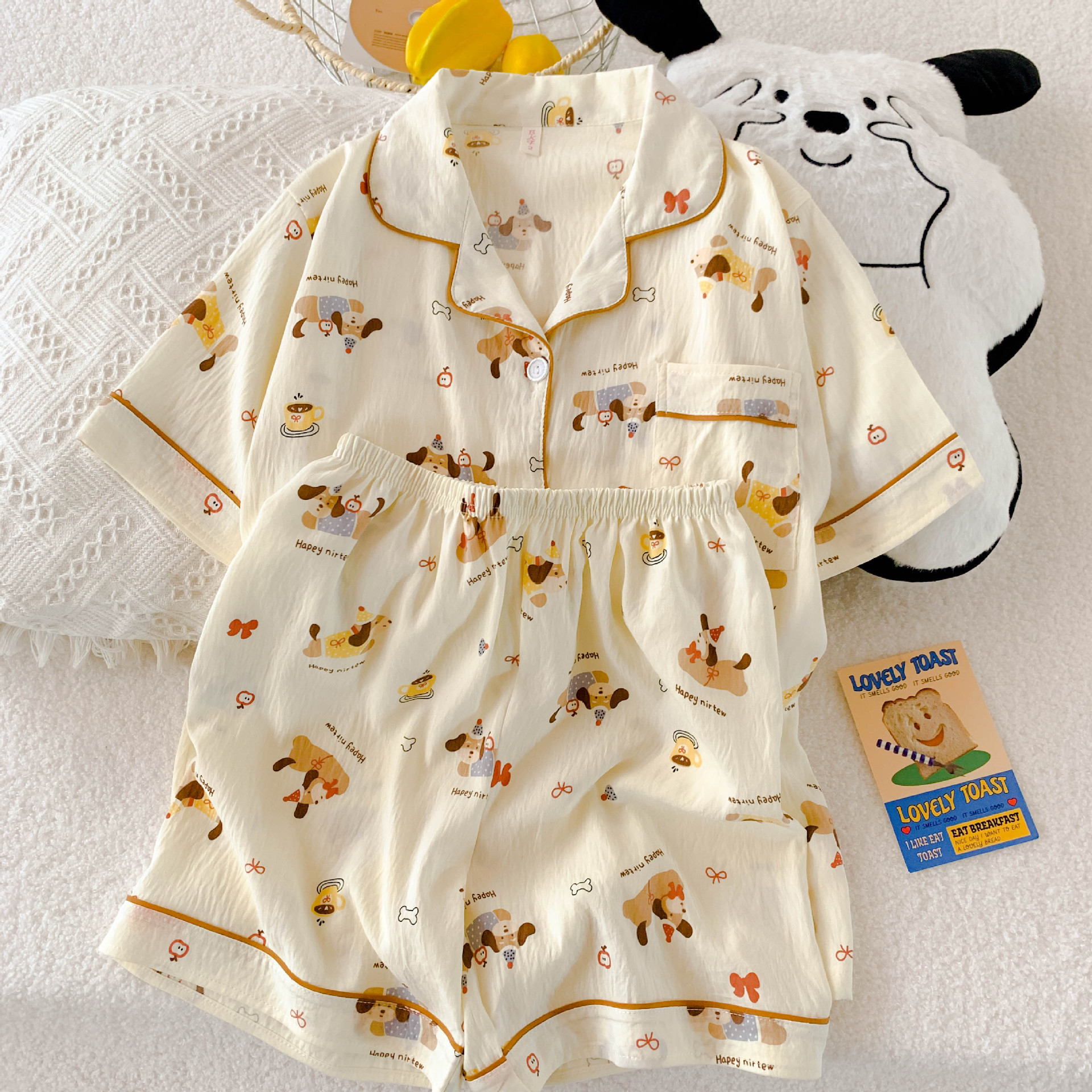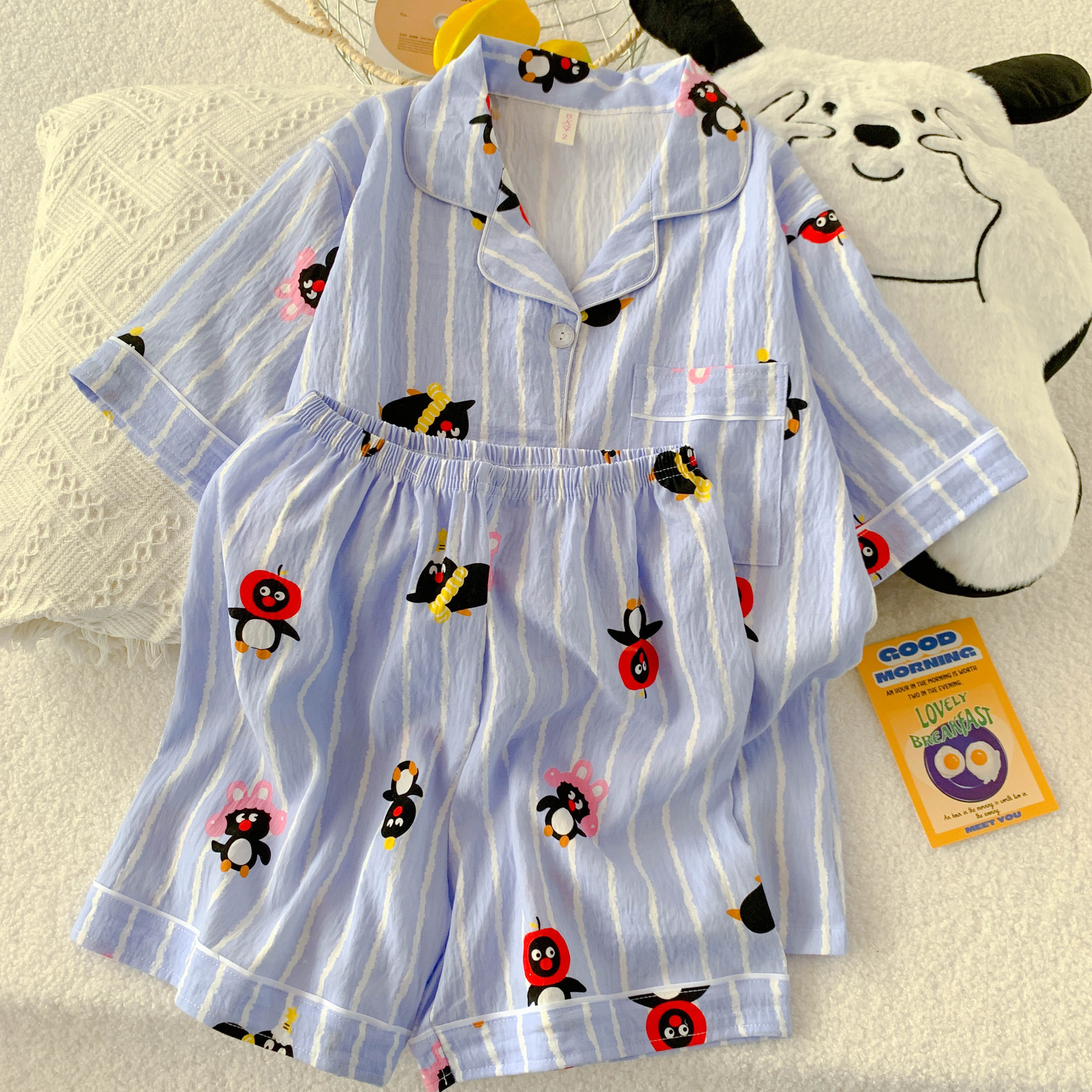 여성용 여름 잠옷 클라우드 코튼 반팔 반바지 2025 새로운 여름 얇은 스타일은 만화 가정복 세트 외부에 착용 가능스토어 가기