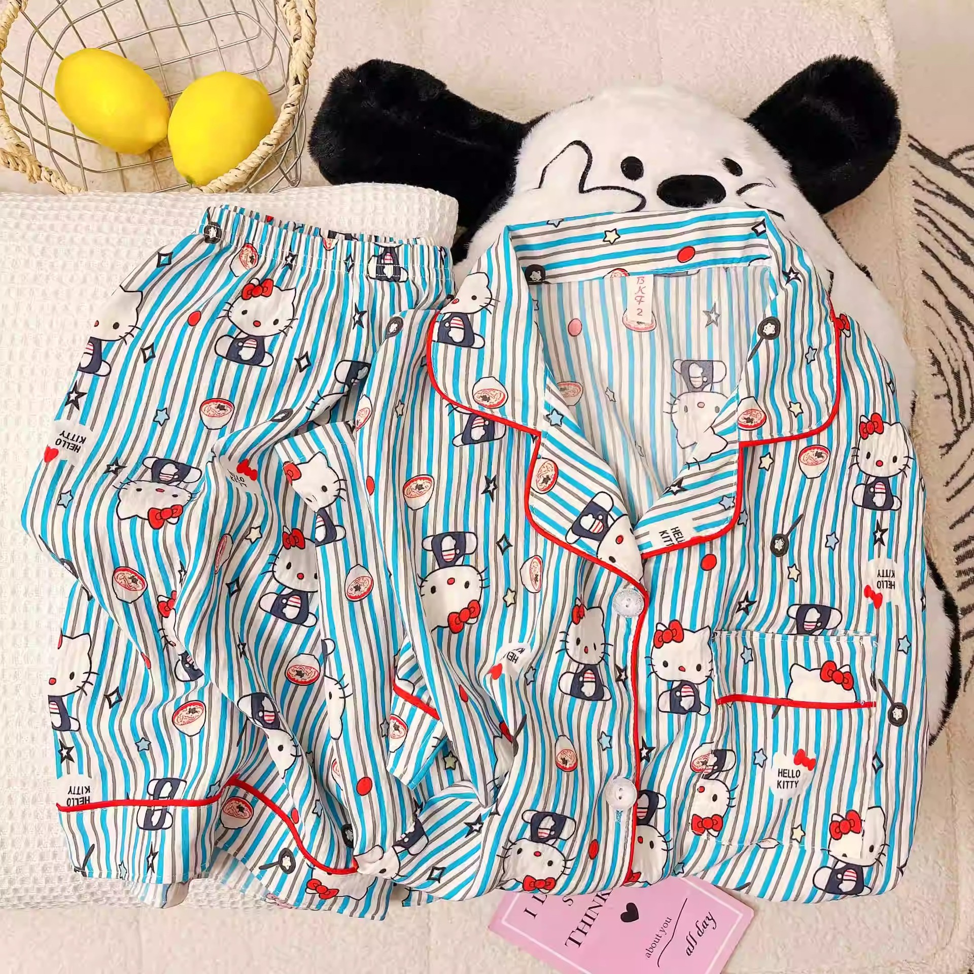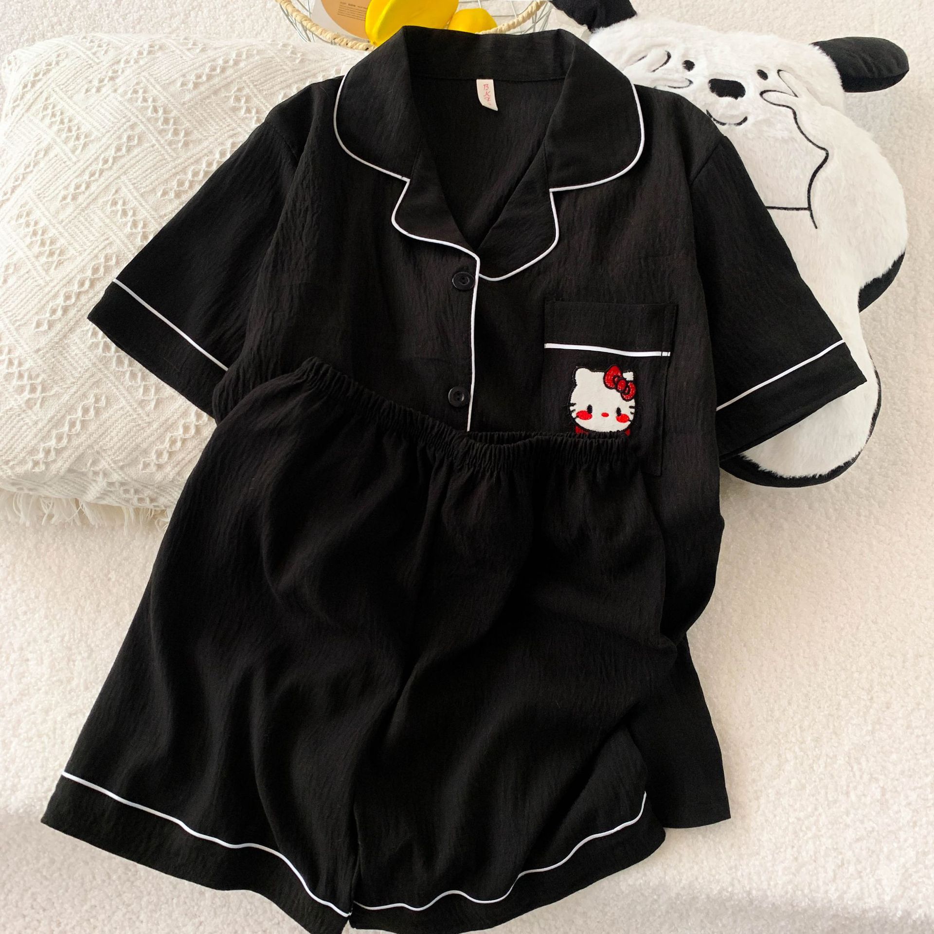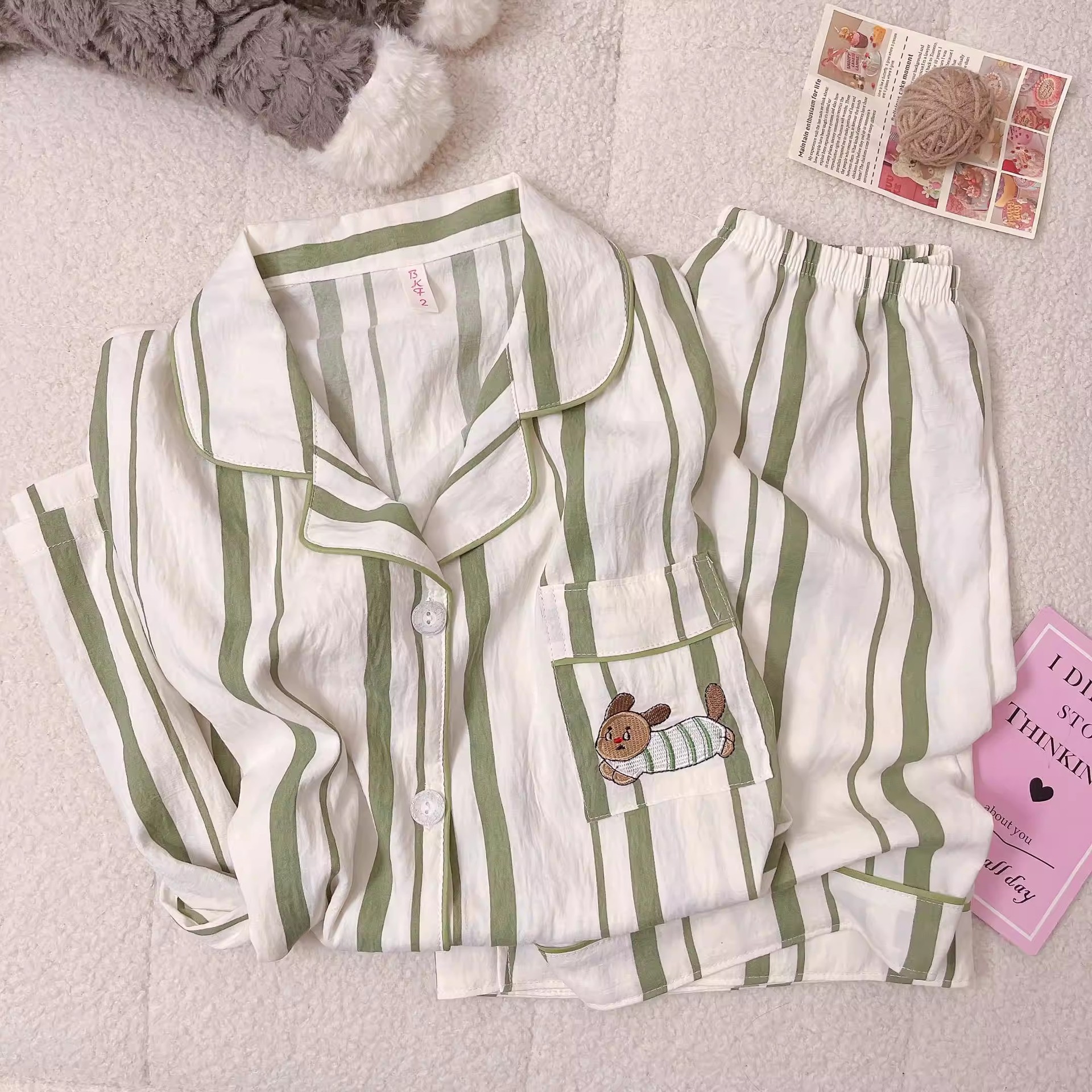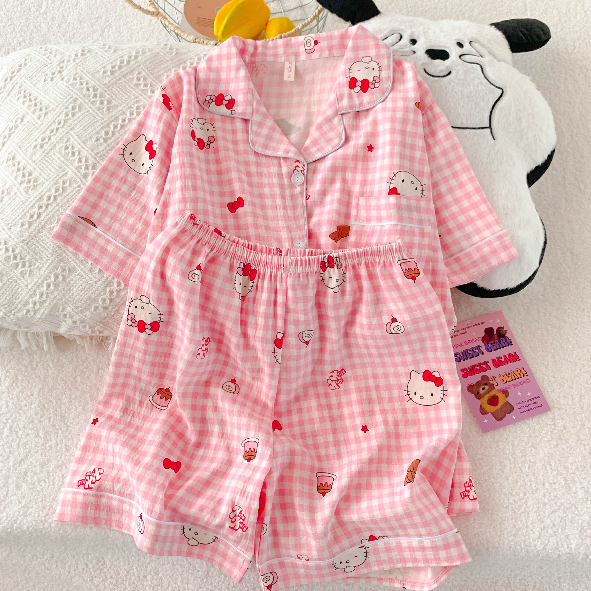 여성용 여름 잠옷 클라우드 코튼 반팔 반바지 2025 새로운 여름 얇은 스타일은 만화 가정복 세트 외부에 착용 가능스토어 가기
