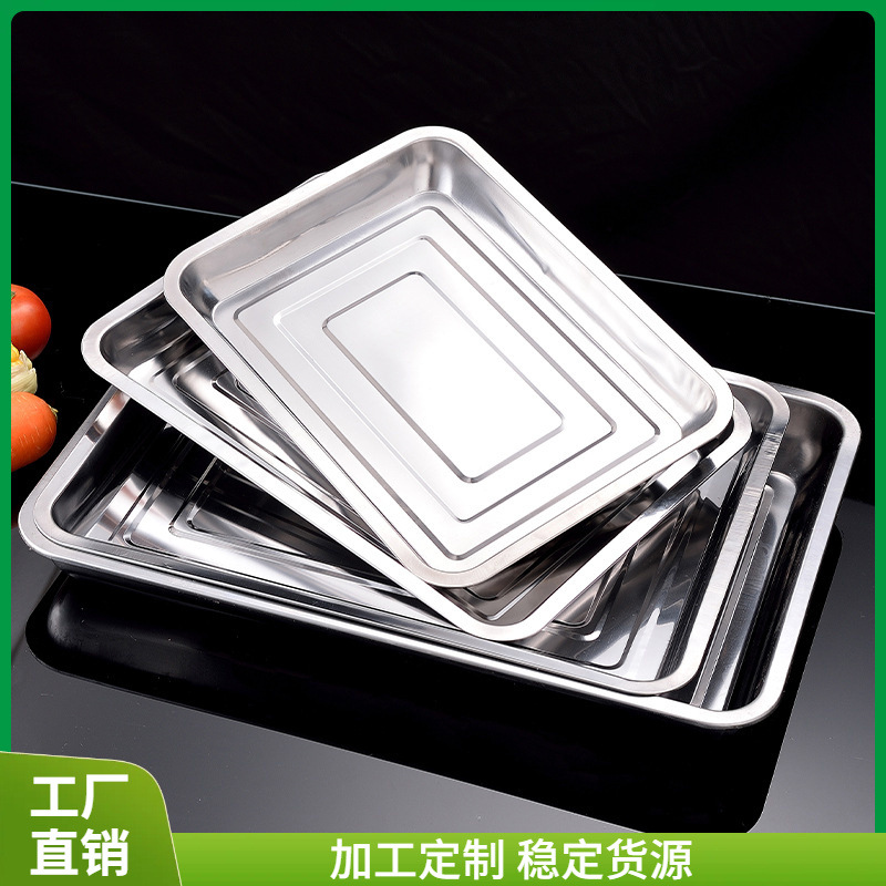 ♔ 304 스테인레스 스틸 사각 접시 식품 등급 두꺼운 깊은 접시 직사각형 트레이 상업용 찜 밥 접시 가정용 철 접시 배치