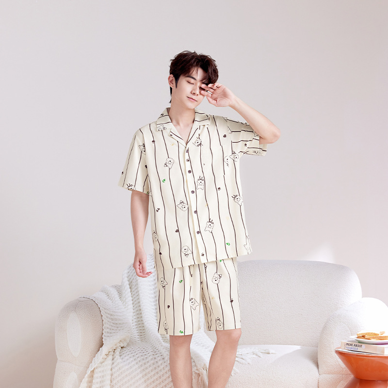 클래스 A 텐셀 코튼 남자 잠옷 여름 아이스 실크 짧은 소매 반바지 남자 잠옷 세트 외부 새 스타일 홈 옷을 입고스토어 가기