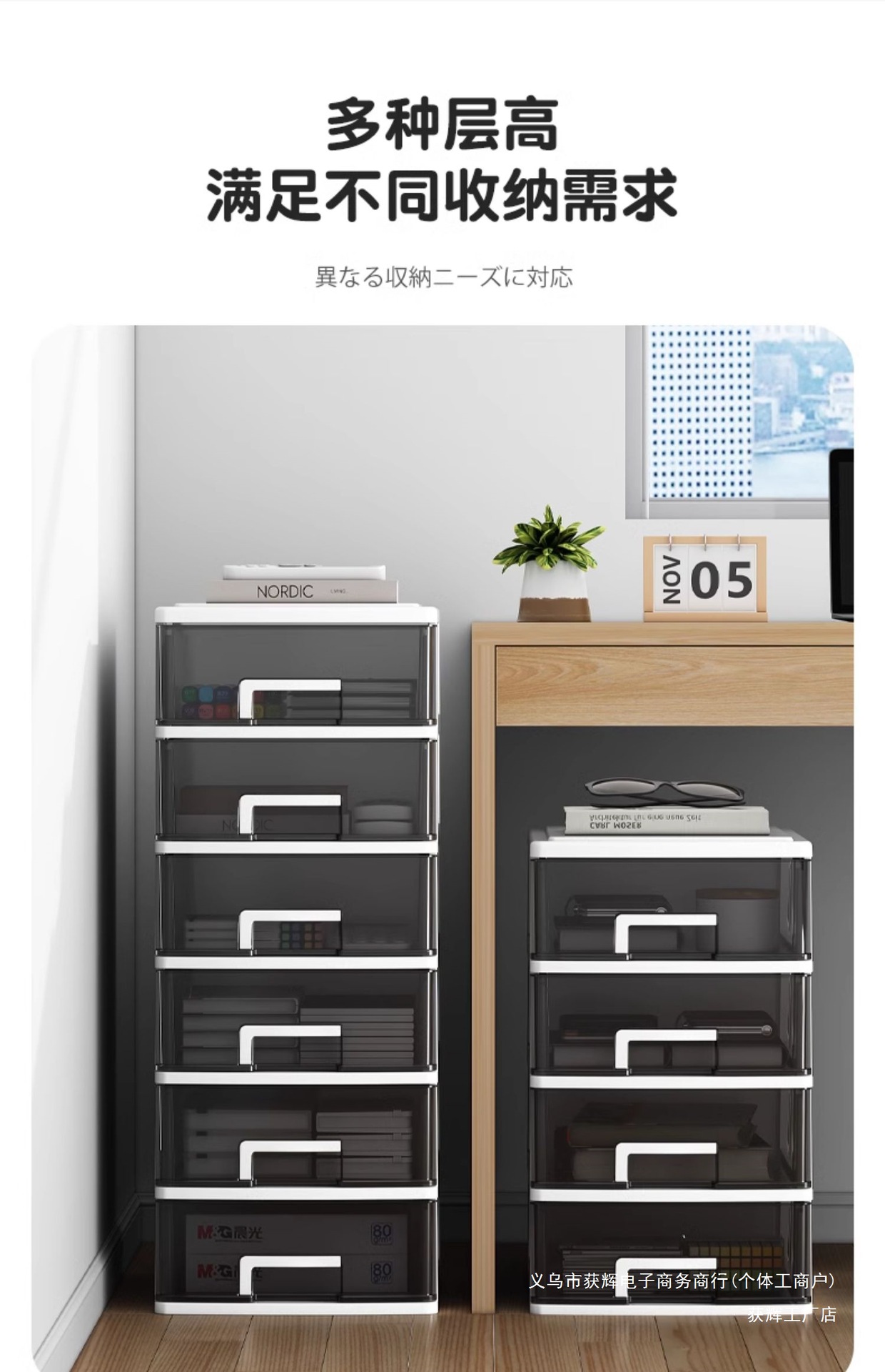 • 대형 4단(검정색+투명서랍)
