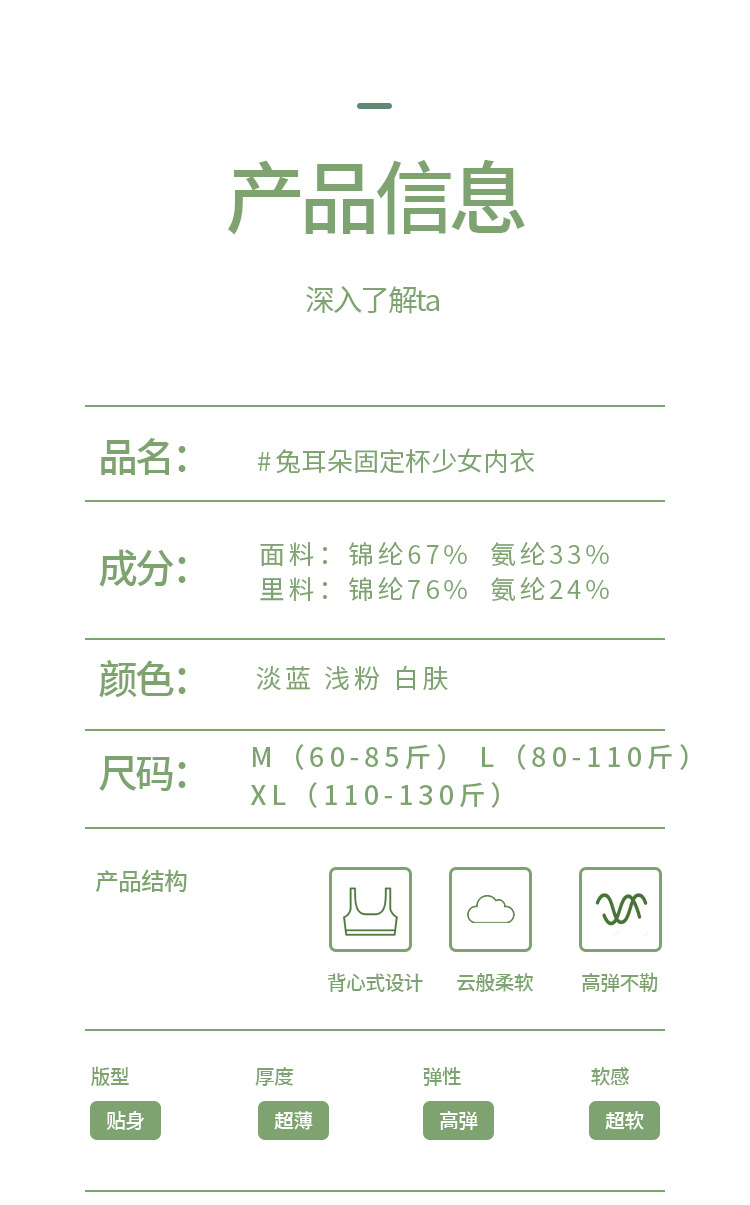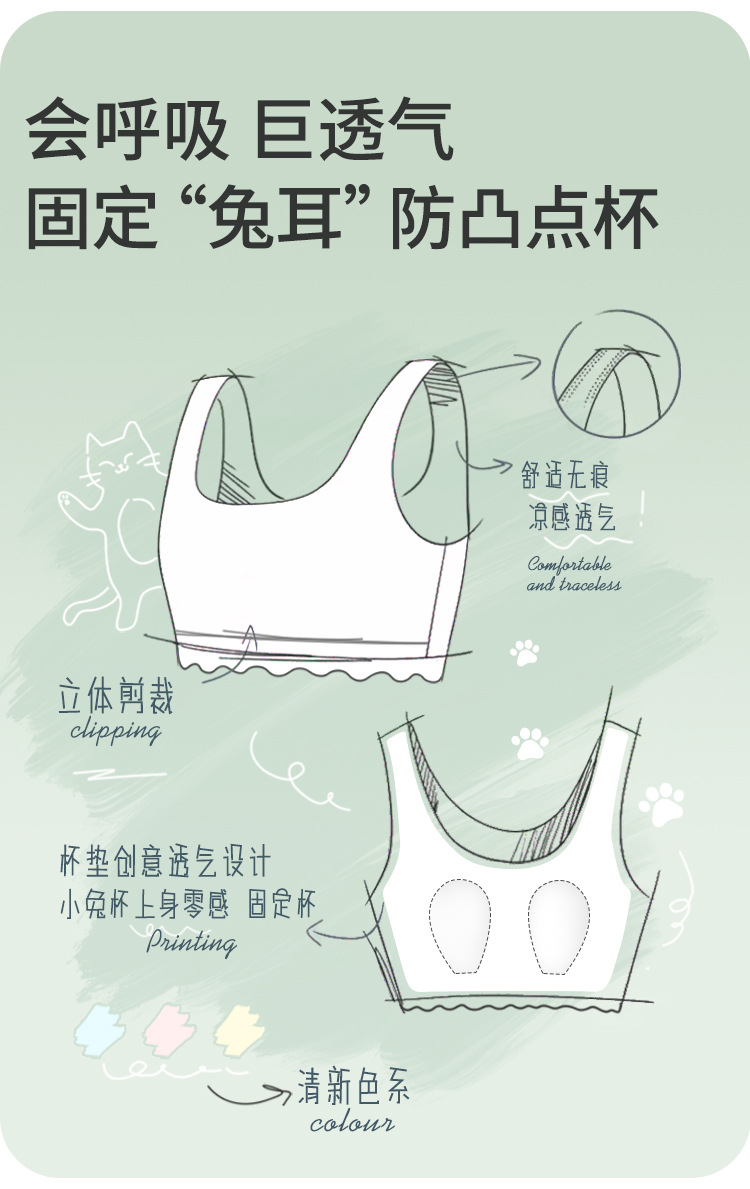 발달기 소녀를 위한 누드 무봉제 조끼 스타일 미니멀리스트 토끼 코스터, 중소형 어린이를 위한 얇은 1단계 및 2단계 속옷스토어 가기