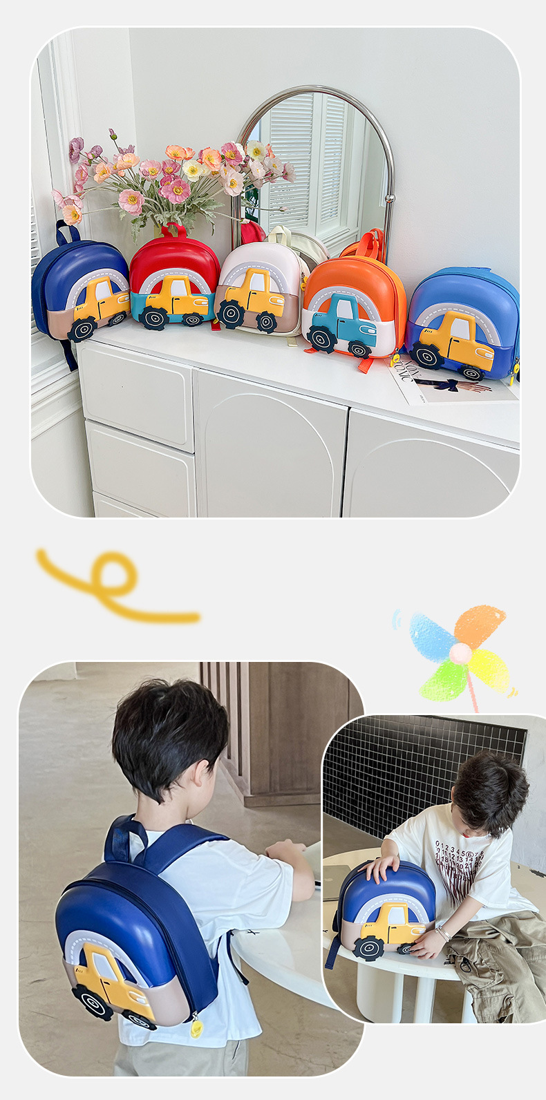 새로운 어린이 유치원 학교 가방 귀여운 애니메이션 자동차 하드 쉘 배낭 점심 가방 미니 아기 배낭스토어 가기