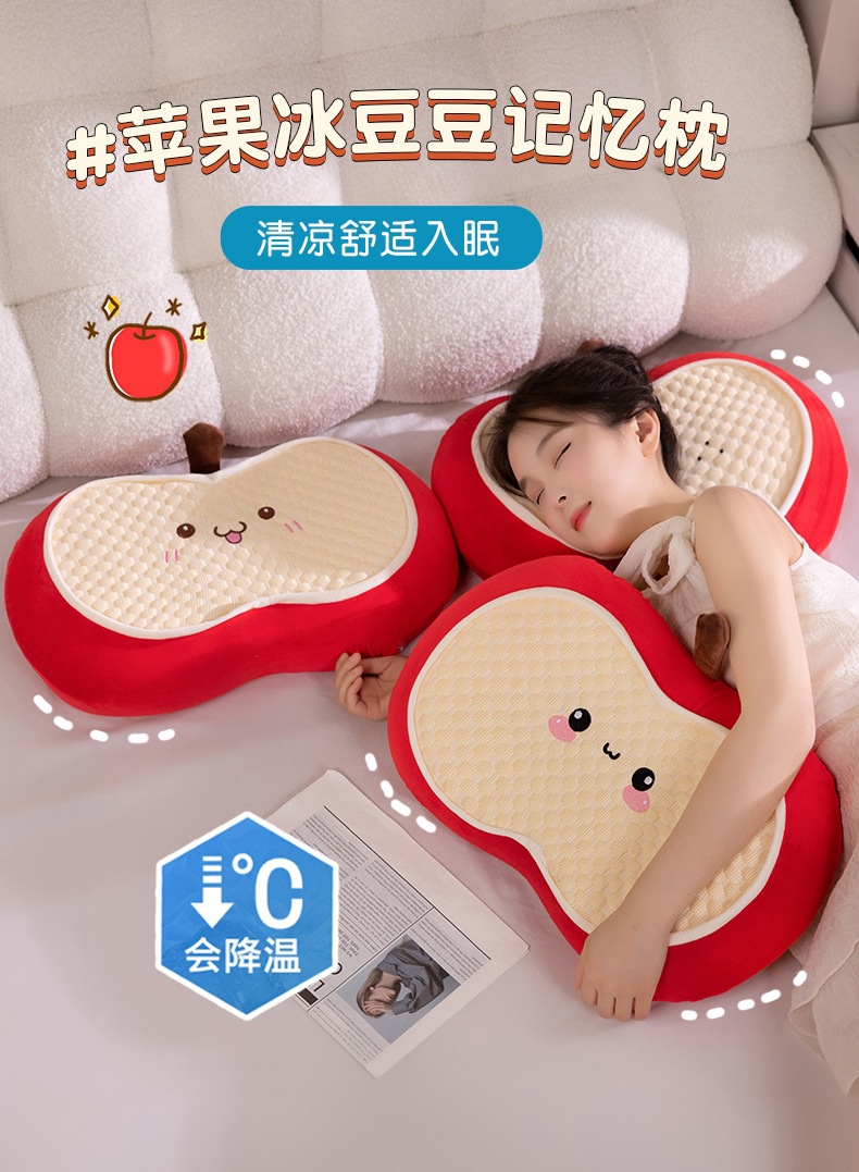 시원한 느낌 여름 사과 고양이 배꼽 얼음 실크 베개 자궁 경부 척추 보호는 소녀들이 편안한 메모리면 베개를 자도록 도와줍니다.스토어 가기