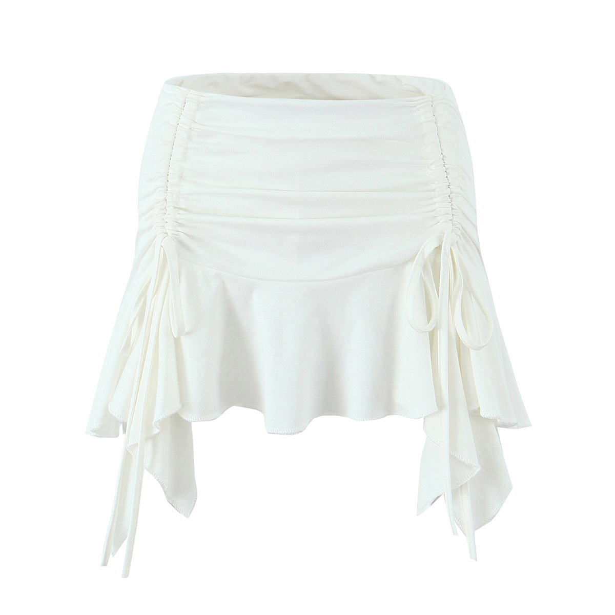 2025 봄 패션 여성 솔리드 컬러 드로스트링 플리츠 불규칙 밑단 미니 스커트 (내부 안에 안치어 스커트가 있음)