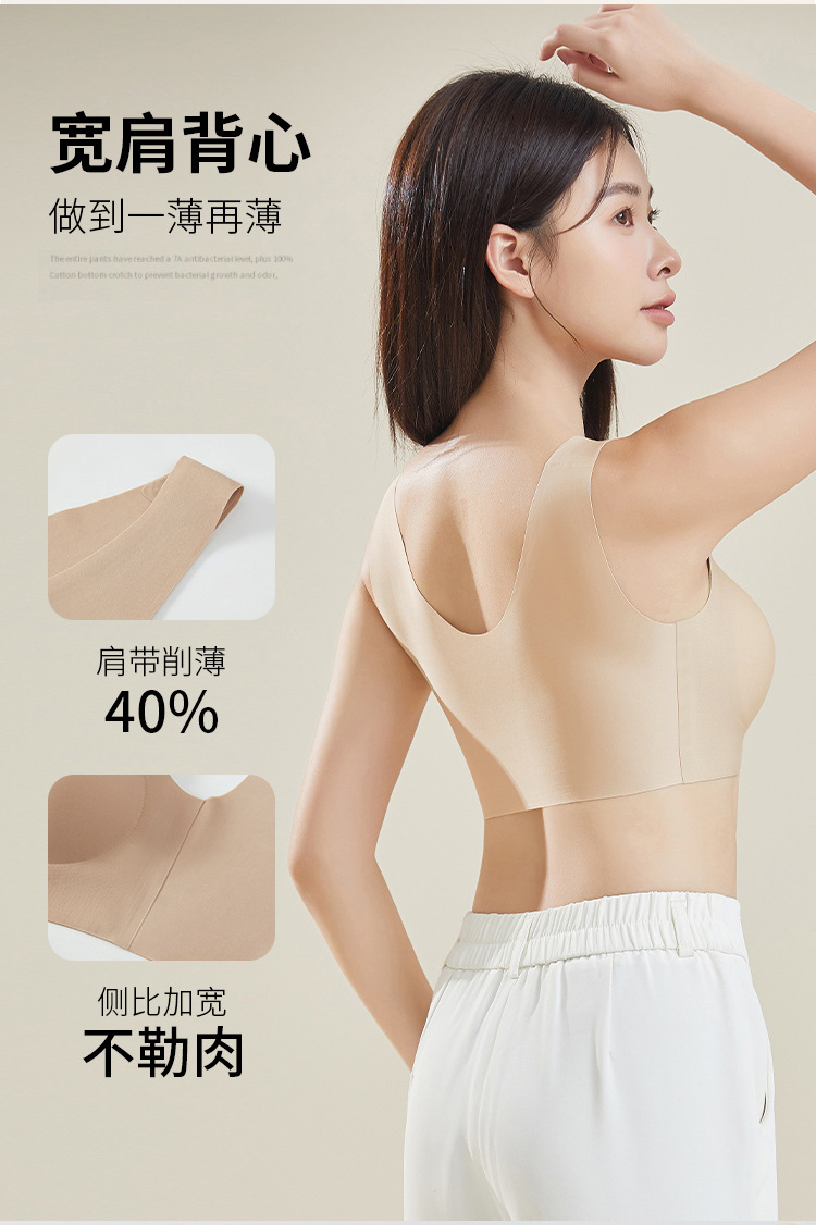 가슴이 작은 여성을 위한 하이엔드 고정컵 심리스 뷰티백 속옷, 푸쉬업 및 보조가슴 조절 조끼 스타일의 와이어 프리 스포츠 브라스토어 가기