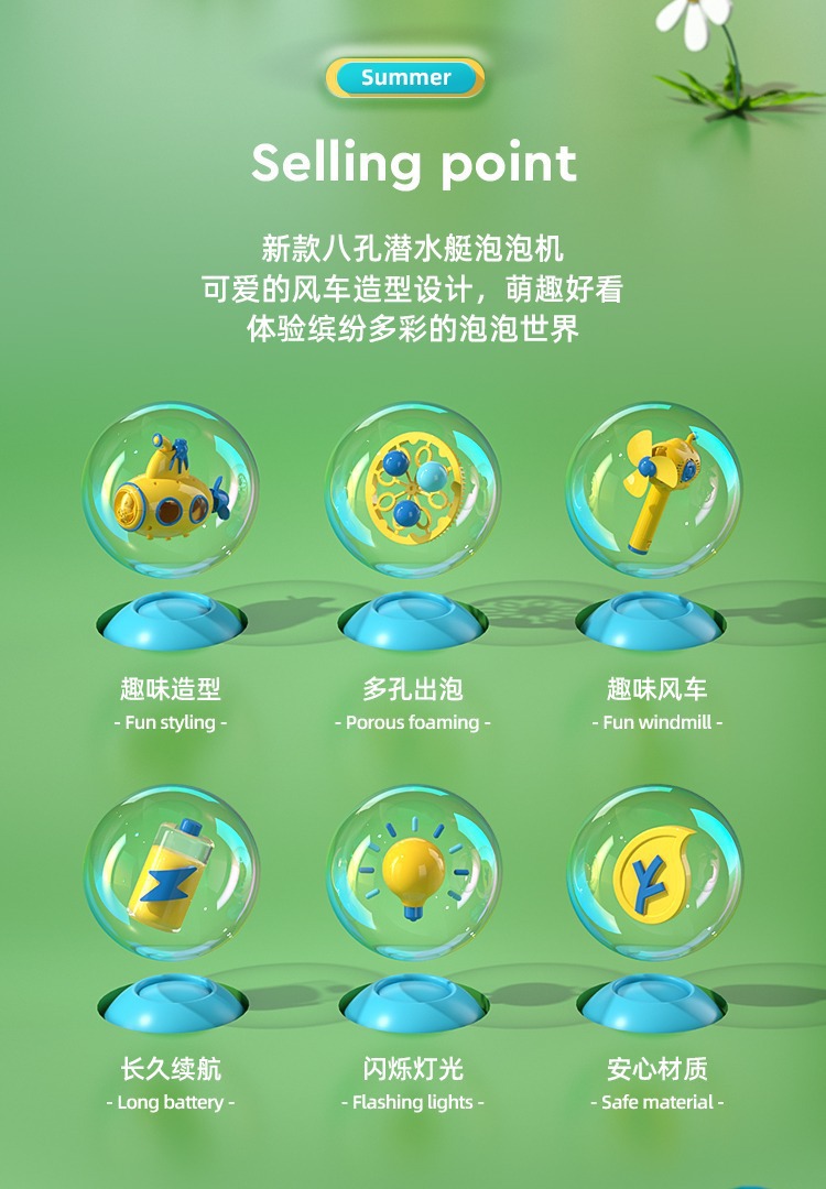 폭발 잠수함 풍차 거품 기계 자동 전기 핸드 헬드 부는 거품 어린이 장난감 스톨 도매스토어 가기
