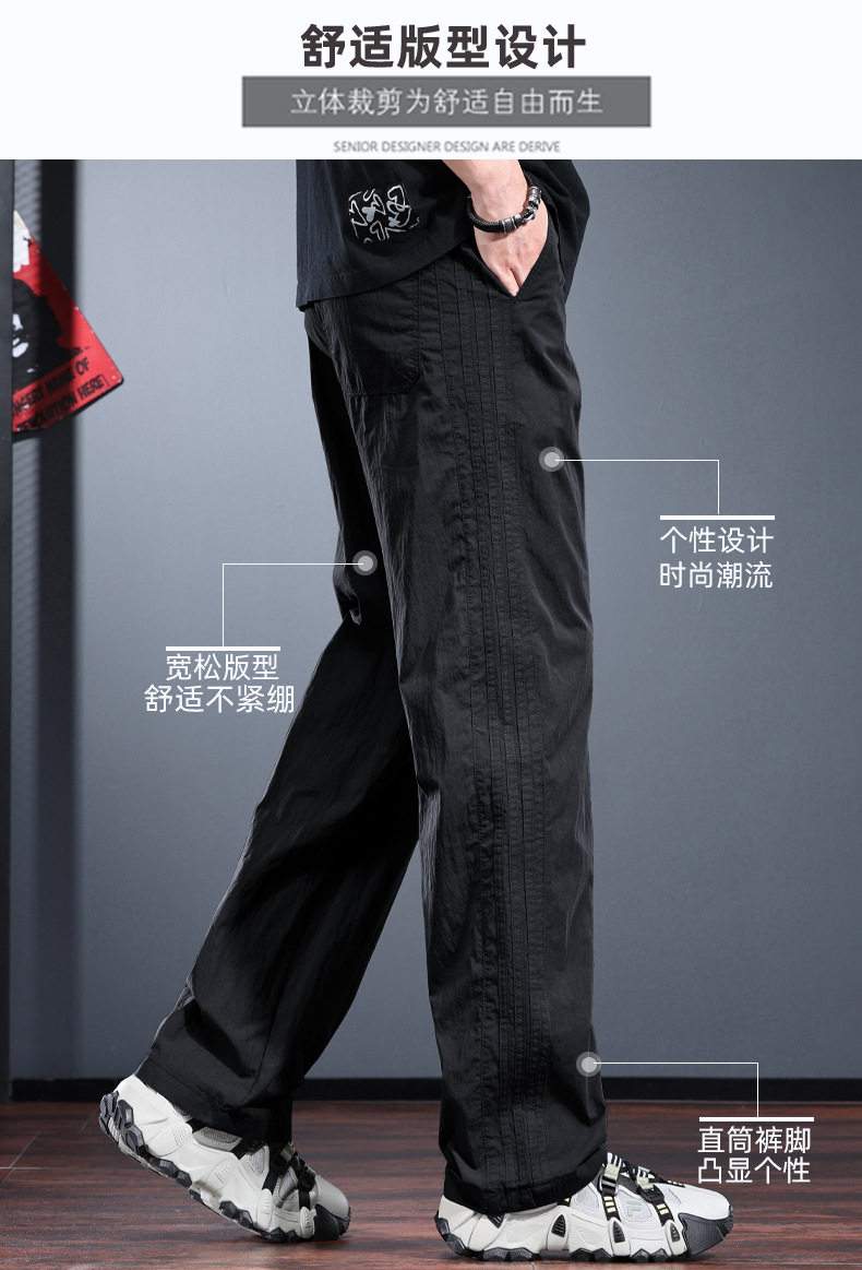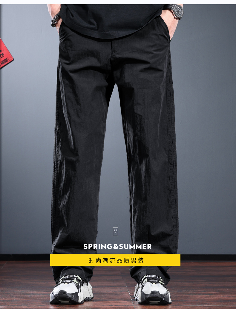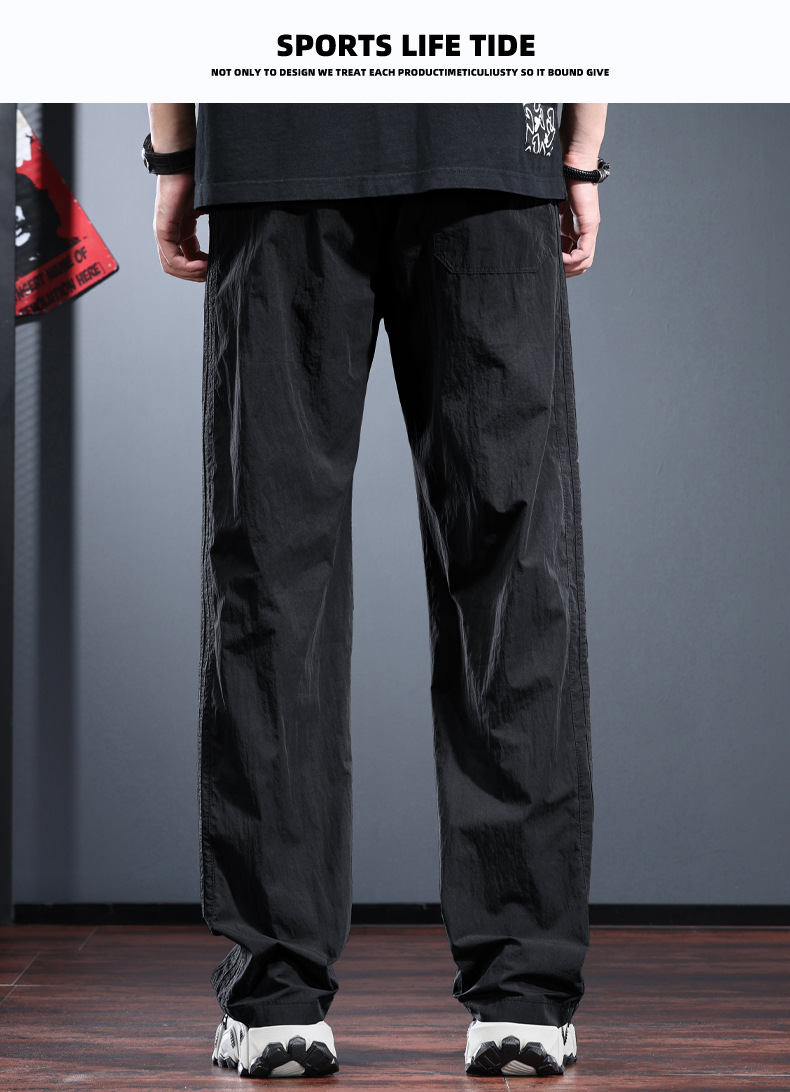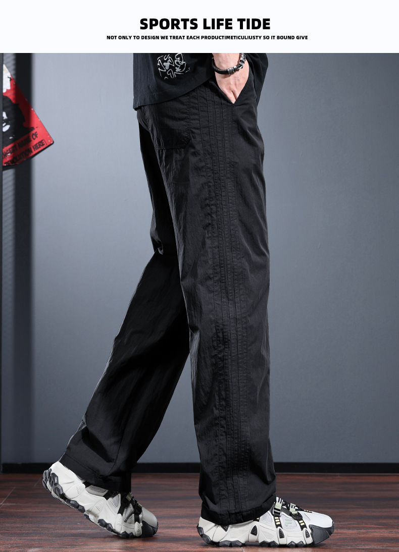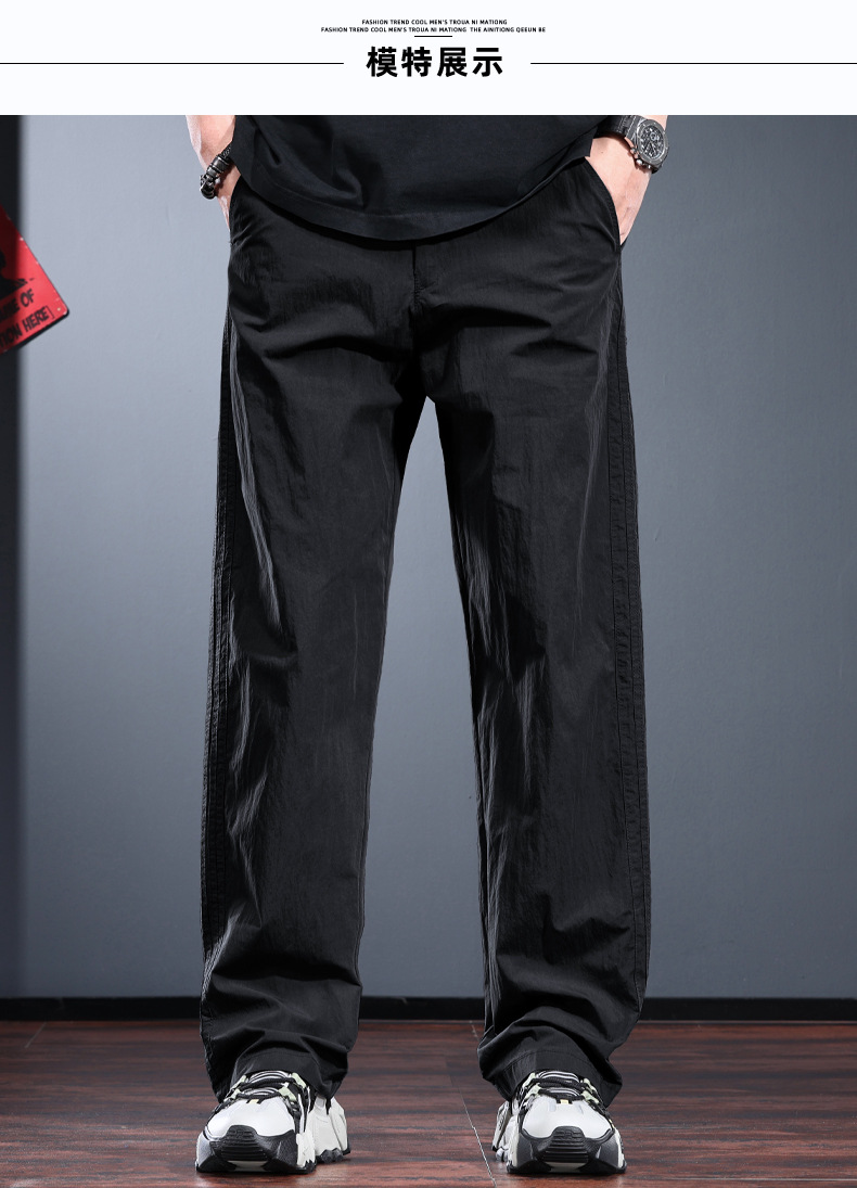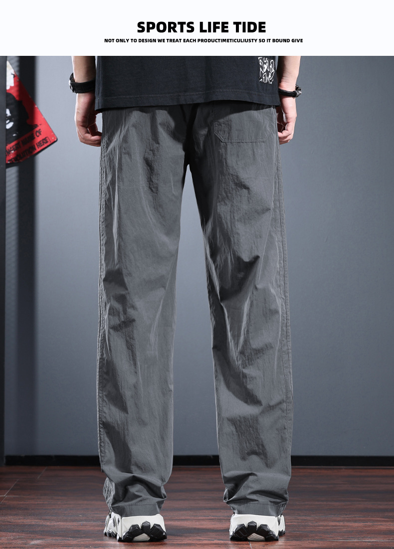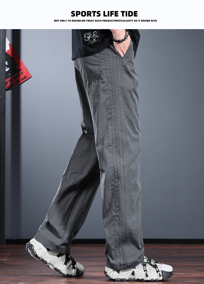 남성용 여름 캐주얼 팬츠, 루즈한 스트레이트 와이드 팬츠, 유럽과 미국의 심플한 하이엔드 아웃도어 등산 스포츠 속건성 얇은 바지