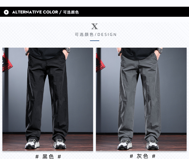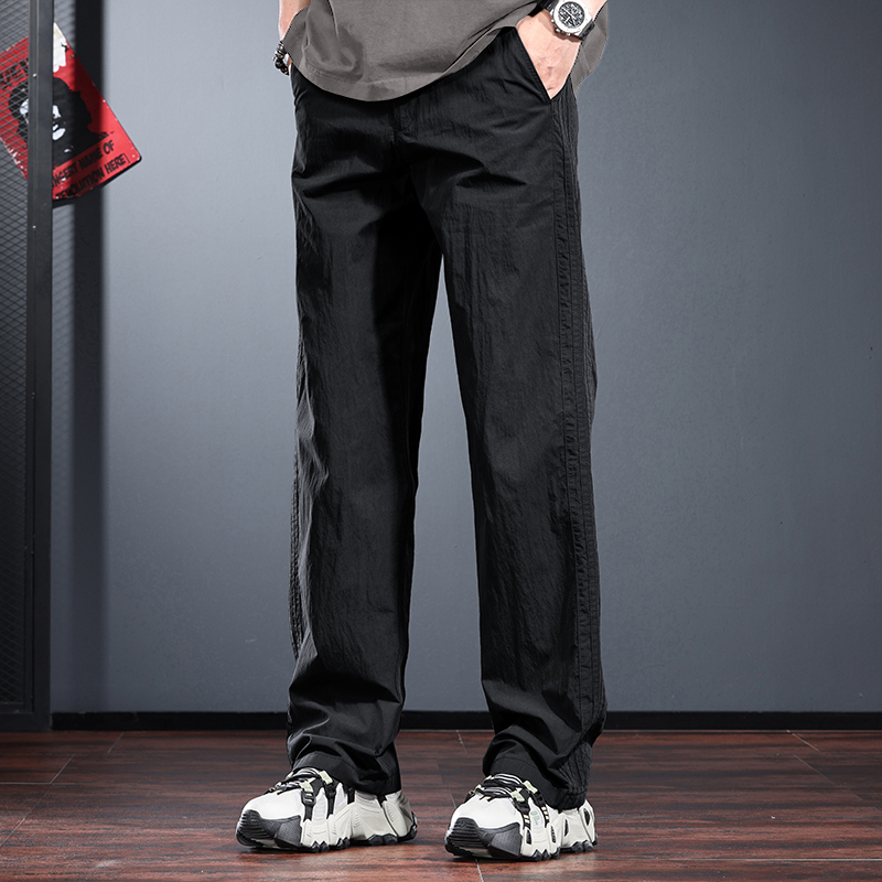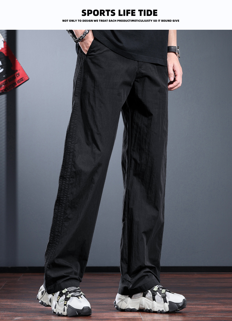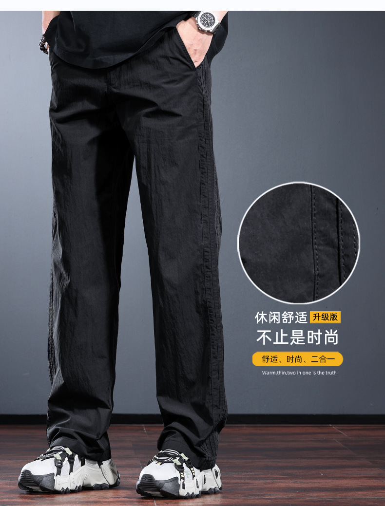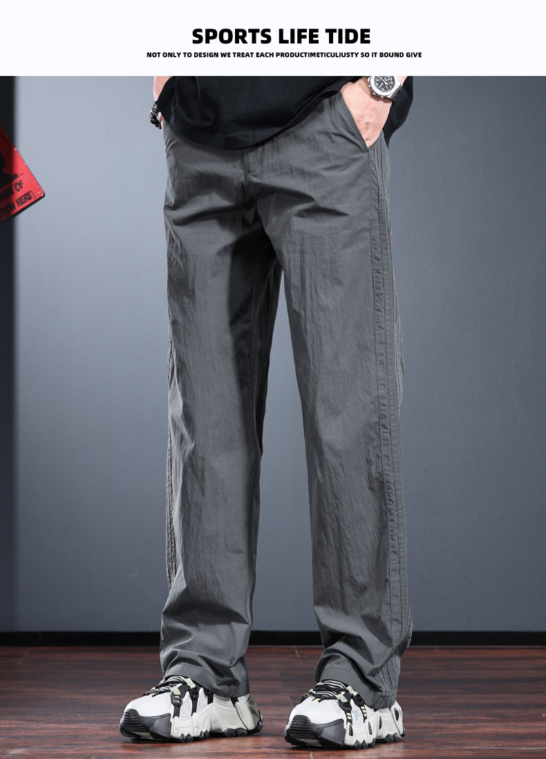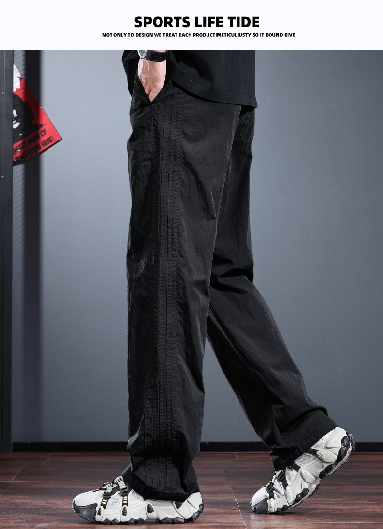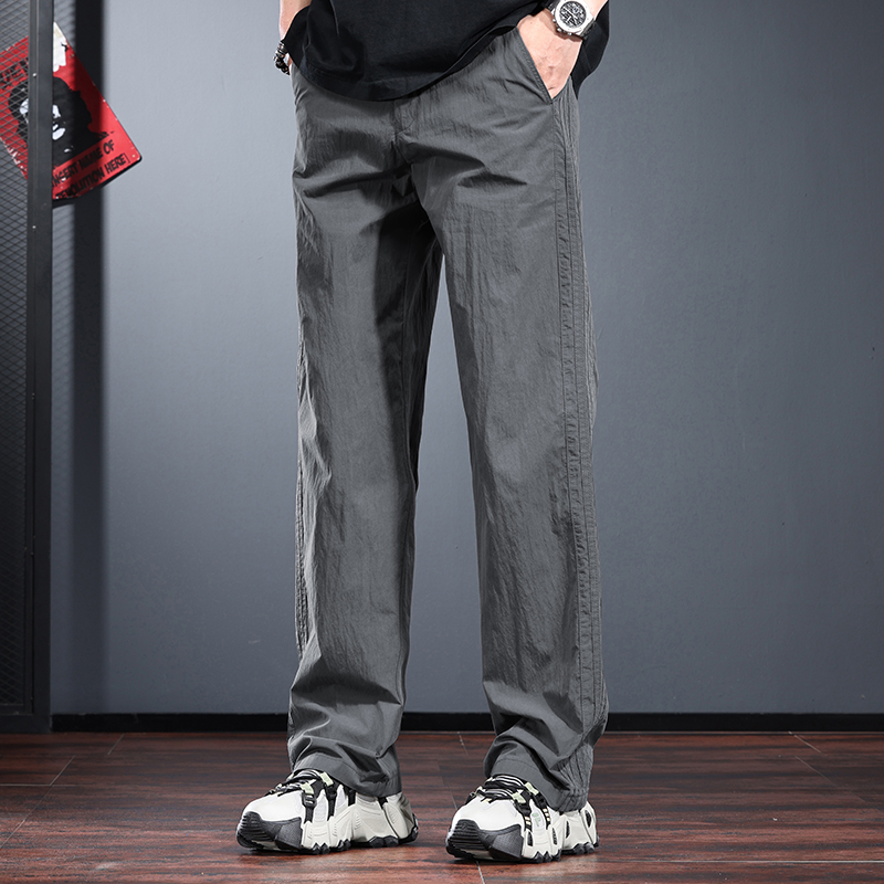 남성용 여름 캐주얼 팬츠, 루즈한 스트레이트 와이드 팬츠, 유럽과 미국의 심플한 하이엔드 아웃도어 등산 스포츠 속건성 얇은 바지