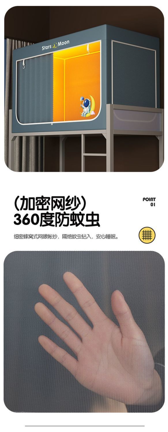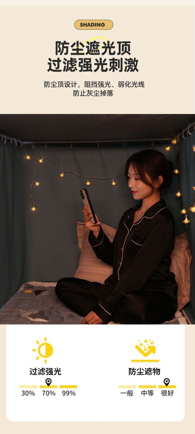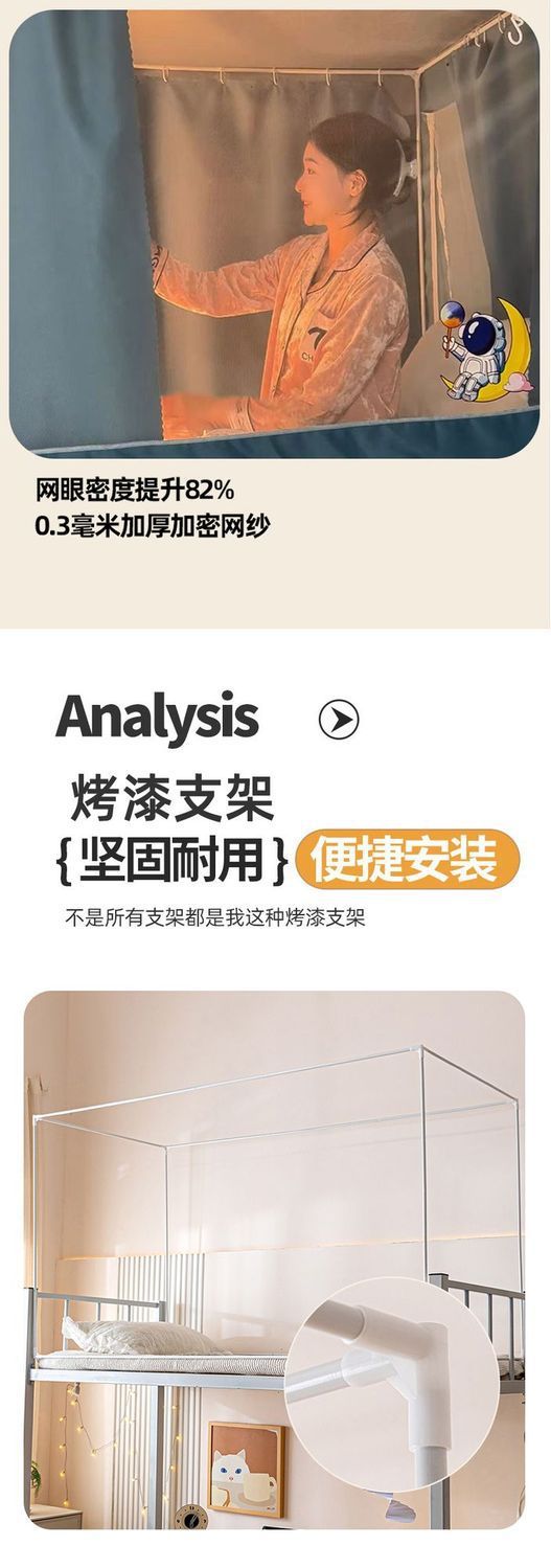 차광 침대 커튼과 모기장이 통합된 대학 기숙사 싱글 이층 침대 범용 완전 밀폐형 침대 커튼(스탠드 포함)스토어 가기