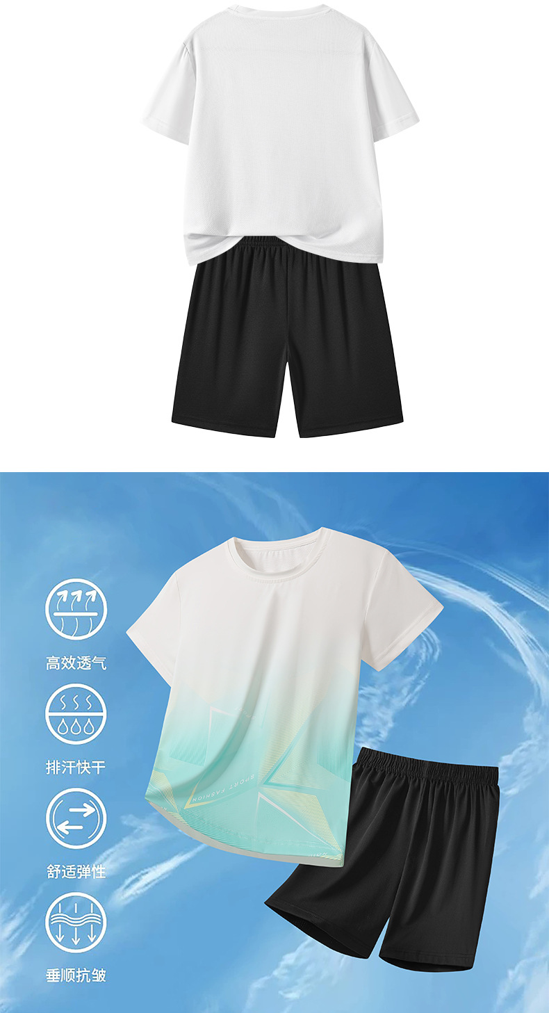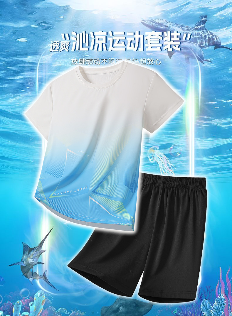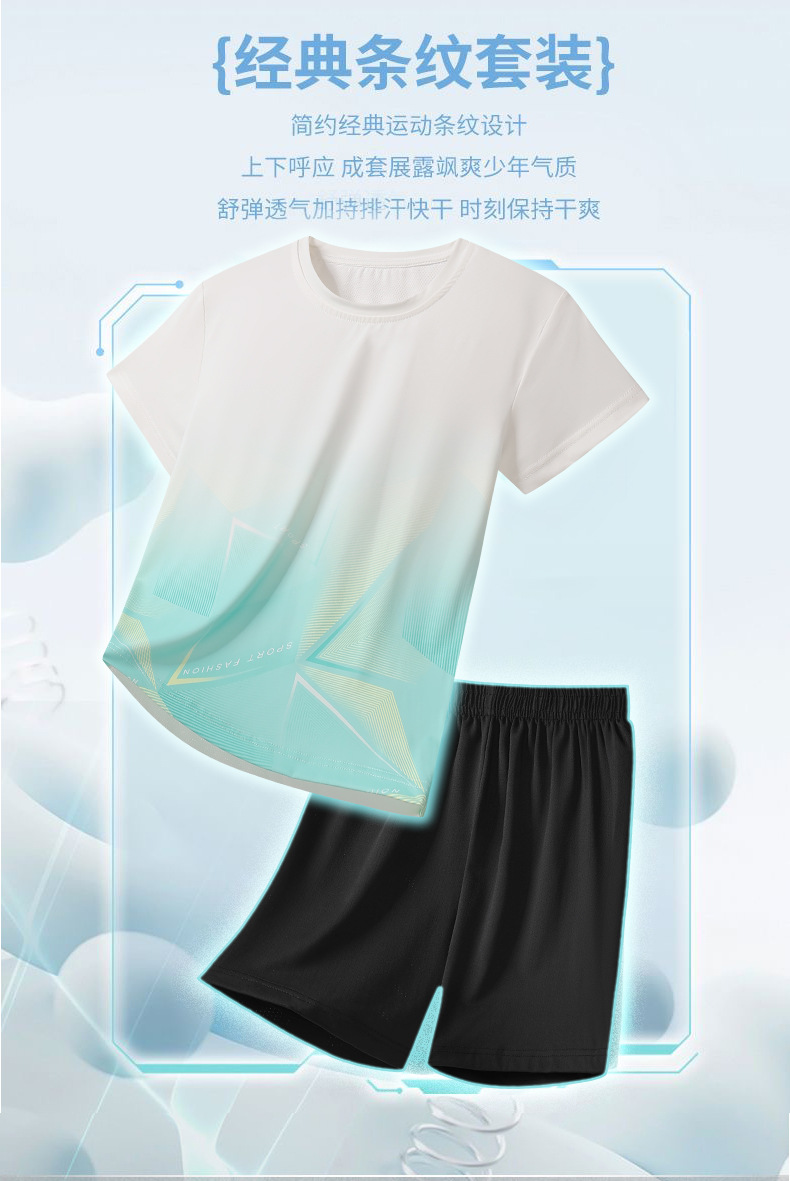 아동용 아이스 실크 속건성 반팔 반바지 운동복 정장 여성 여름 통기성 캐주얼 러닝웨어 투피스 세트 크로스보더
