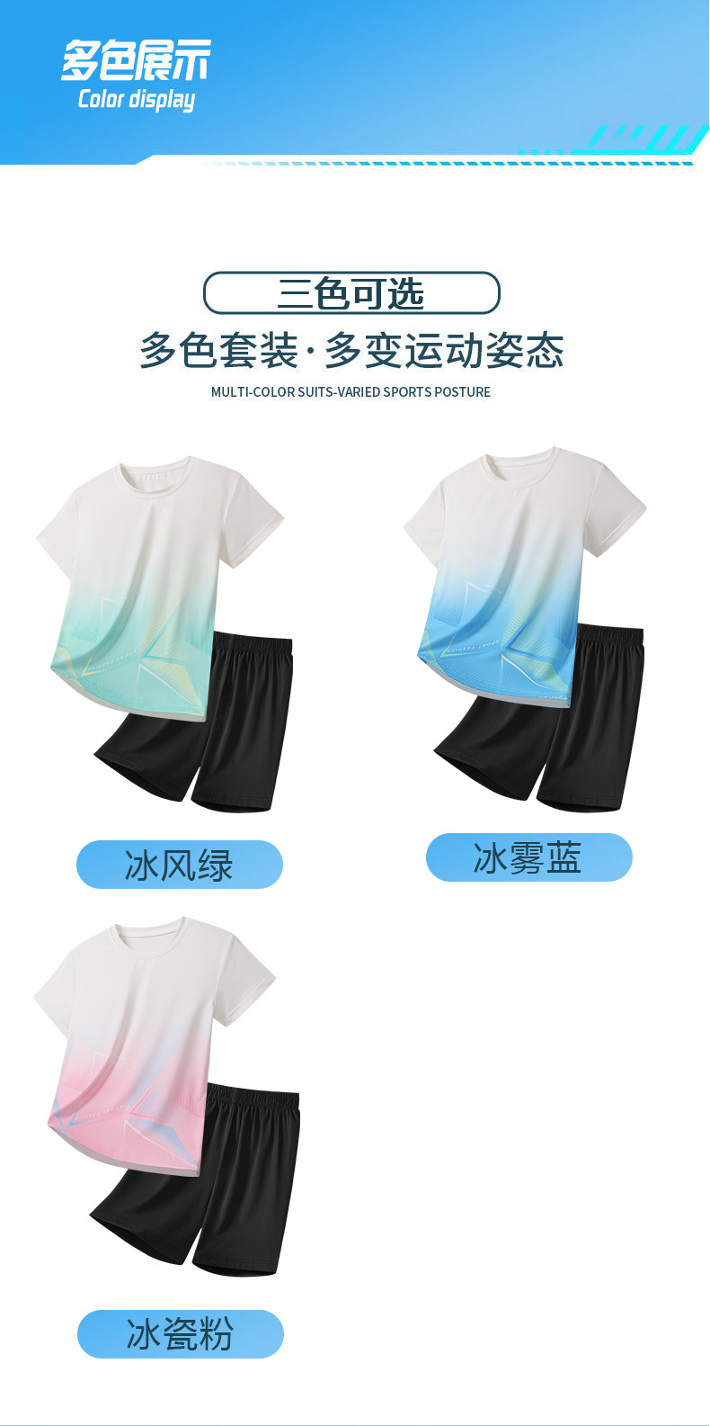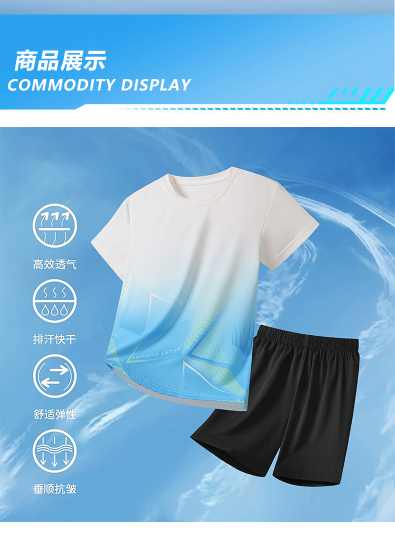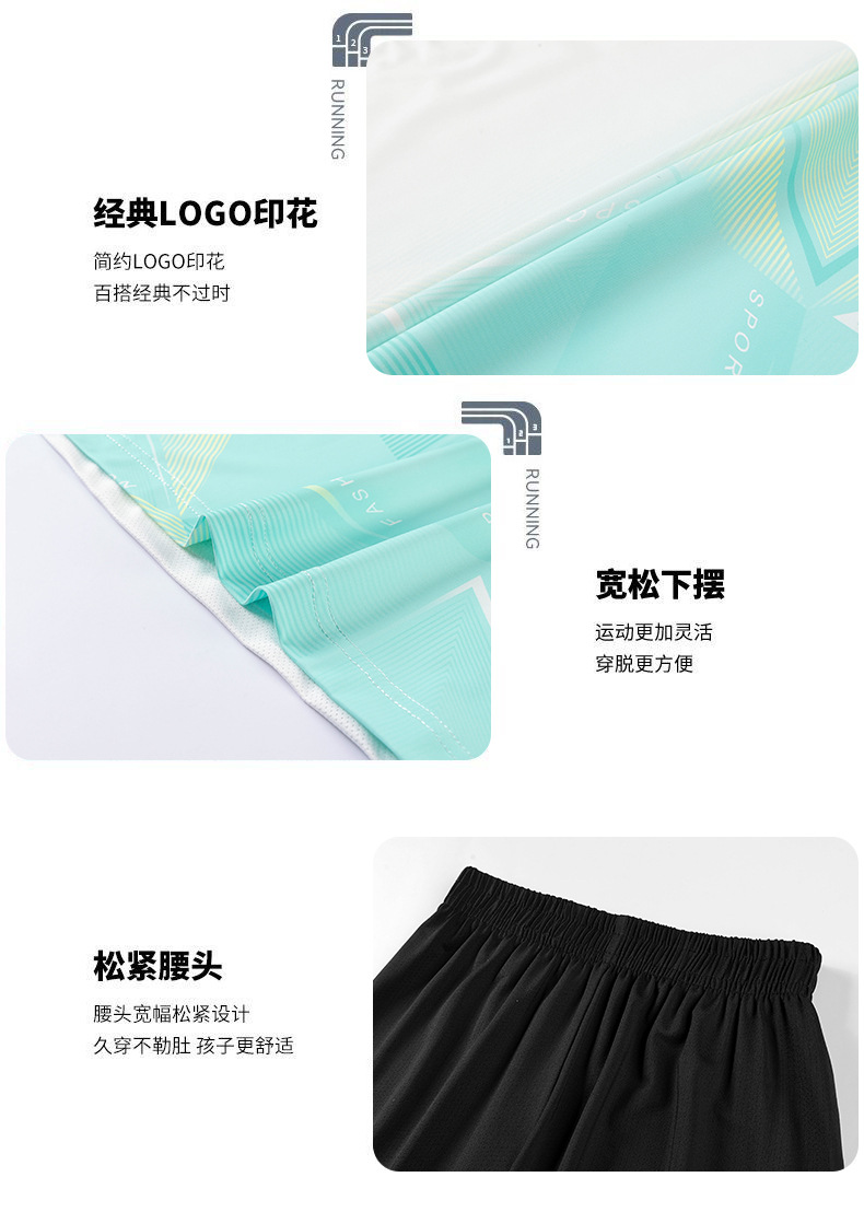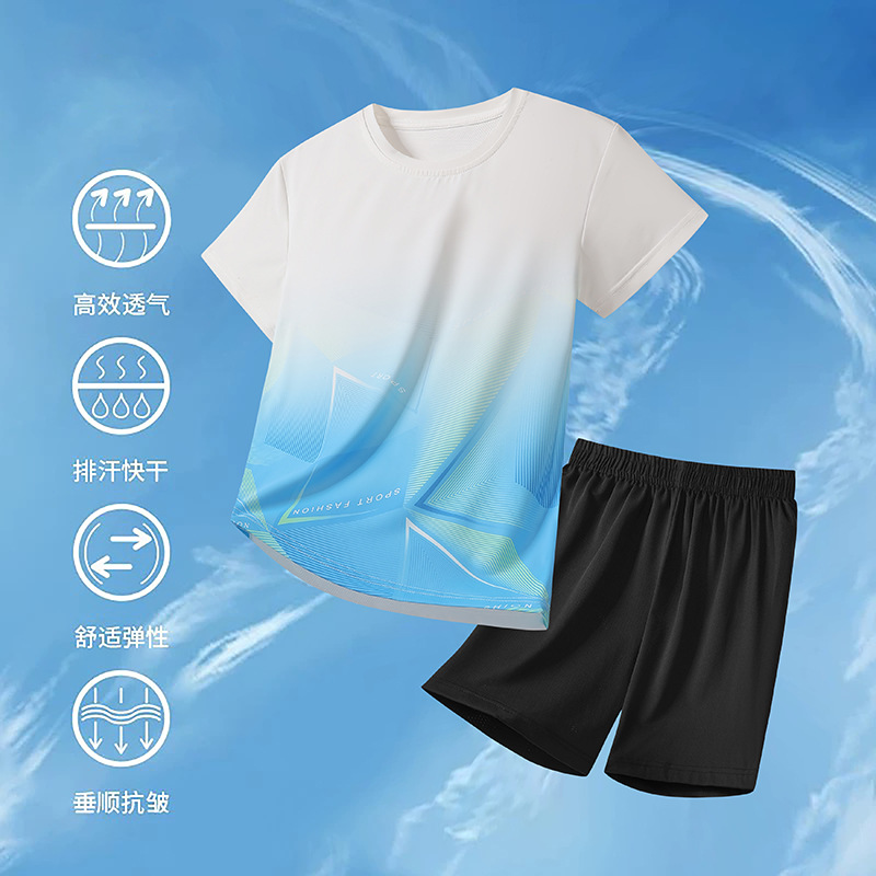 아동용 아이스 실크 속건성 반팔 반바지 운동복 정장 여성 여름 통기성 캐주얼 러닝웨어 투피스 세트 크로스보더