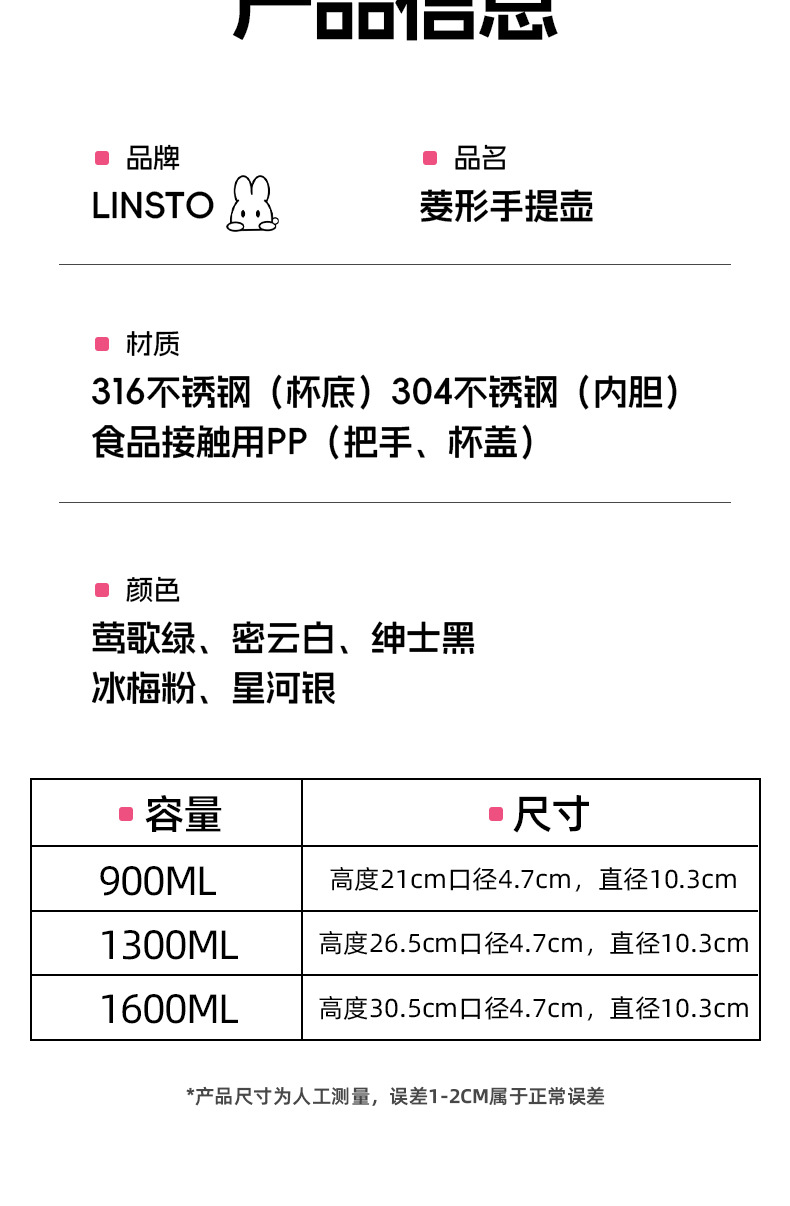고급스러운 316 스테인리스 보온병 대용량 가정용 휴대용 물병 야외용 휴대용 컵 여행용 물통