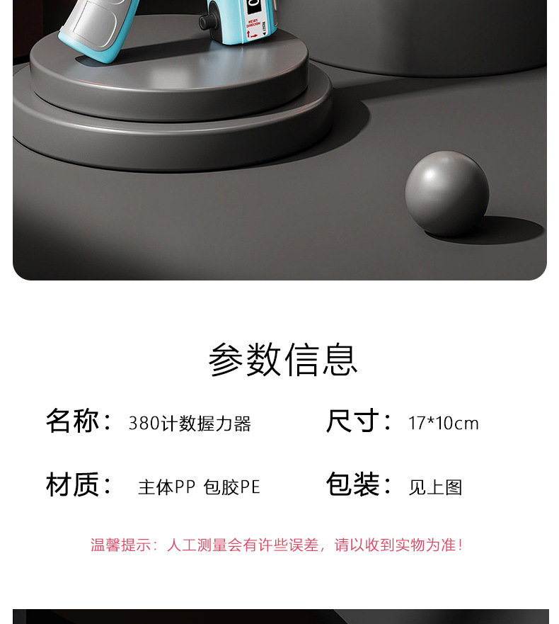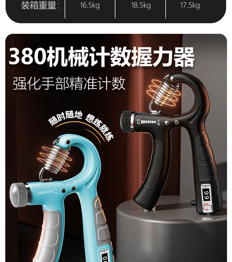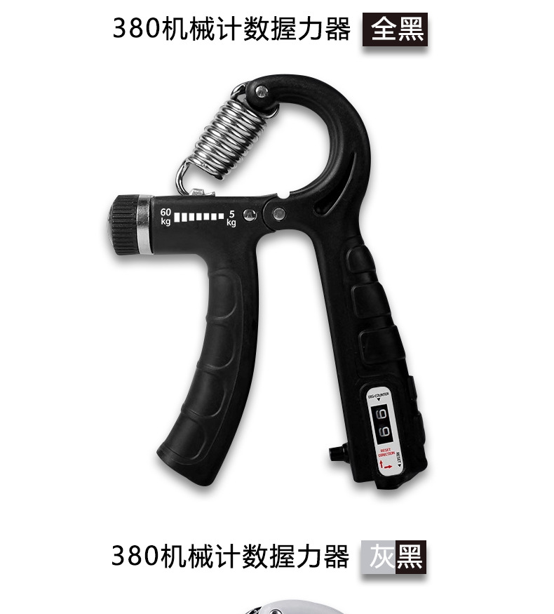 • 380 기계식 카운팅 스트렝스 그립 - 올 블랙