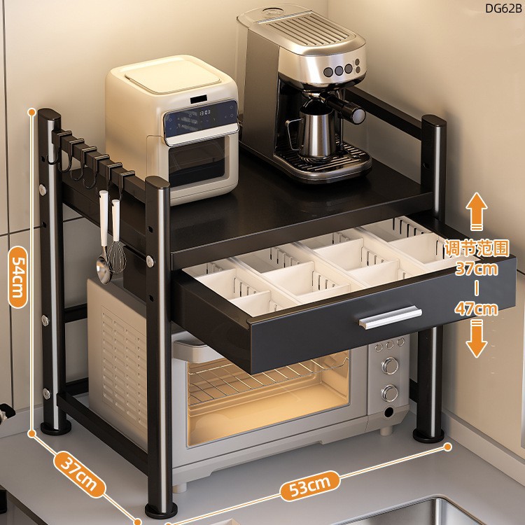 • DG62B - 서랍형 전자레인지 선반 + 6구 걸이 + 칼꽂이 + 수저통 + 스푼 보관함 + 도마 거치대 + 수납함 4개 - 무광 블랙