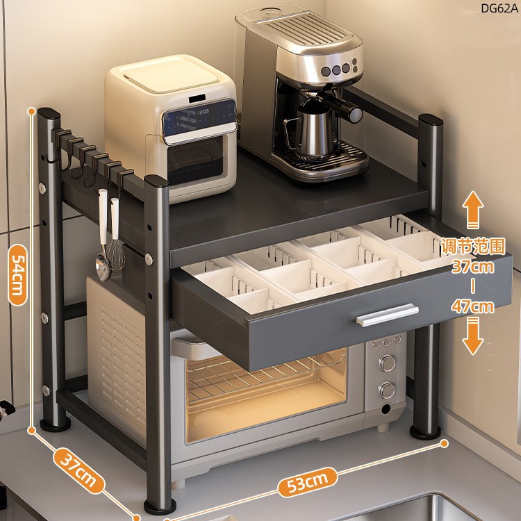 • DG62A - 서랍형 전자레인지 선반 + 6구 걸이 + 칼꽂이 + 수저통 + 스푼 보관함 + 도마 거치대 + 수납함 4개 - 건메탈
