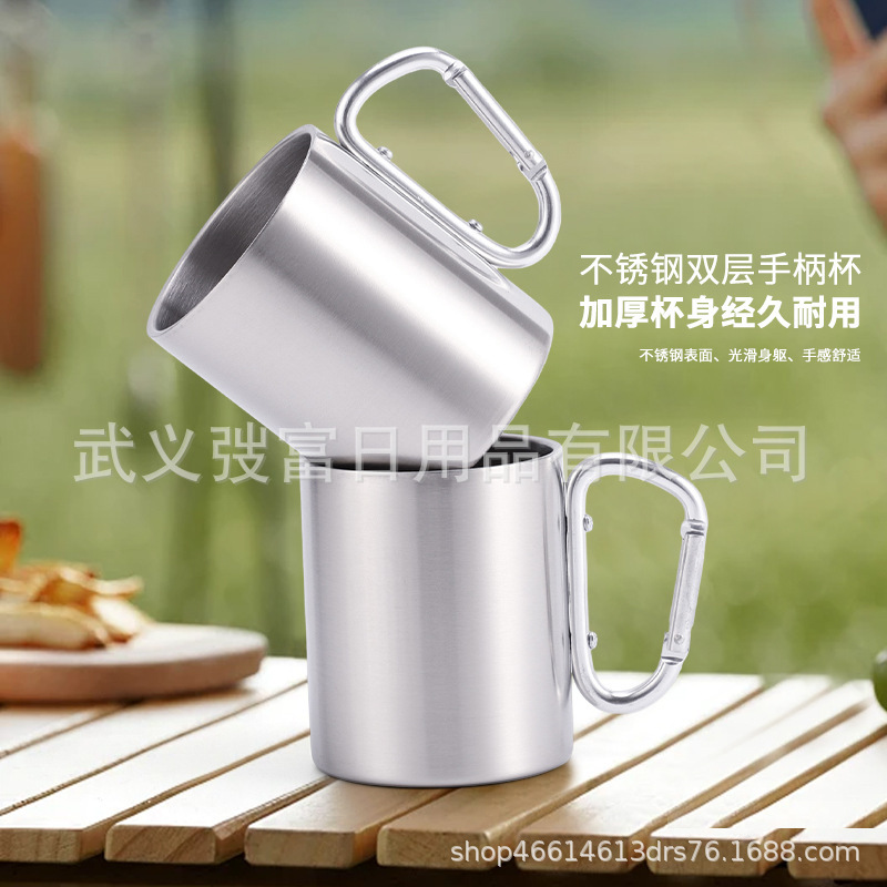 국경 간 아마존 스테인레스 스틸 더블 레이어 워터 컵 등산 컵 휴대용 야외 스포츠 컵 캠핑 휴대용 컵 머그잔