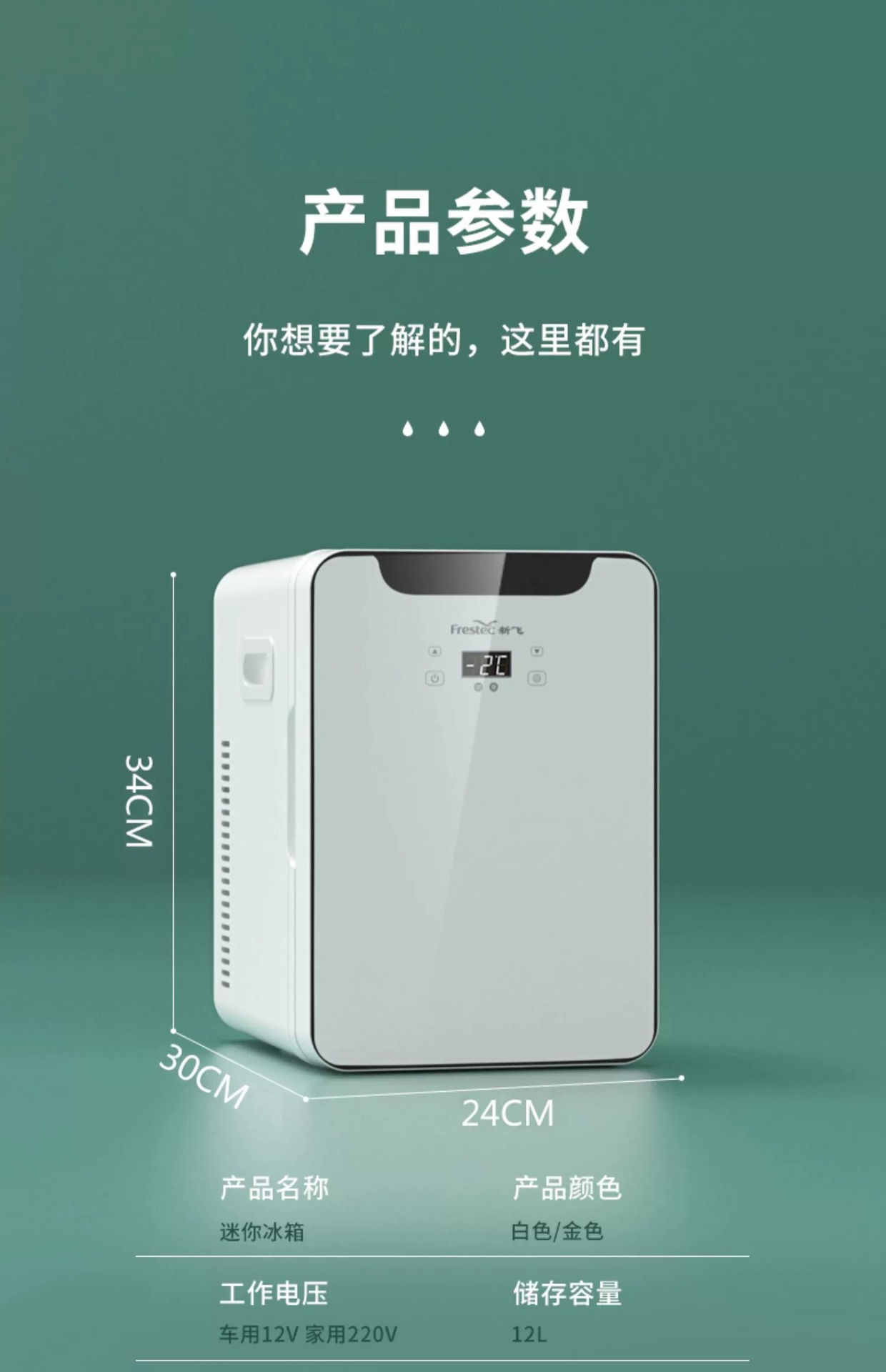 • 20L Haoyue White [듀얼 코어 블랙 기술 강력한 냉동 + 디지털 디스플레이 온도 조절 + 대용량 권장 - 강화 유리]