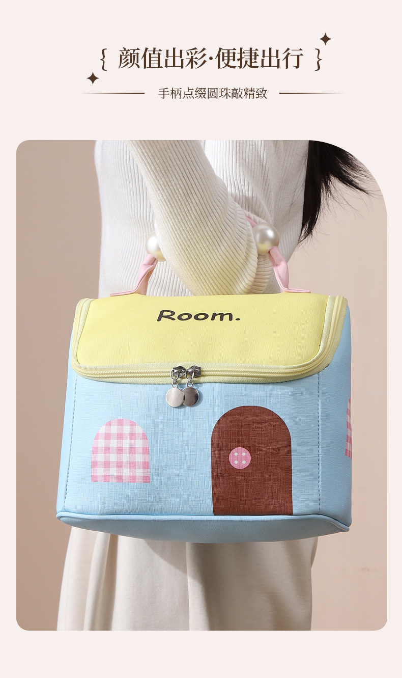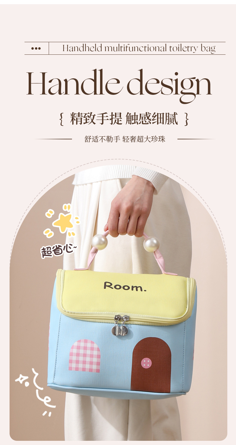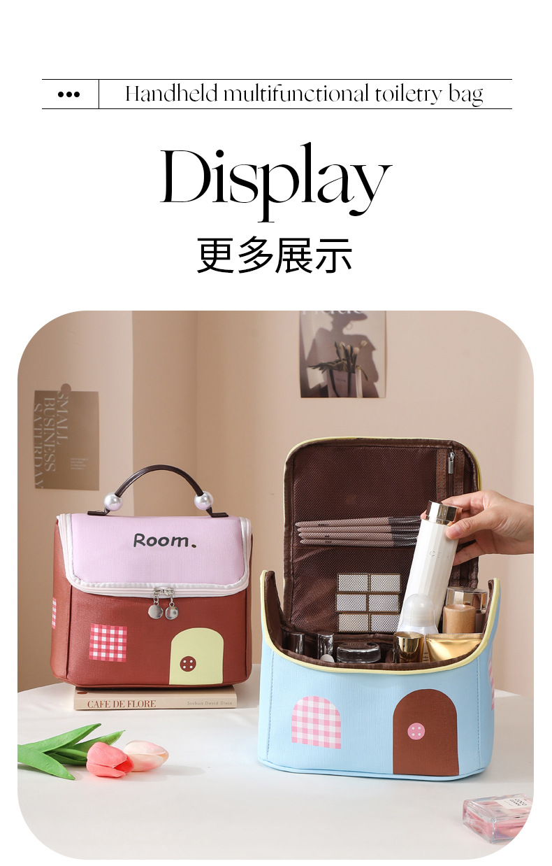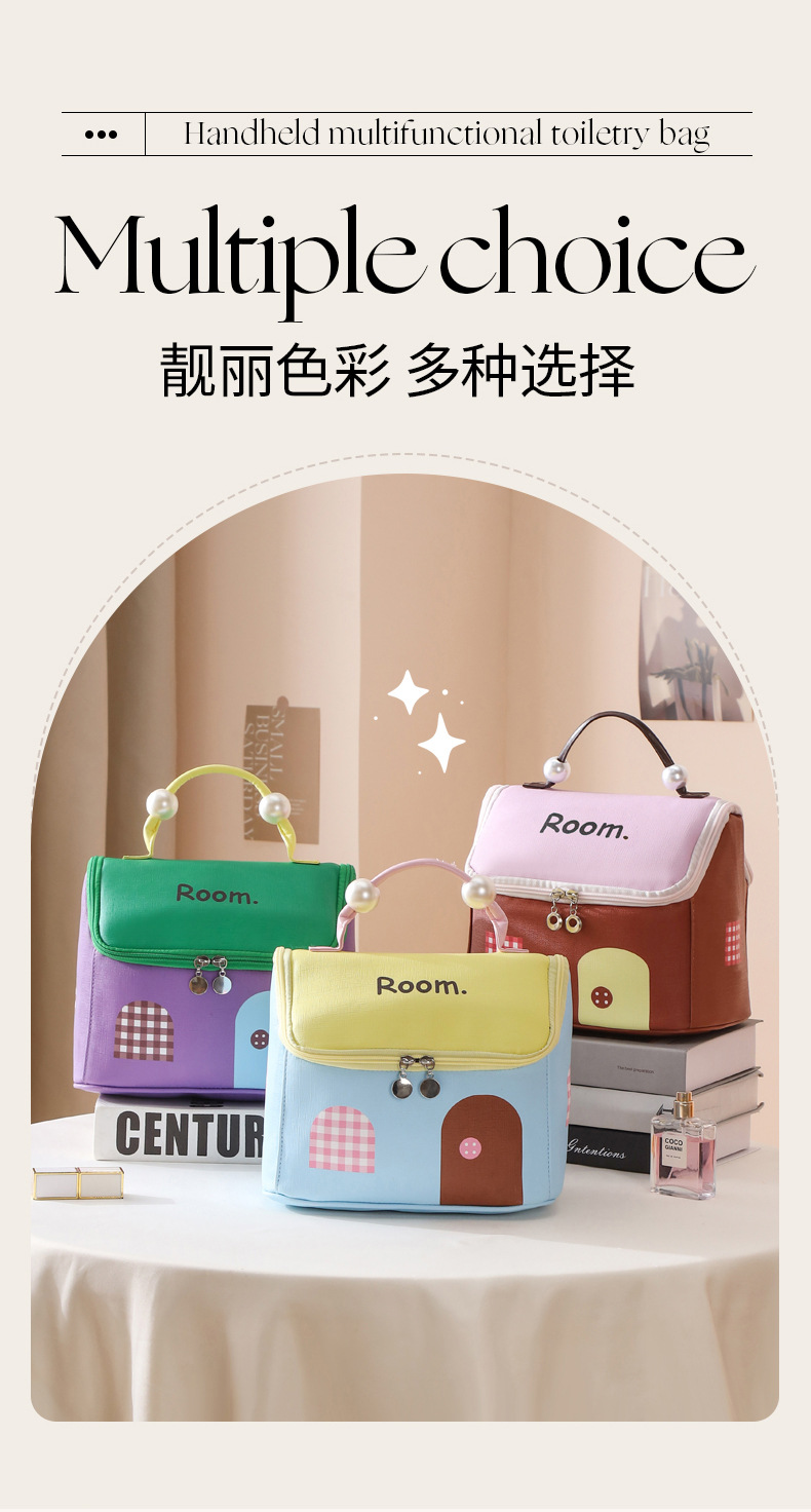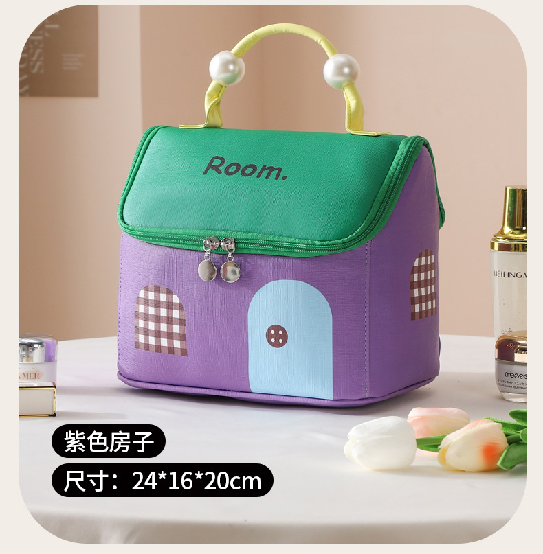 하우스 화장품 가방, 여행용 가죽 수납 가방, PU 방수 파티션 세면 용품 가방, 귀여운 진주 캐빈 수납 가방스토어 가기