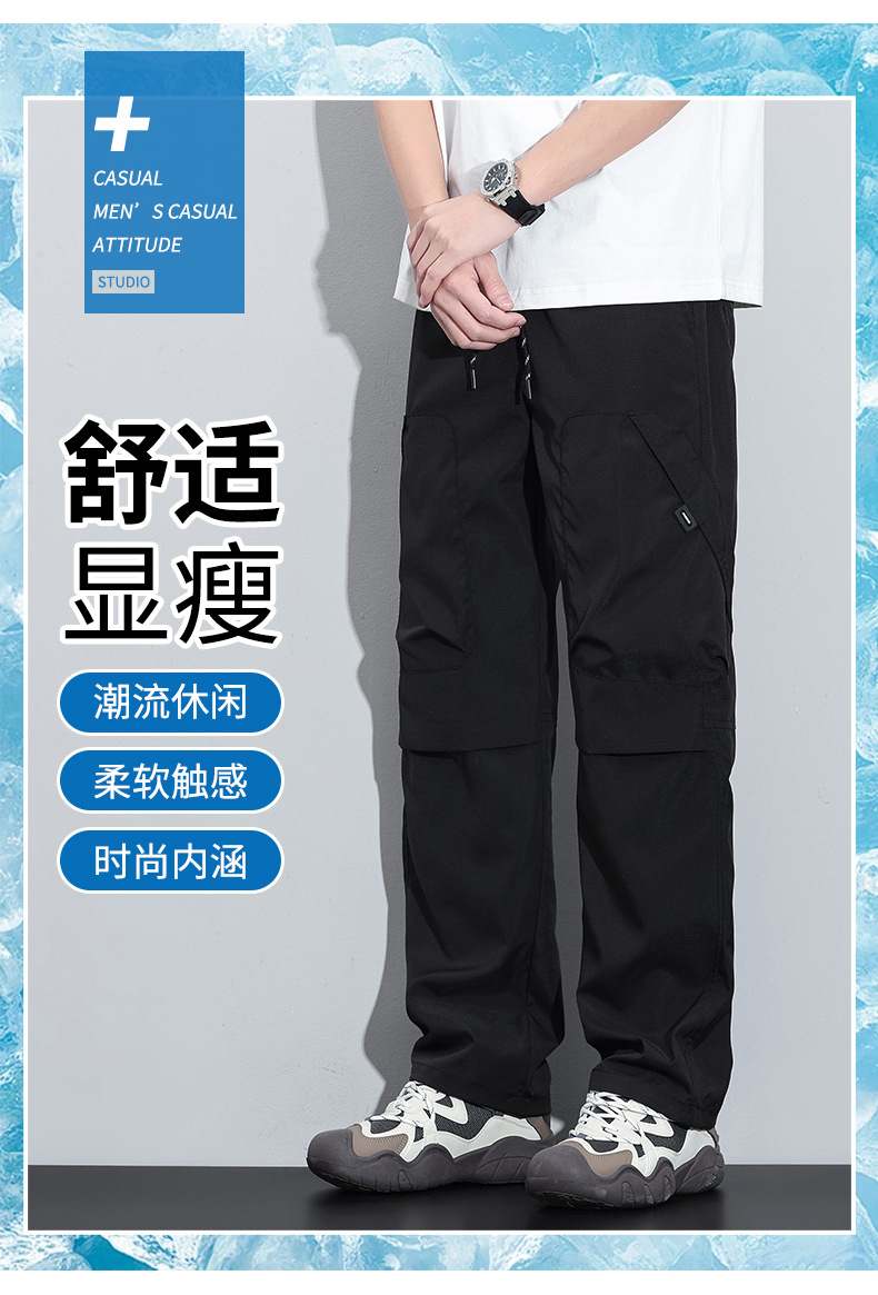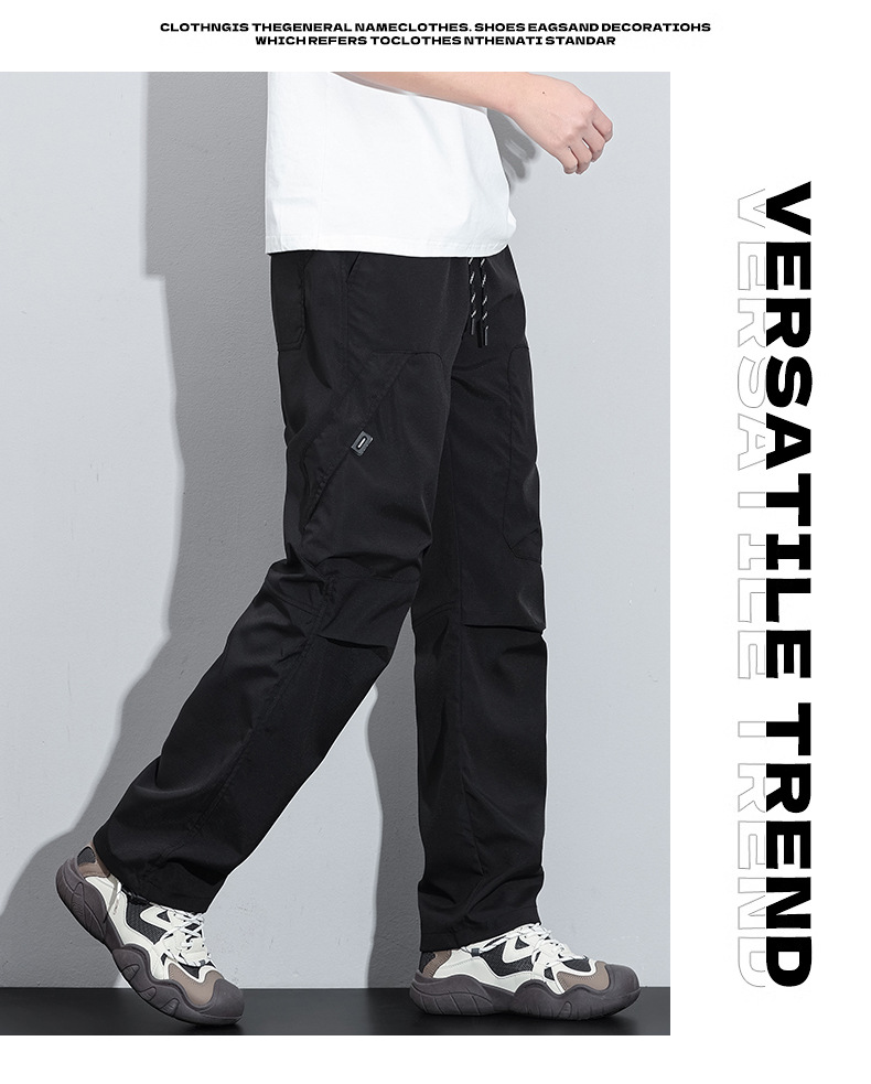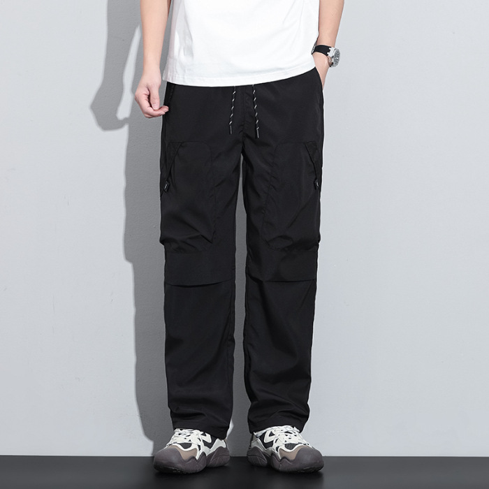남성용 봄 여름 작업복, 청소년 여름 루즈 스트레이트 캐주얼 롱 팬츠, 남성용 아웃도어 팬츠 블랙