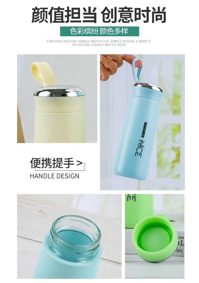 패션 네스 컵 좋은 높은 가치 광고 휴대용 선물 컵을 밀고 배수하는 더블 레이어 유리 플라스틱 유리 컵