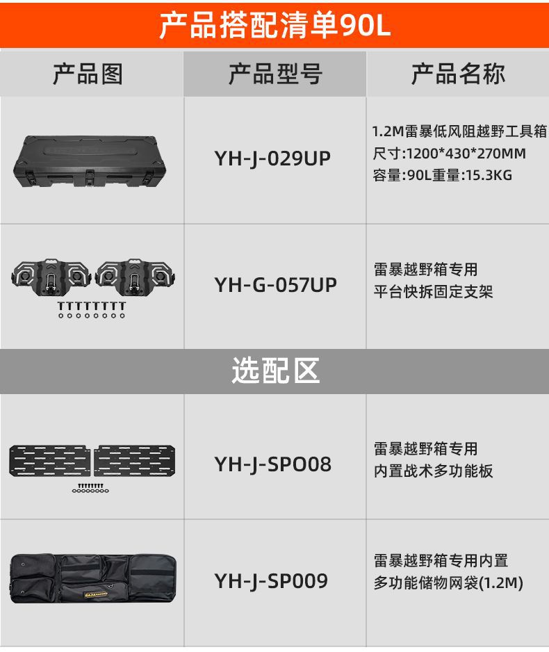 • 90L 장비 상자 1개 + 퀵 릴리스 베이스 1세트 + 확장 보드 1세트