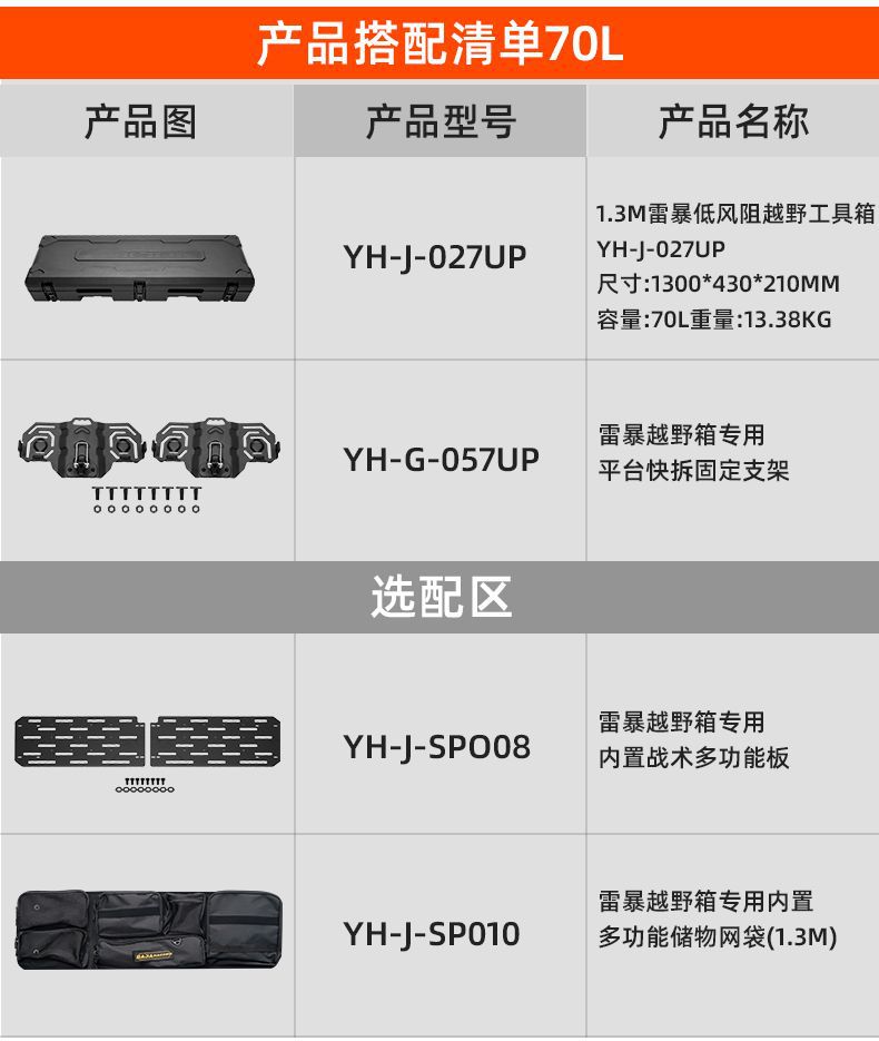 • 70L 장비 상자 1개 + 퀵 릴리스 베이스 1세트 + 확장 보드 1세트