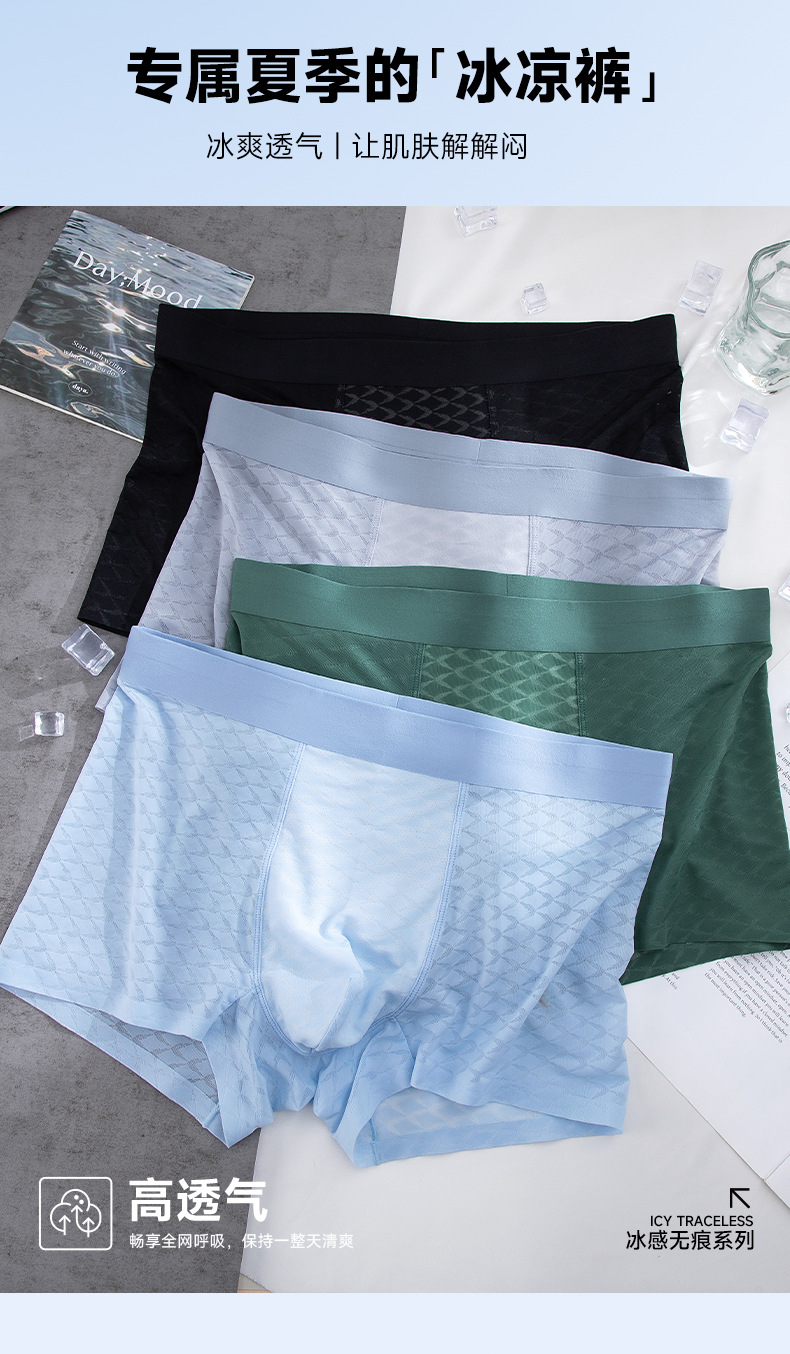 아이스 실크 남성 속옷 여름 초박형 0.01 벌거 벗은 아이스 실크 비 추적 박테리아 박서 통기성 쿨 반바지스토어 가기