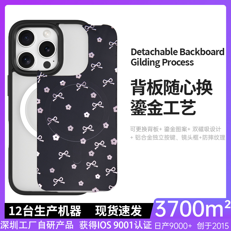 사진으로 맞춤 제작 가능한 애플 16ProMax 휴대폰 케이스, 교체 가능한 후면판, 15자리 자석 보호 케이스, 금박 공예