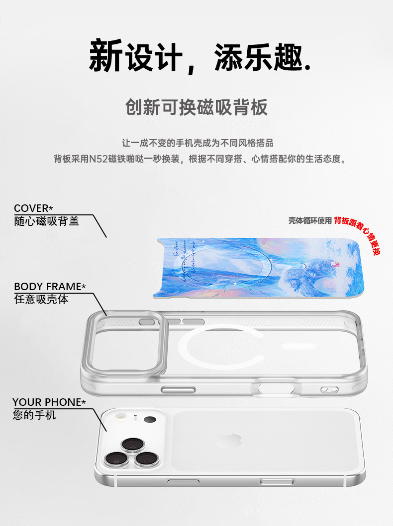 사진으로 맞춤 제작 가능한 애플 16ProMax 휴대폰 케이스, 교체 가능한 후면판, 15자리 자석 보호 케이스, 금박 공예스토어 가기