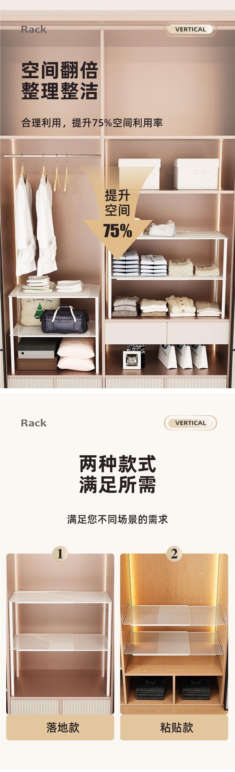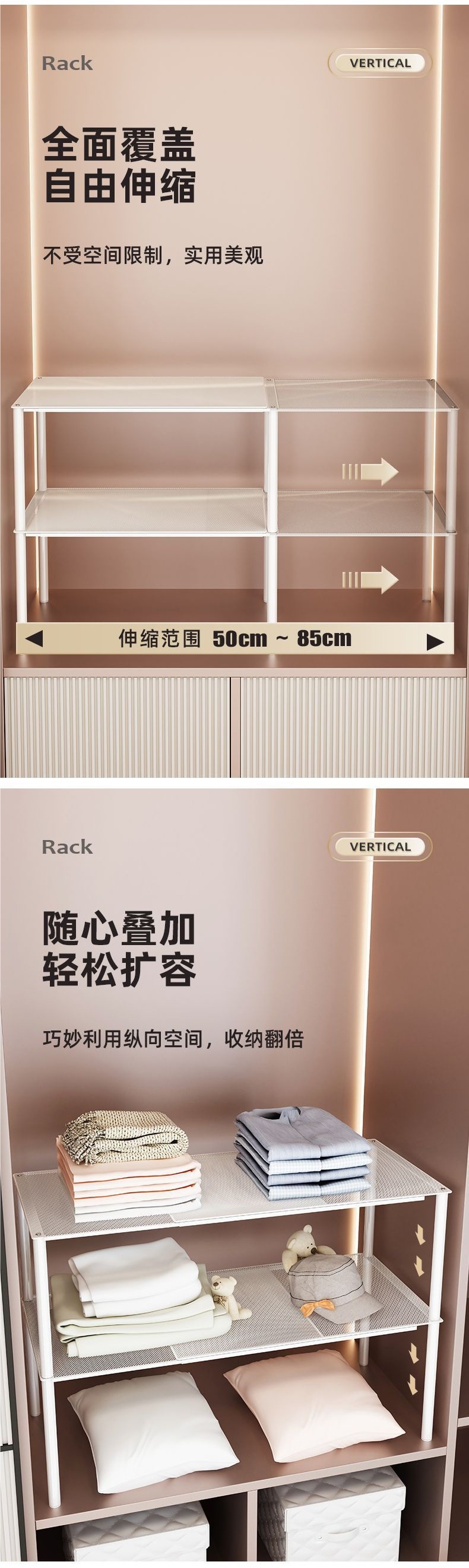 신축형 옷장 수납 칸막이, 옷장 슬라이드형 수납 선반, 칸막이, 분리형 칸막이, 옷 정리용 선반