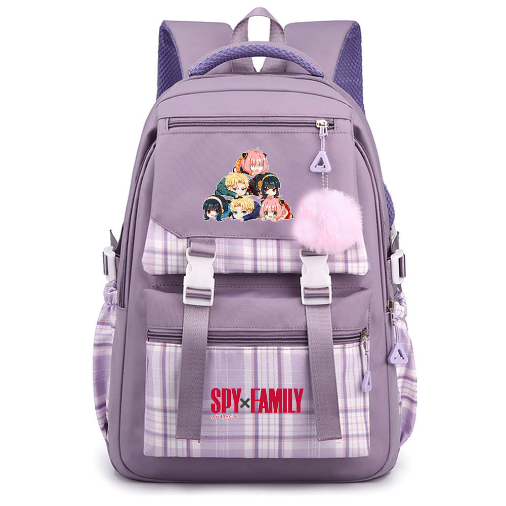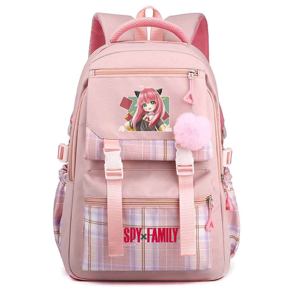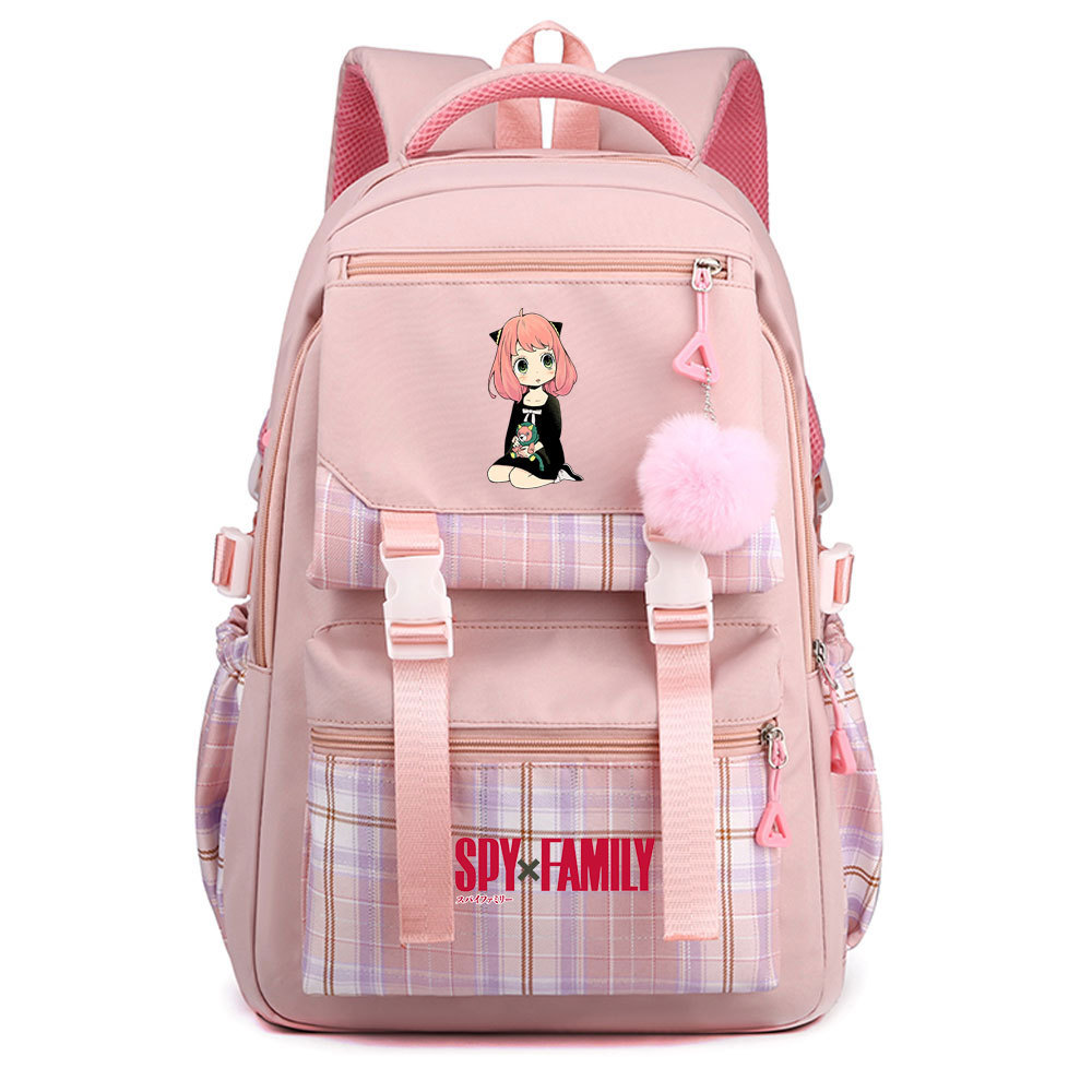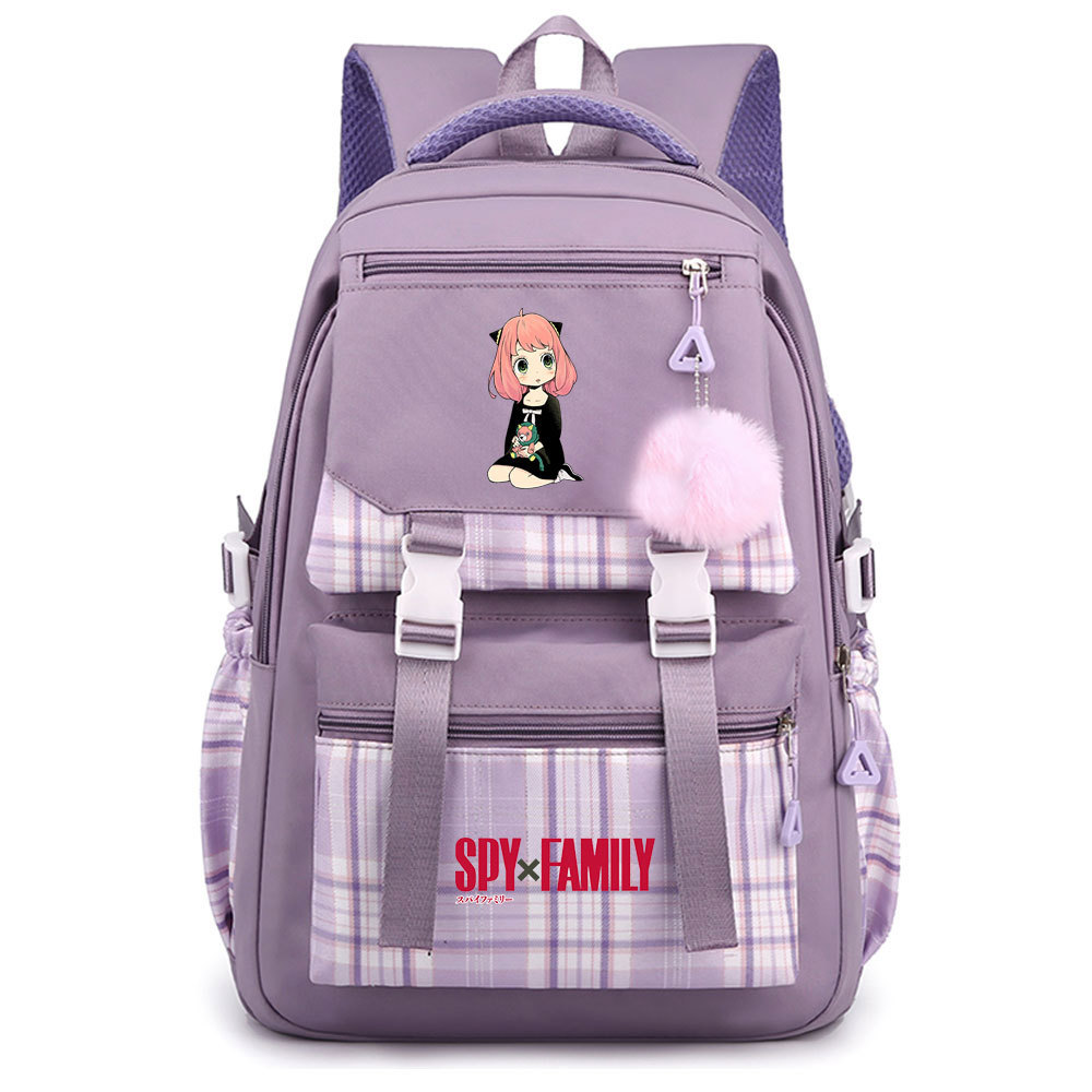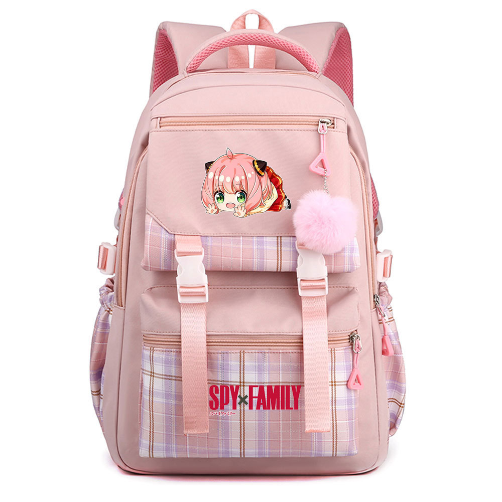 03 인쇄 일본 만화 만화 청소년 초등 및 중등 학교 가방 격자 무늬 모피 공 여성 캐주얼 경량 배낭스토어 가기