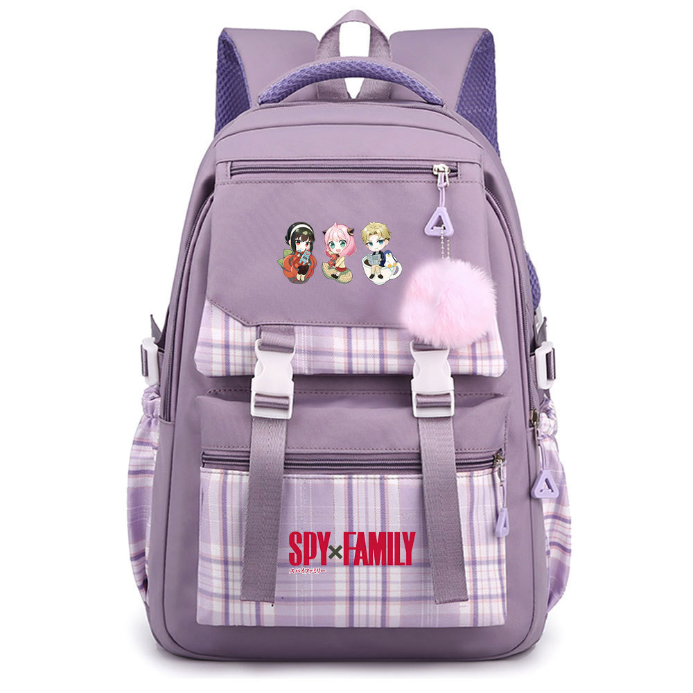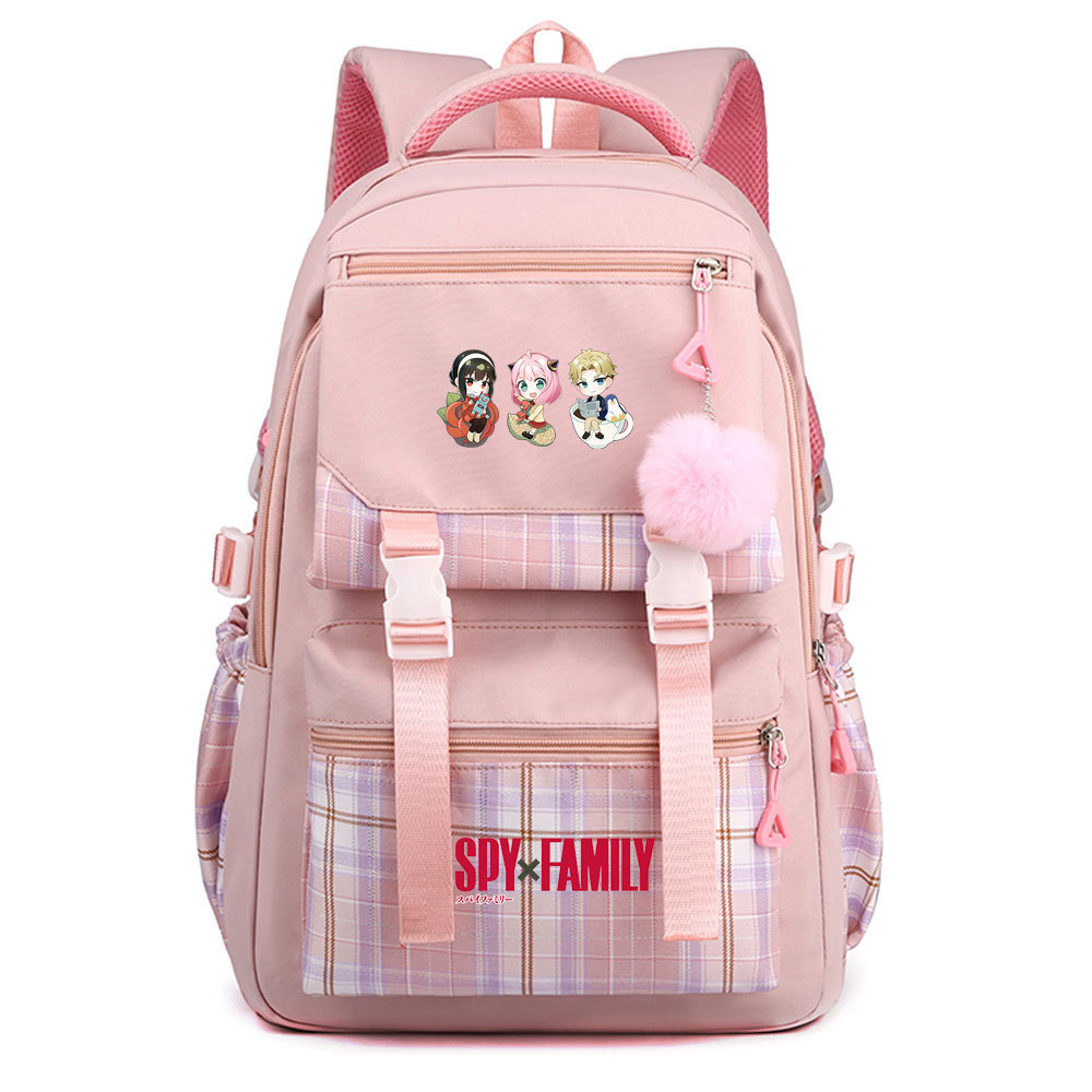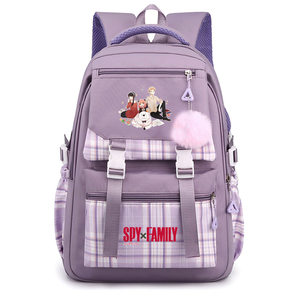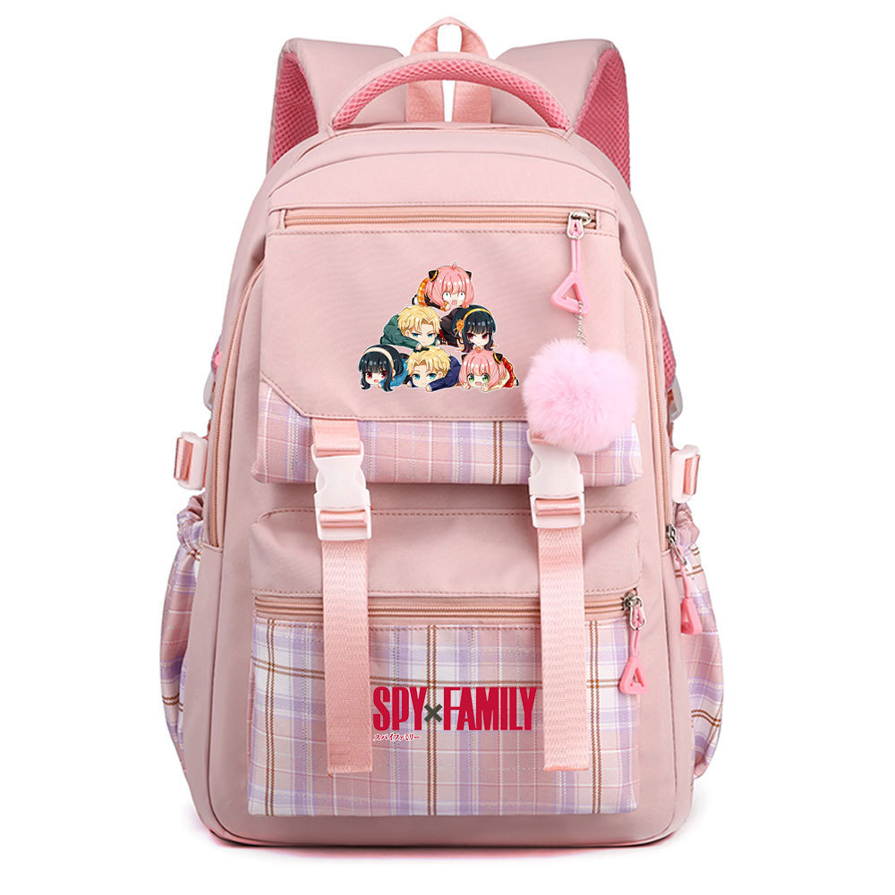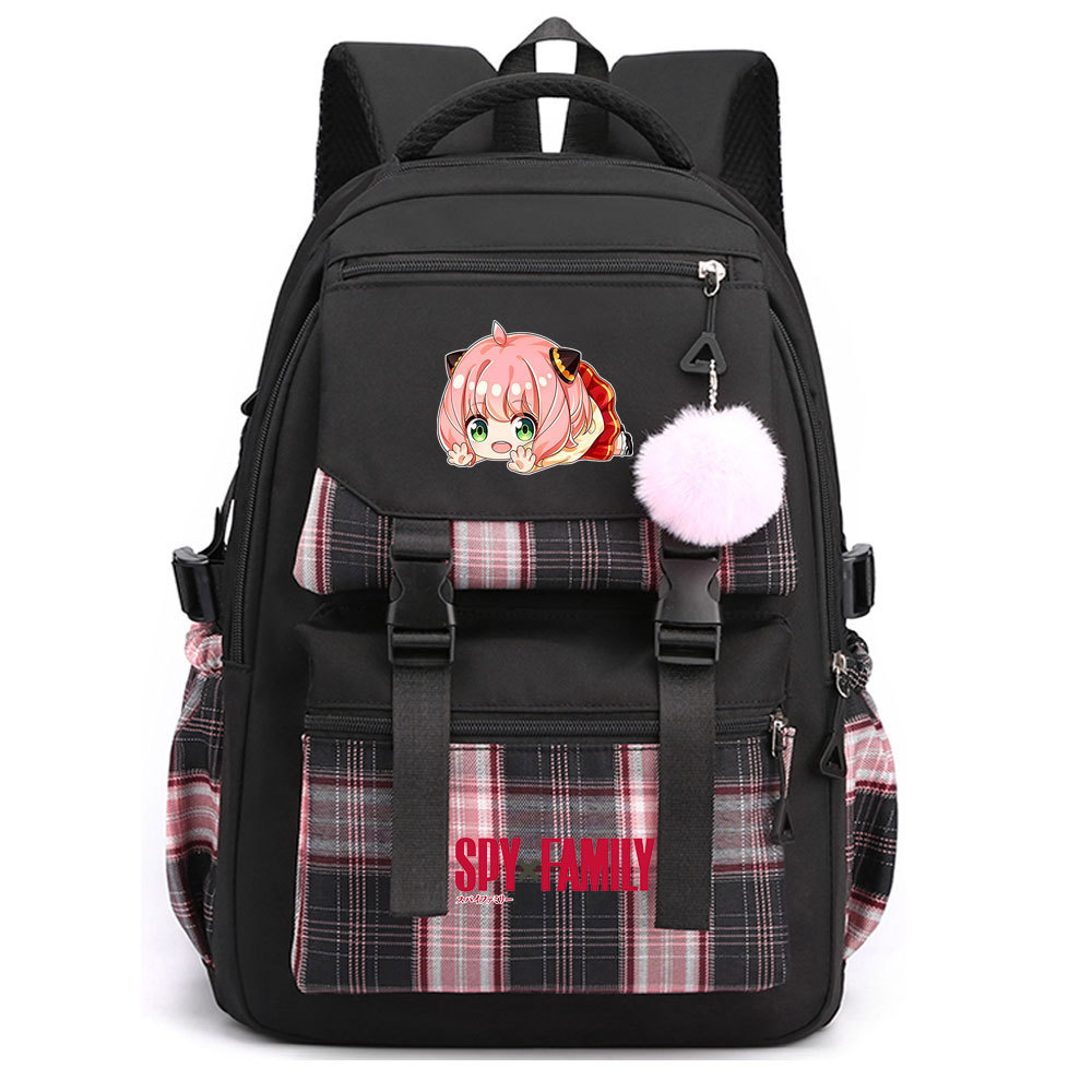 03 인쇄 일본 만화 만화 청소년 초등 및 중등 학교 가방 격자 무늬 모피 공 여성 캐주얼 경량 배낭스토어 가기