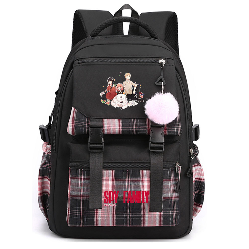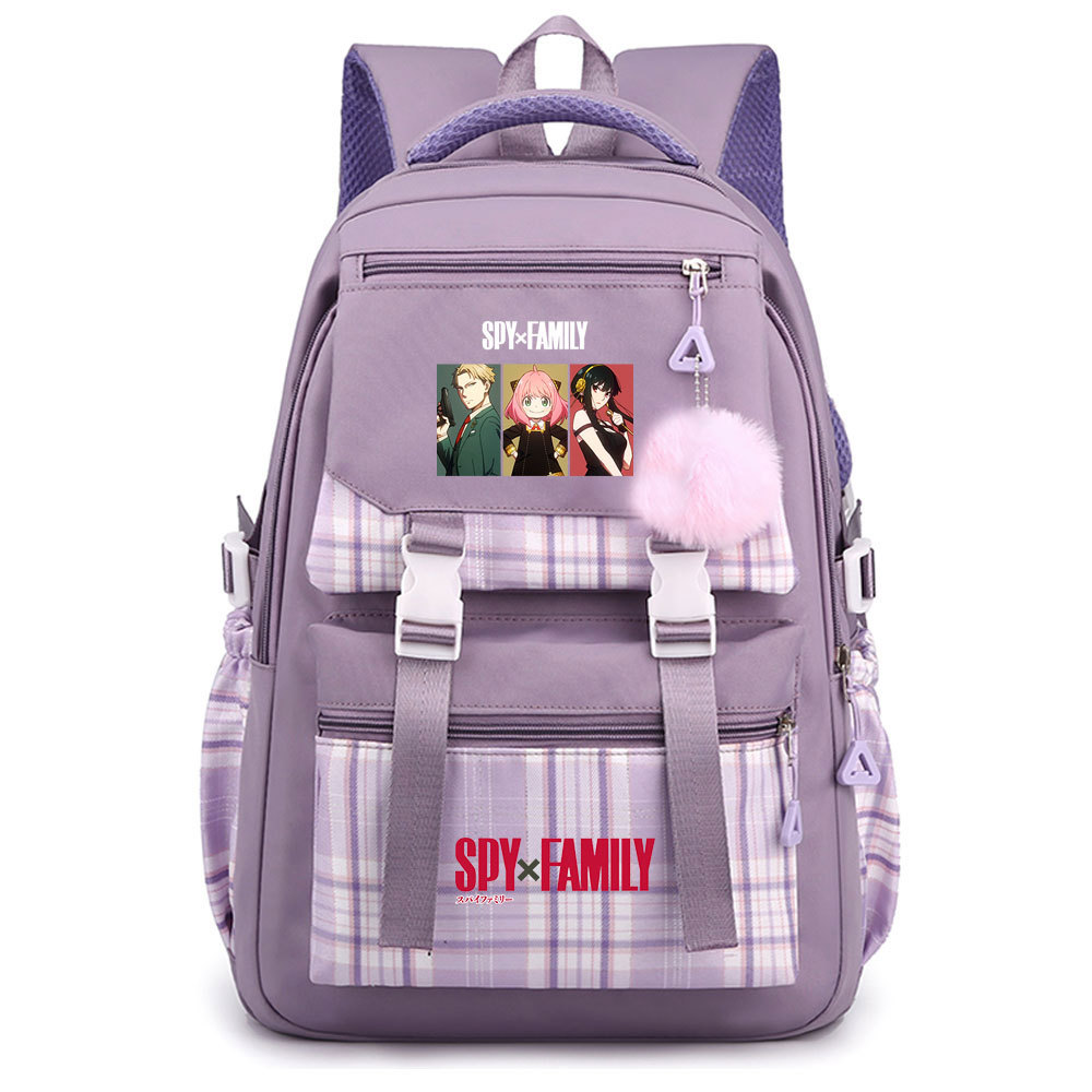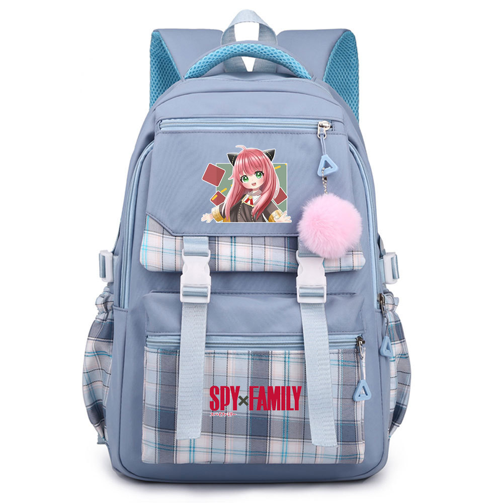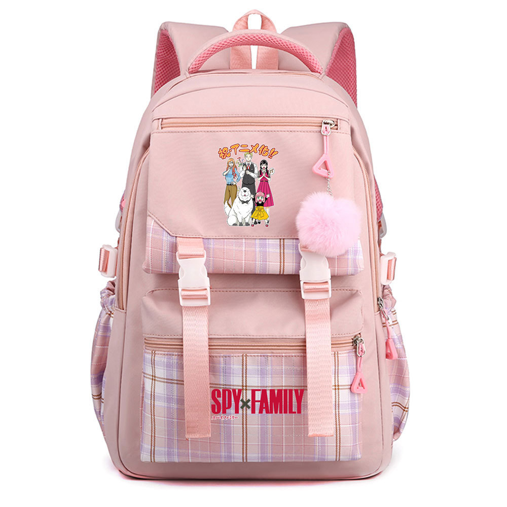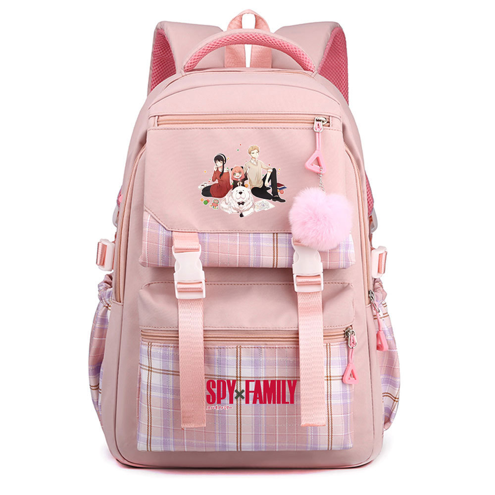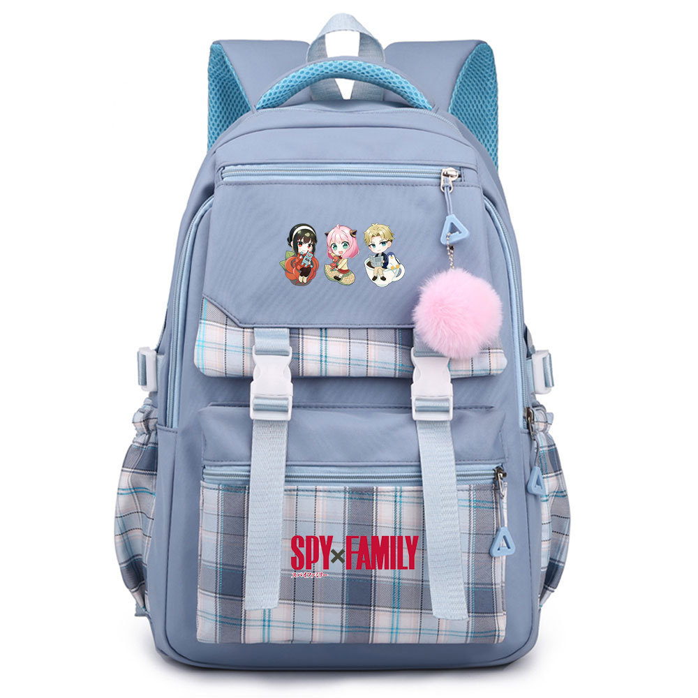 03 인쇄 일본 만화 만화 청소년 초등 및 중등 학교 가방 격자 무늬 모피 공 여성 캐주얼 경량 배낭스토어 가기